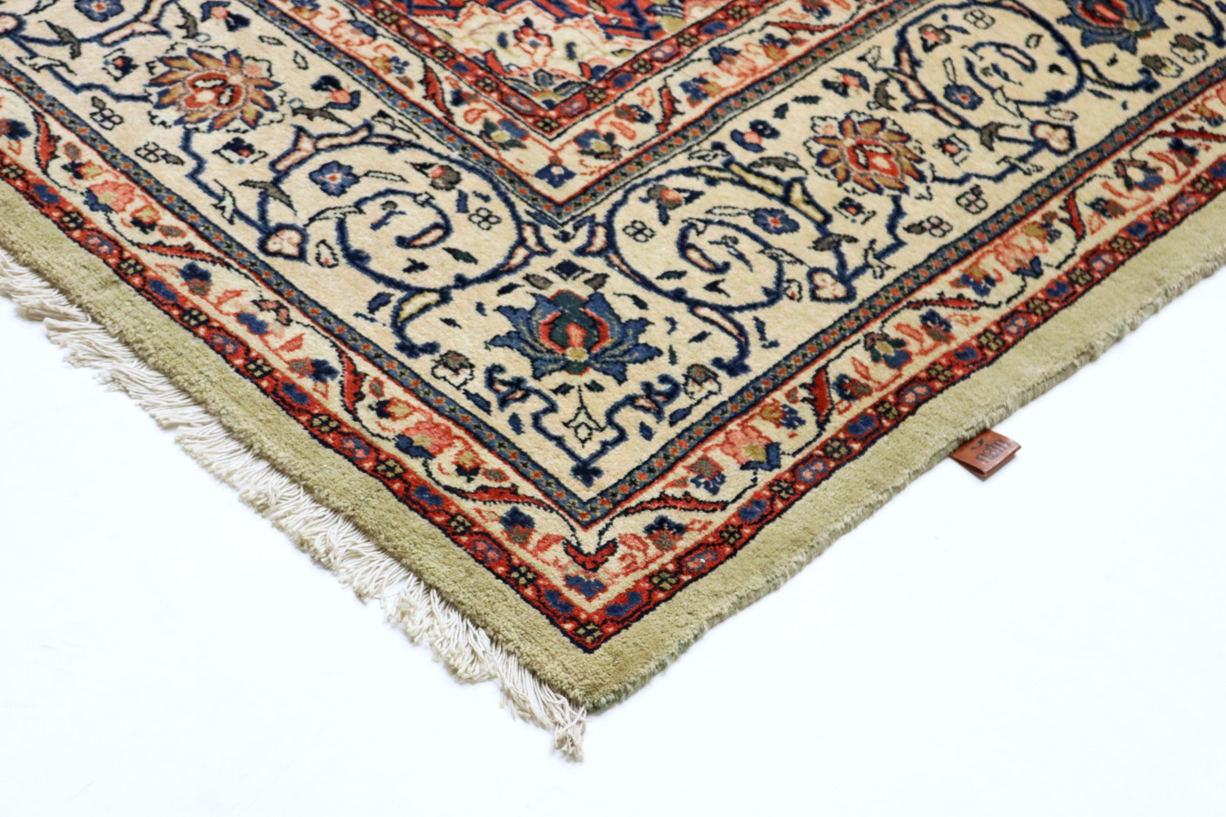 Este tapete persa foi feito à mão em Arak. A região é sinônimo de tapetes pesados, de altíssima qualidade e robustez. Os tapetes Sarough também são extremamente populares graças às suas cores fortes e belos ornamentos. Este tapete é garantido como uma obra de arte atemporal.