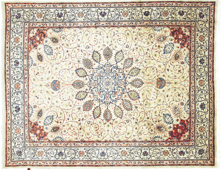 Nº do Tapete: 56186008485215 Tamanho: 401x305 cm Espessura: aproximadamente 12 mm Nós: 200 000 - 250 000 / m² Processamento: Atado à mão Veludo: Lã tecida à mão Urdidura: Algodão Origem: Pérsia / Iran Idade: Novo Peso: aproximadamente 43 kg Também conhecido como Arak , Sarough, Sarouk, Saruk, Saroq, Sultanabad Em armazém: Único - Apenas 1 em stock