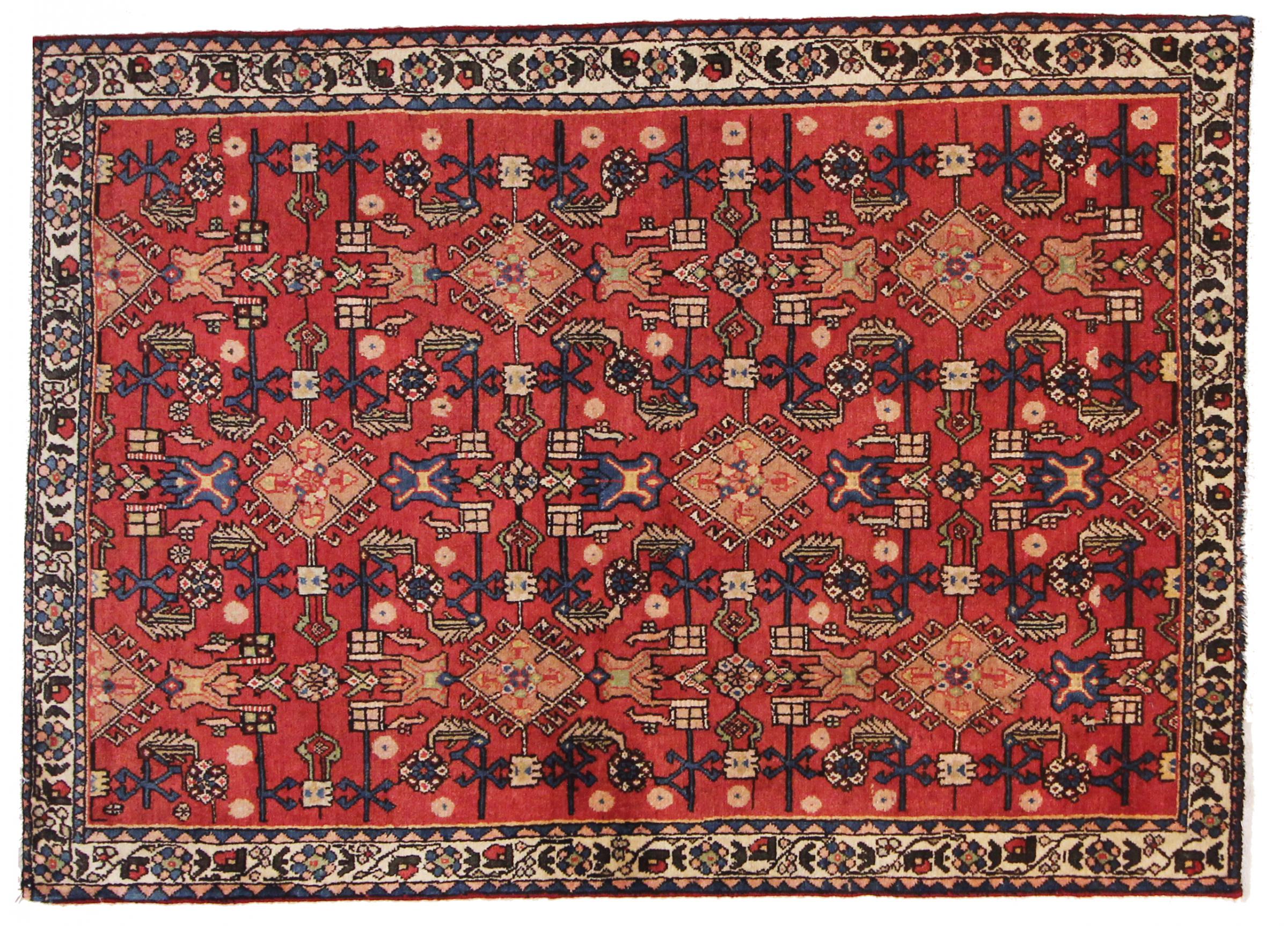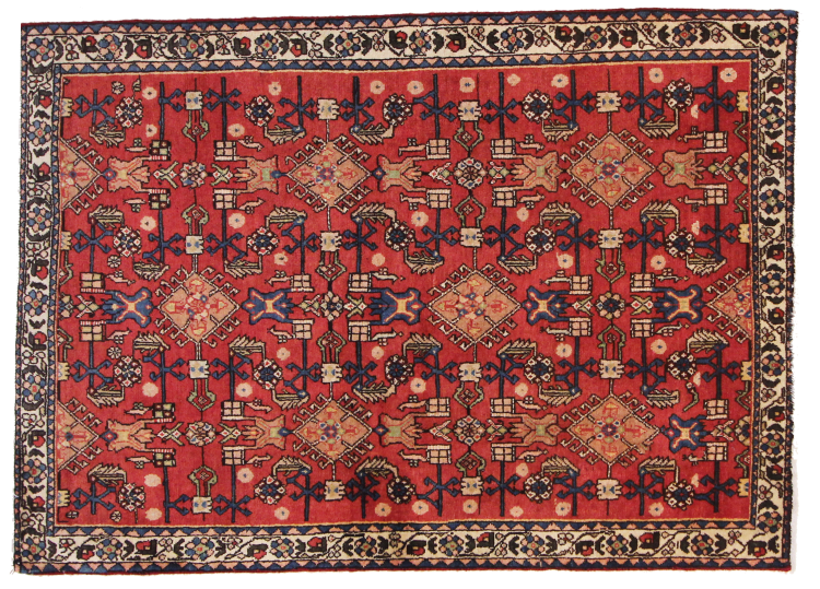 Este tapete pertence a tapetes de aldeia e nómadas do Irão, antiga Pérsia. Este tipo de tapete é atado à mão em cidades mais pequenas e aldeias da velha tradição. Mesmo os nómadas ainda atam tapetes persas ao ar livre. Os tapetes são atados sem padrão e completamente a partir da cabeça. Caracterizam-se por ornamentos clássicos, dispostos em padrões rectos e geométricos. Graças à sua origem cultural-tradicional, estes tapetes têm um carácter único que encarna a antiga Pérsia.