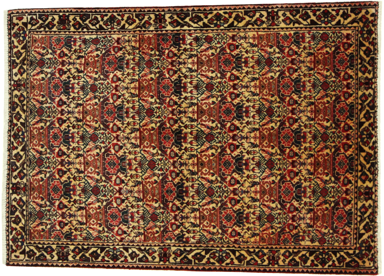 Este tapete pertence a tapetes de aldeia e nómadas do Irão, antiga Pérsia. Este tipo de tapete é atado à mão em cidades mais pequenas e aldeias da velha tradição. Mesmo os nómadas ainda atam tapetes persas ao ar livre. Os tapetes são atados sem padrão e completamente a partir da cabeça. Caracterizam-se por ornamentos clássicos, dispostos em padrões rectos e geométricos. Graças à sua origem cultural-tradicional, estes tapetes têm um carácter único que encarna a antiga Pérsia.