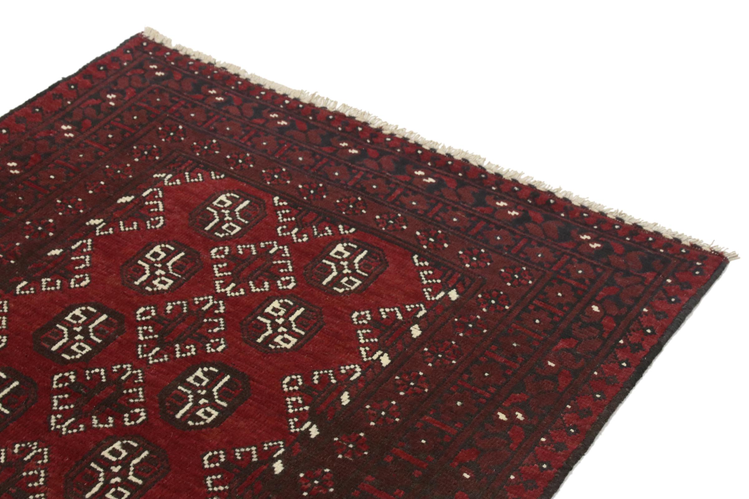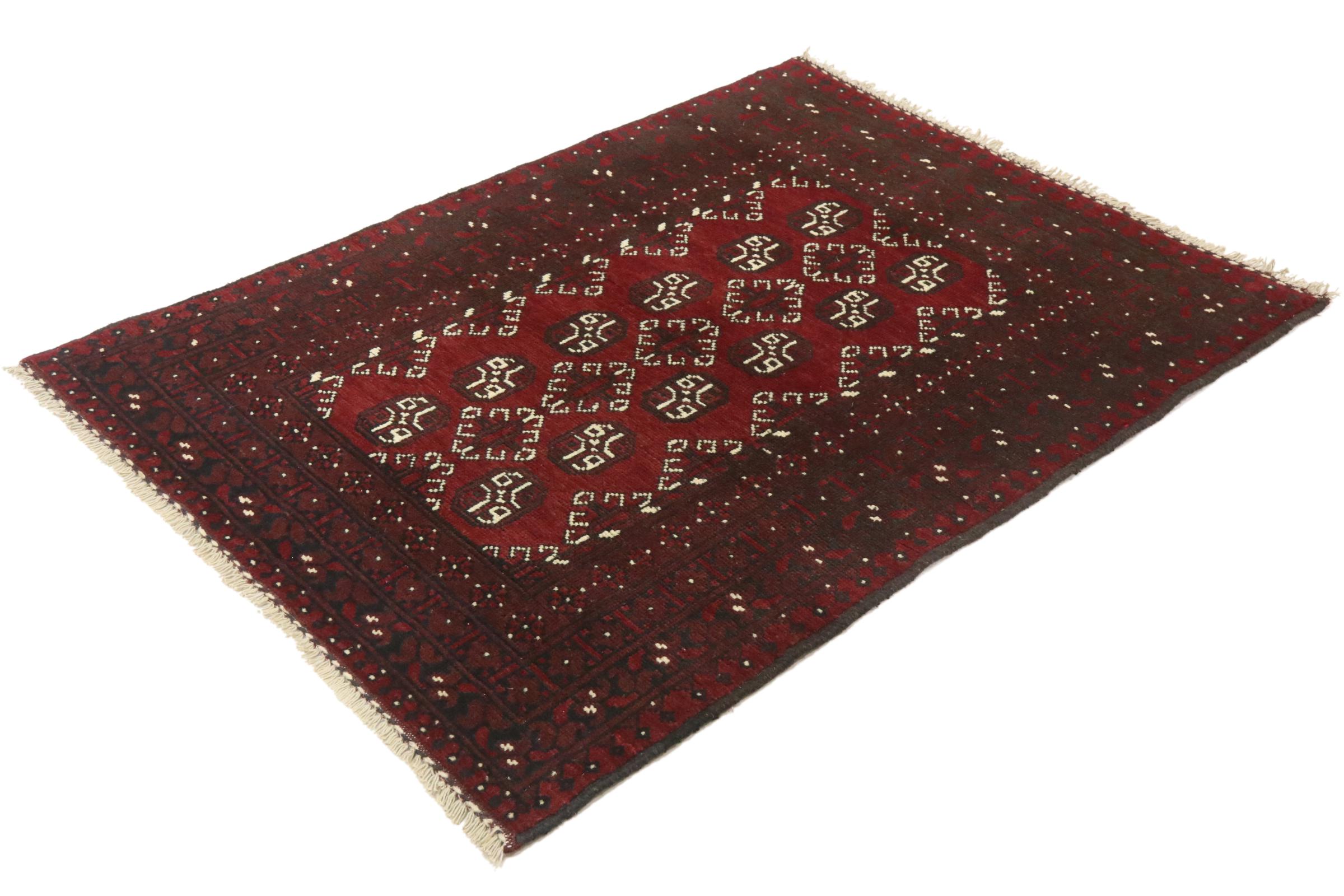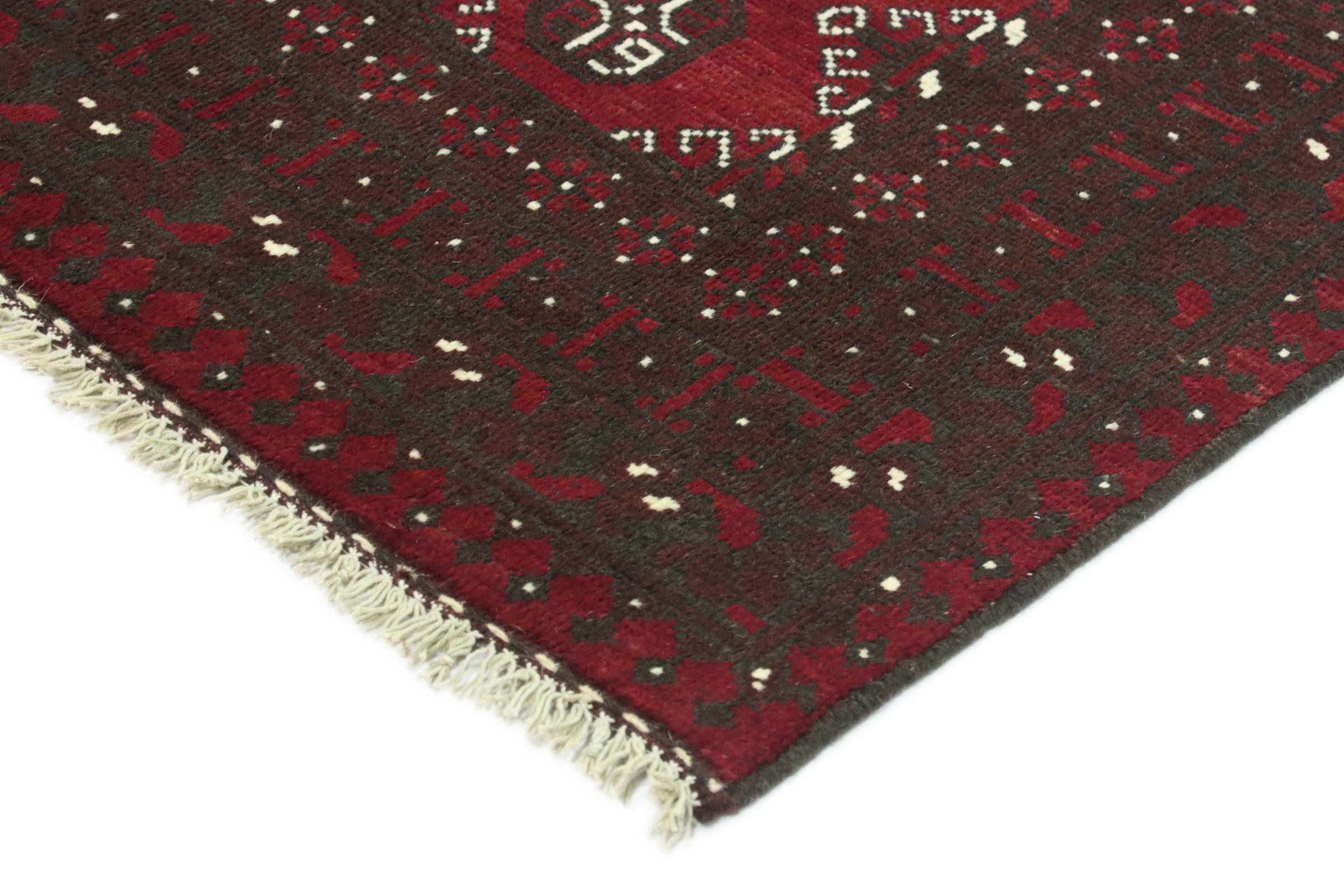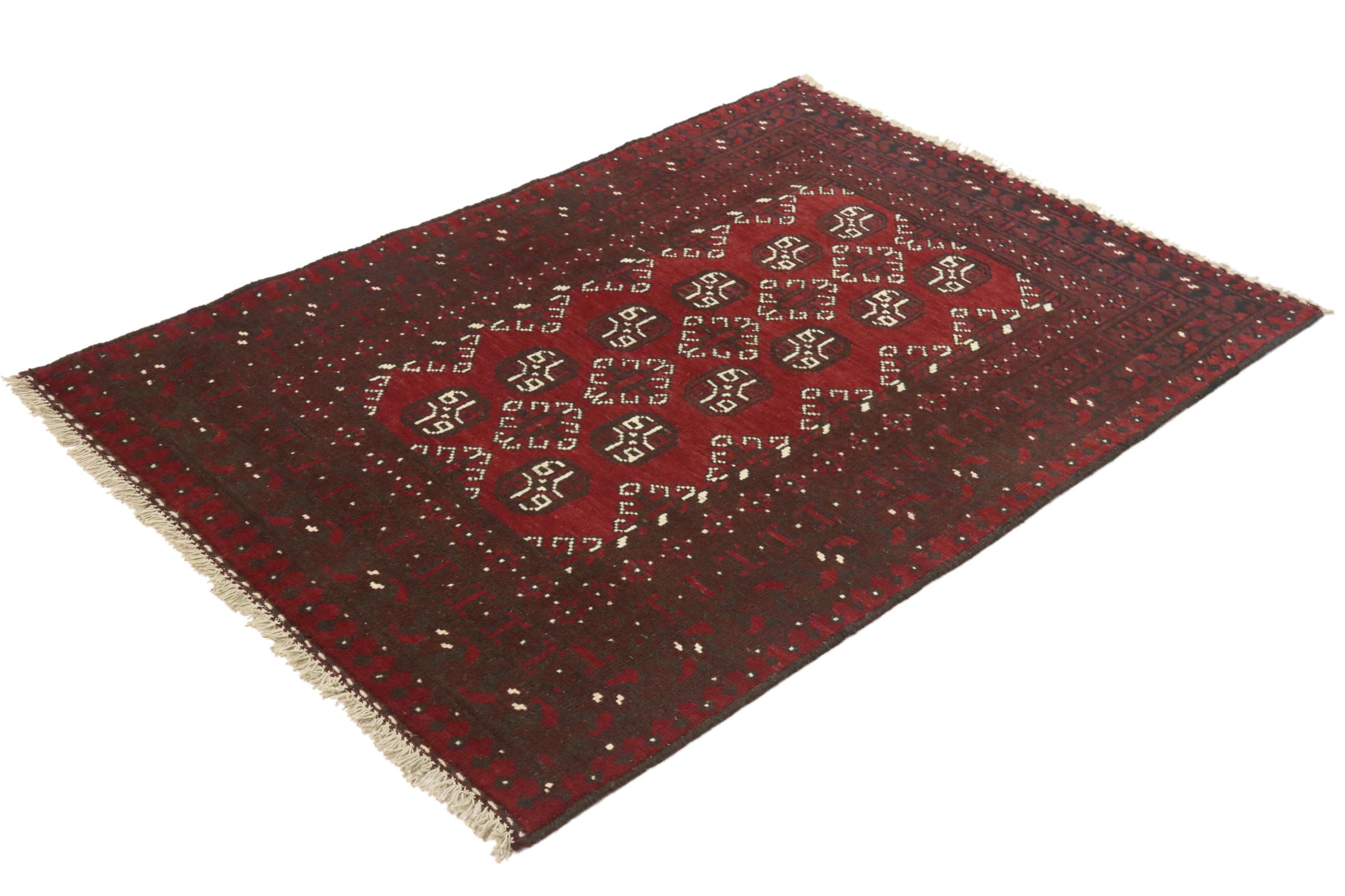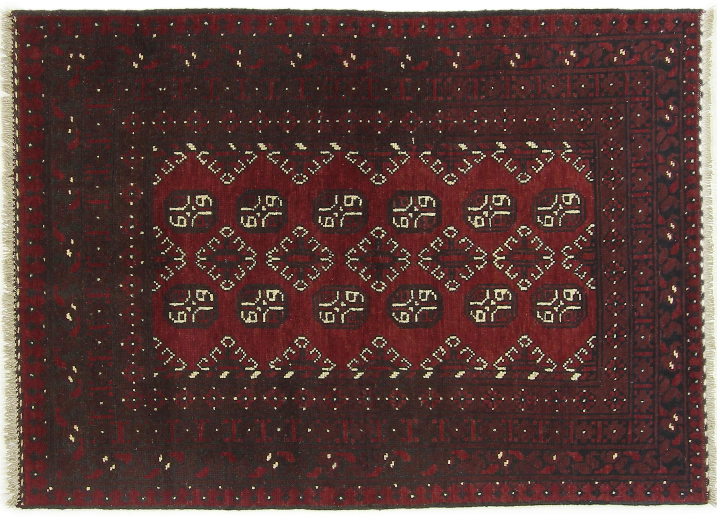 Este tapete afegão Akhche está diante de si como um sonho vermelho. Fica melhor em divisões simples. A sua qualidade convencerá qualquer amante de tapetes orientais. Atado à mão do Afeganistão.