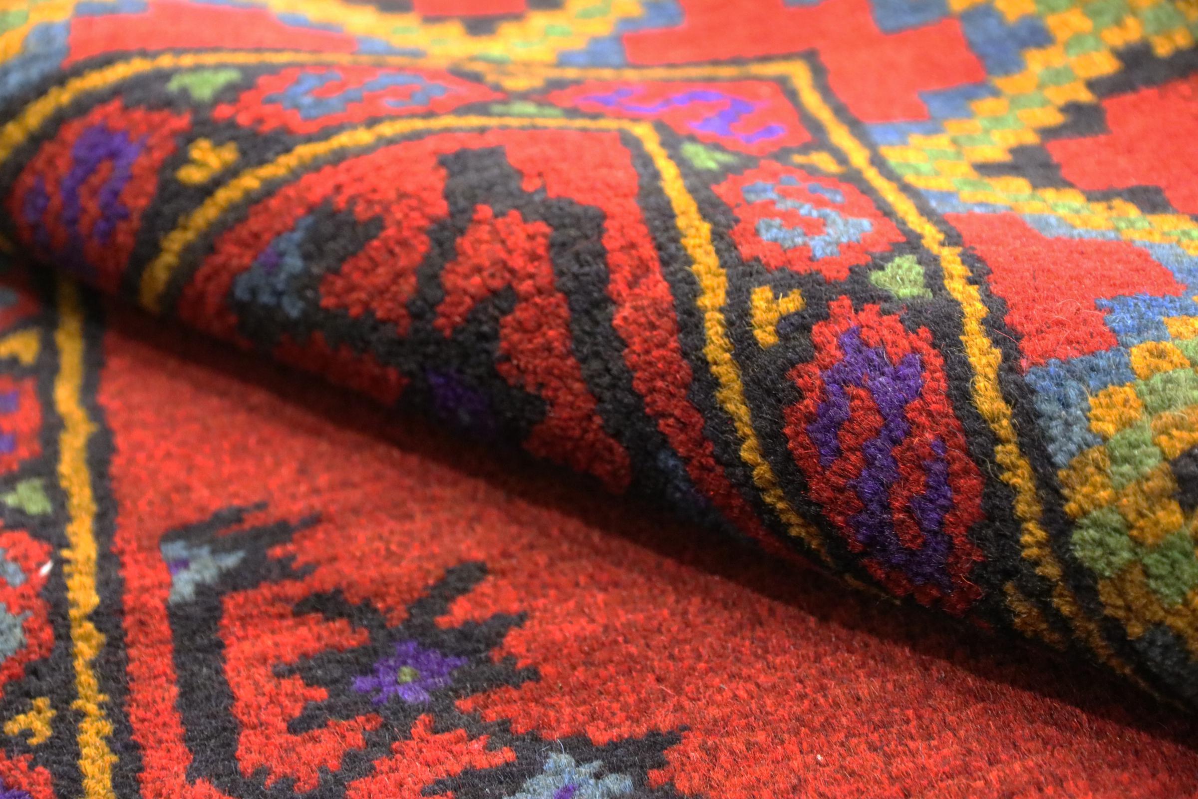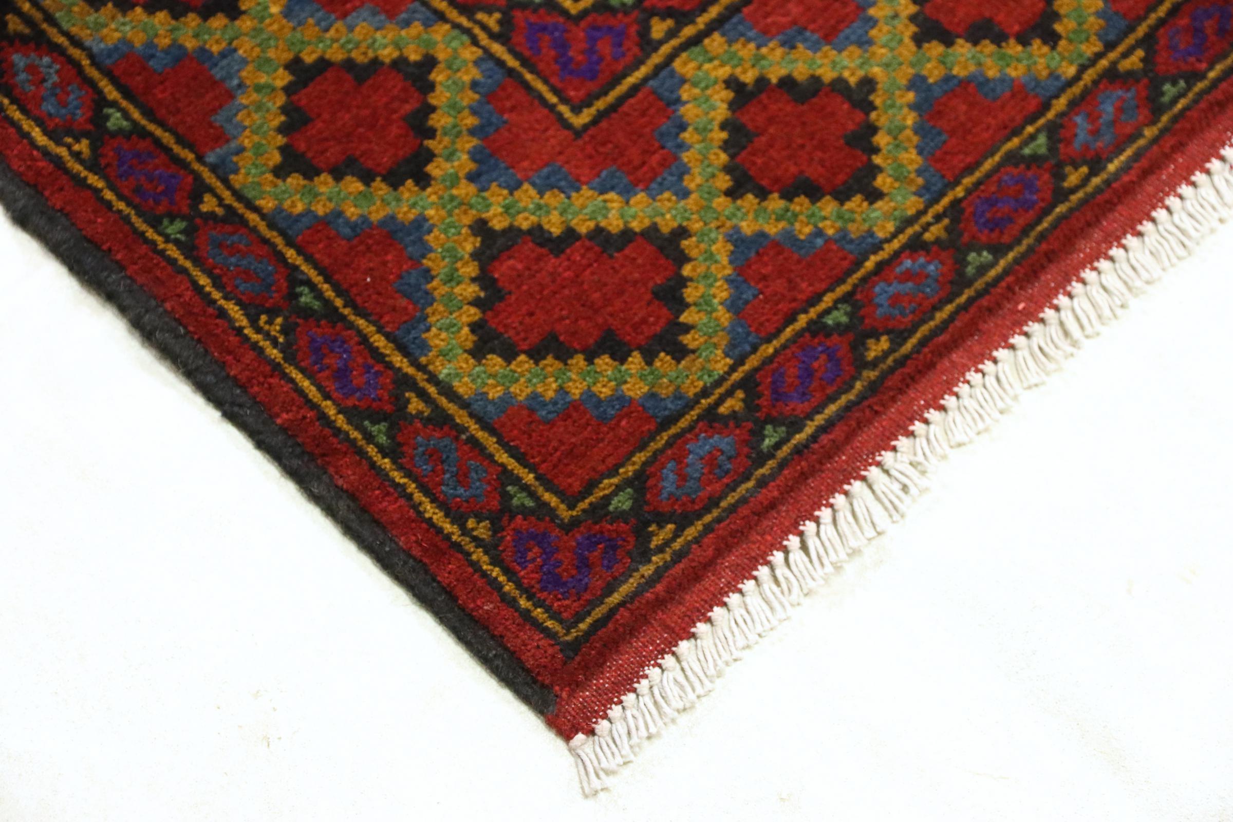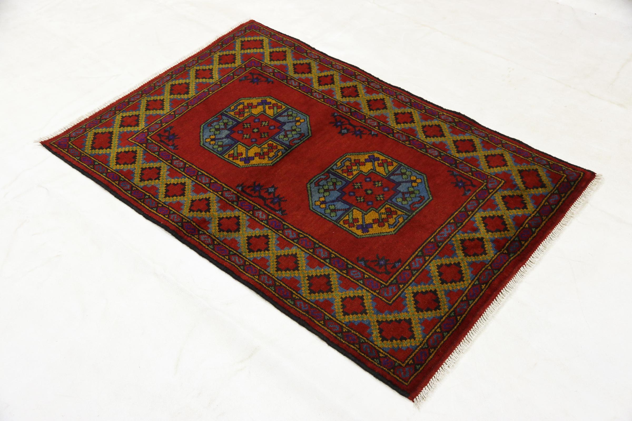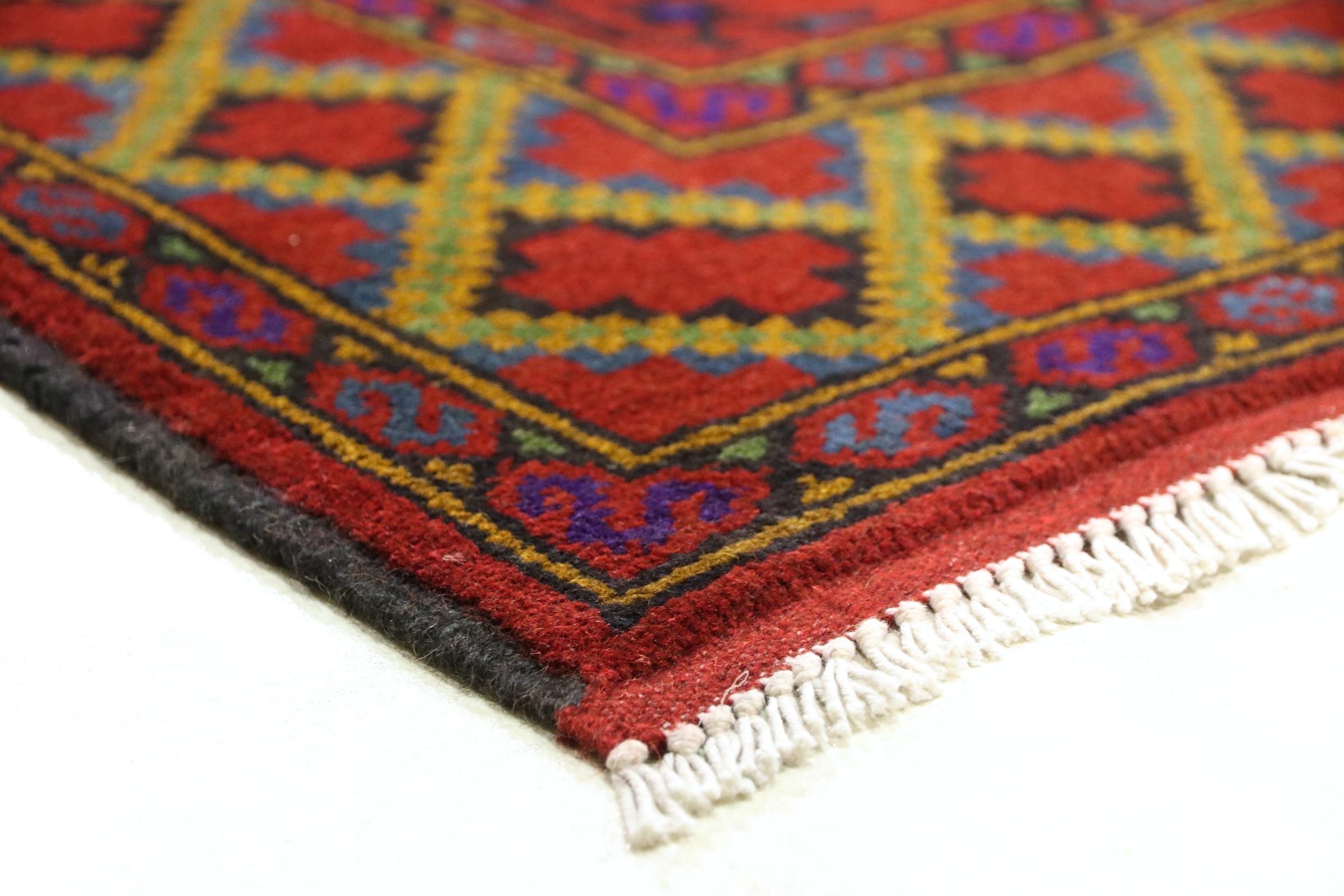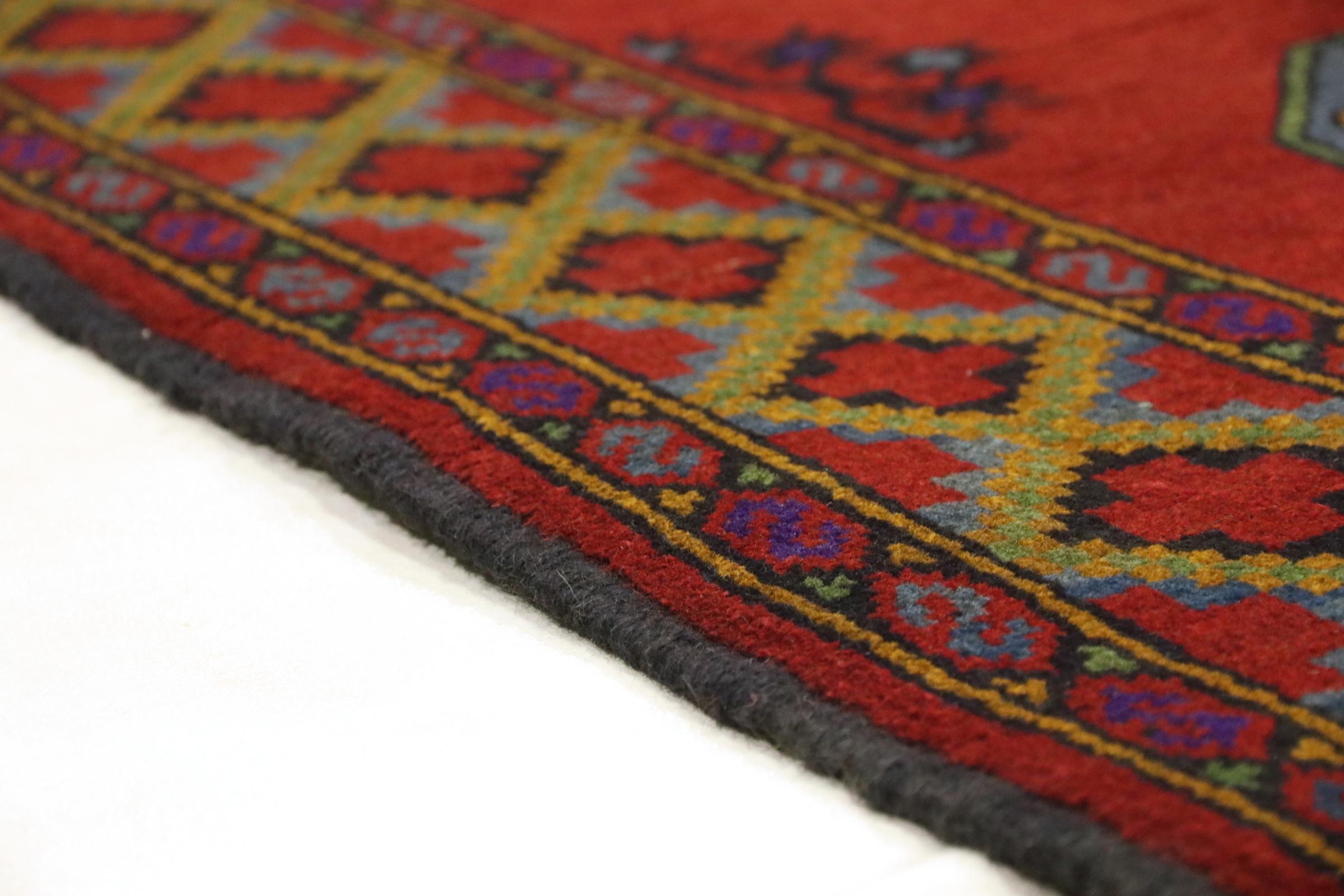 Este tapete afegão Akhche está diante de si como um sonho vermelho. Fica melhor em divisões simples. A sua qualidade convencerá qualquer amante de tapetes orientais. Atado à mão do Afeganistão.