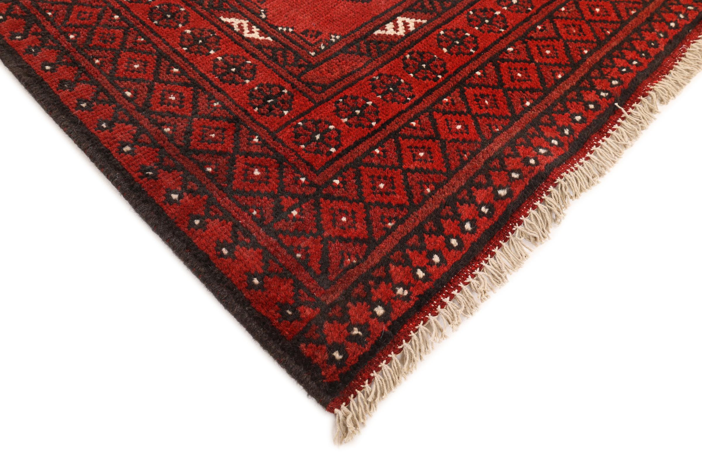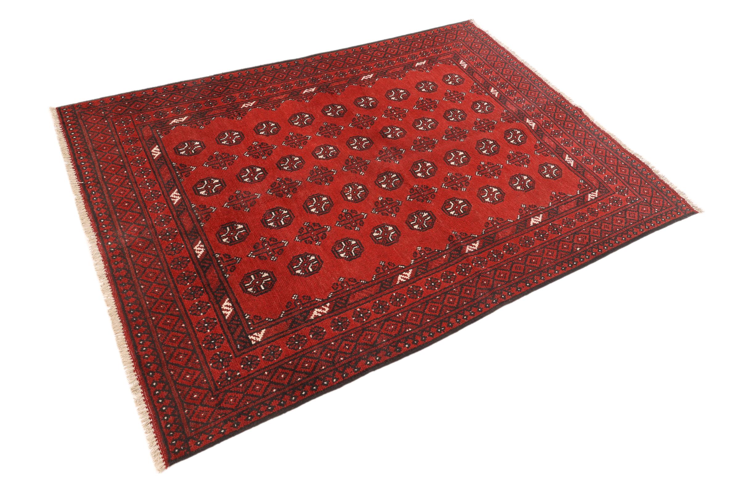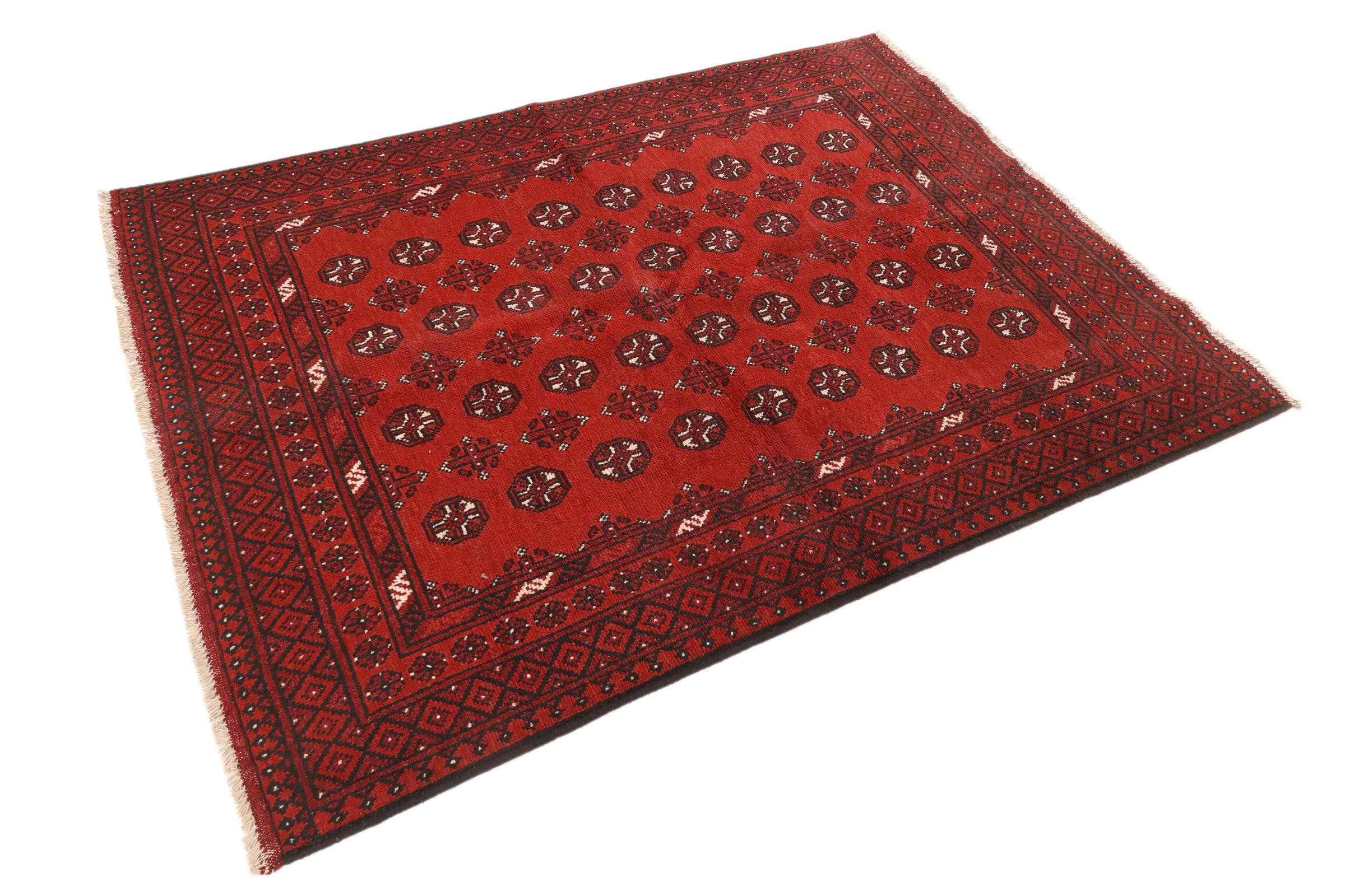 Este tapete afegão Akhche está diante de si como um sonho vermelho. Fica melhor em divisões simples. A sua qualidade convencerá qualquer amante de tapetes orientais. Atado à mão do Afeganistão.