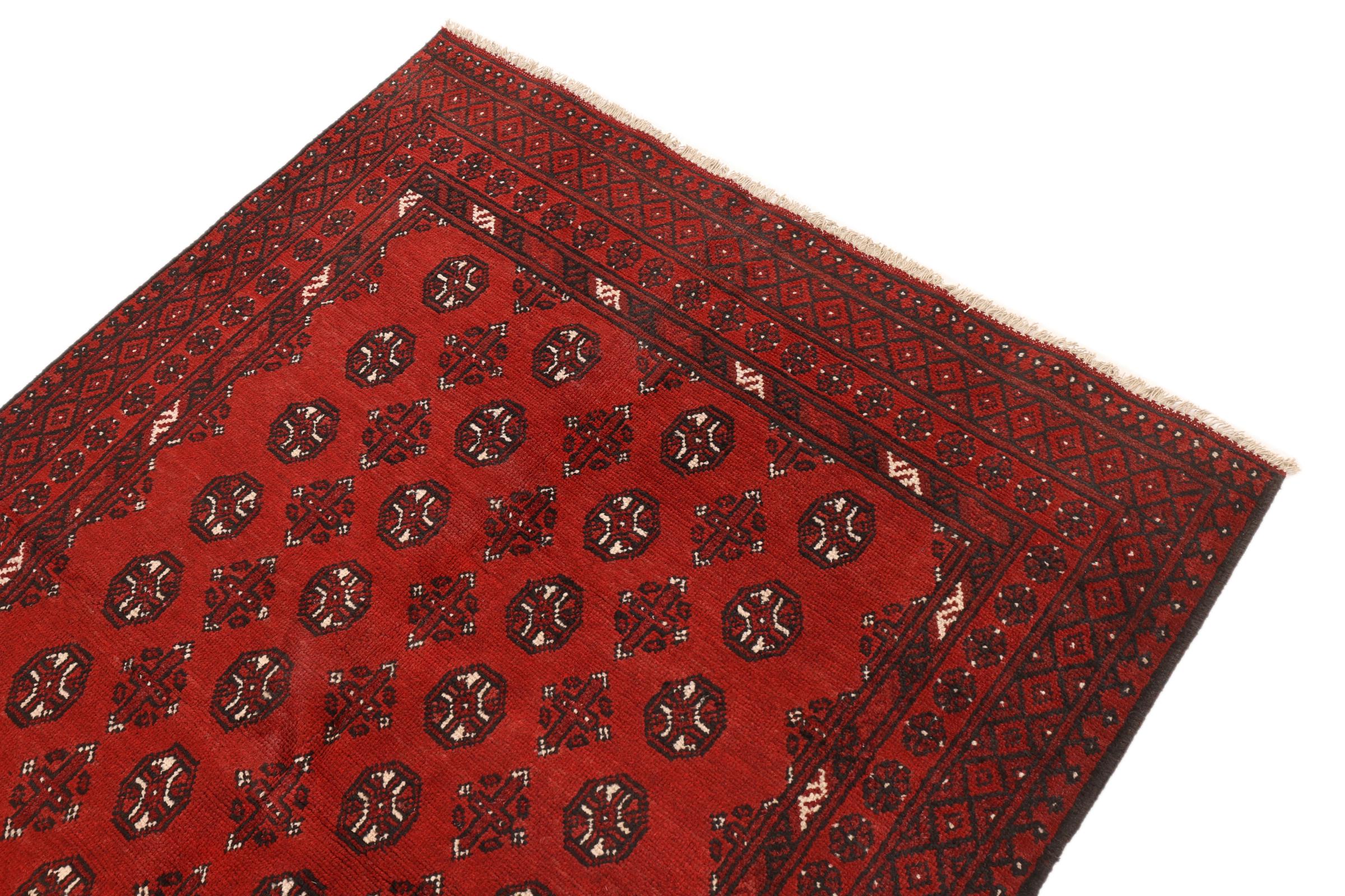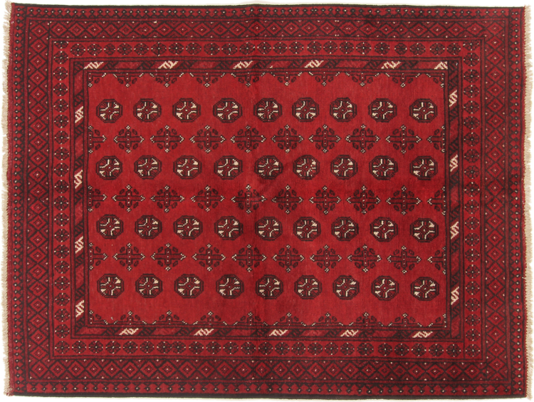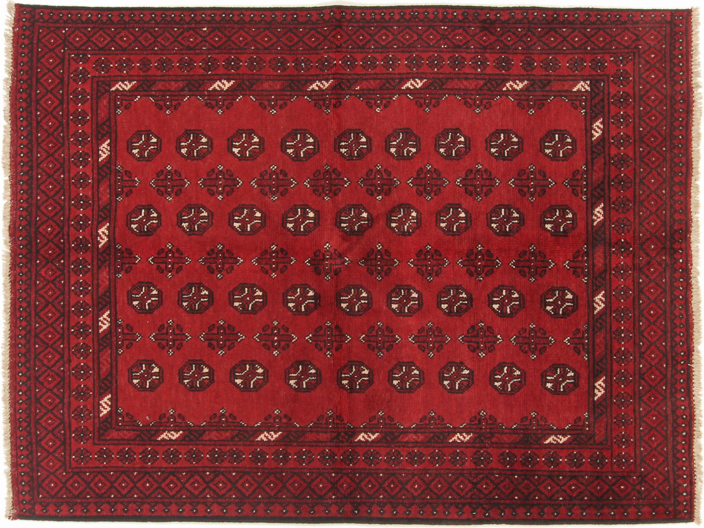 Este tapete afegão Akhche está diante de si como um sonho vermelho. Fica melhor em divisões simples. A sua qualidade convencerá qualquer amante de tapetes orientais. Atado à mão do Afeganistão.