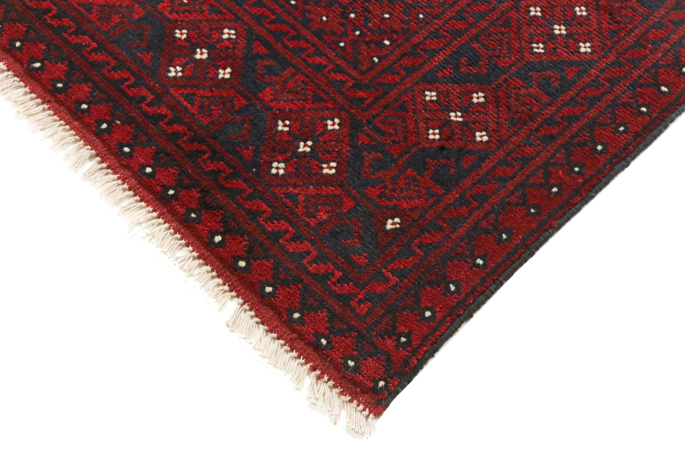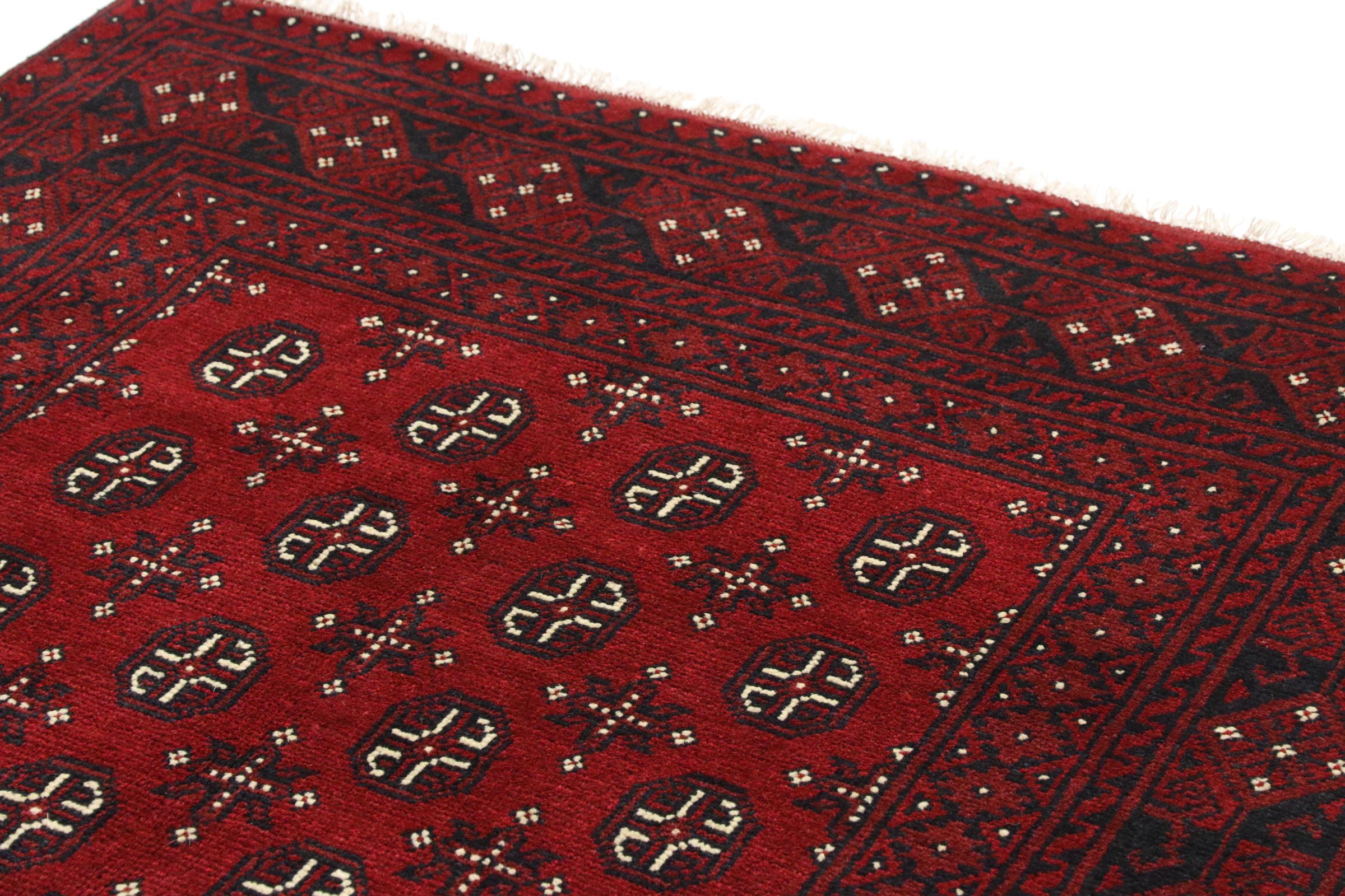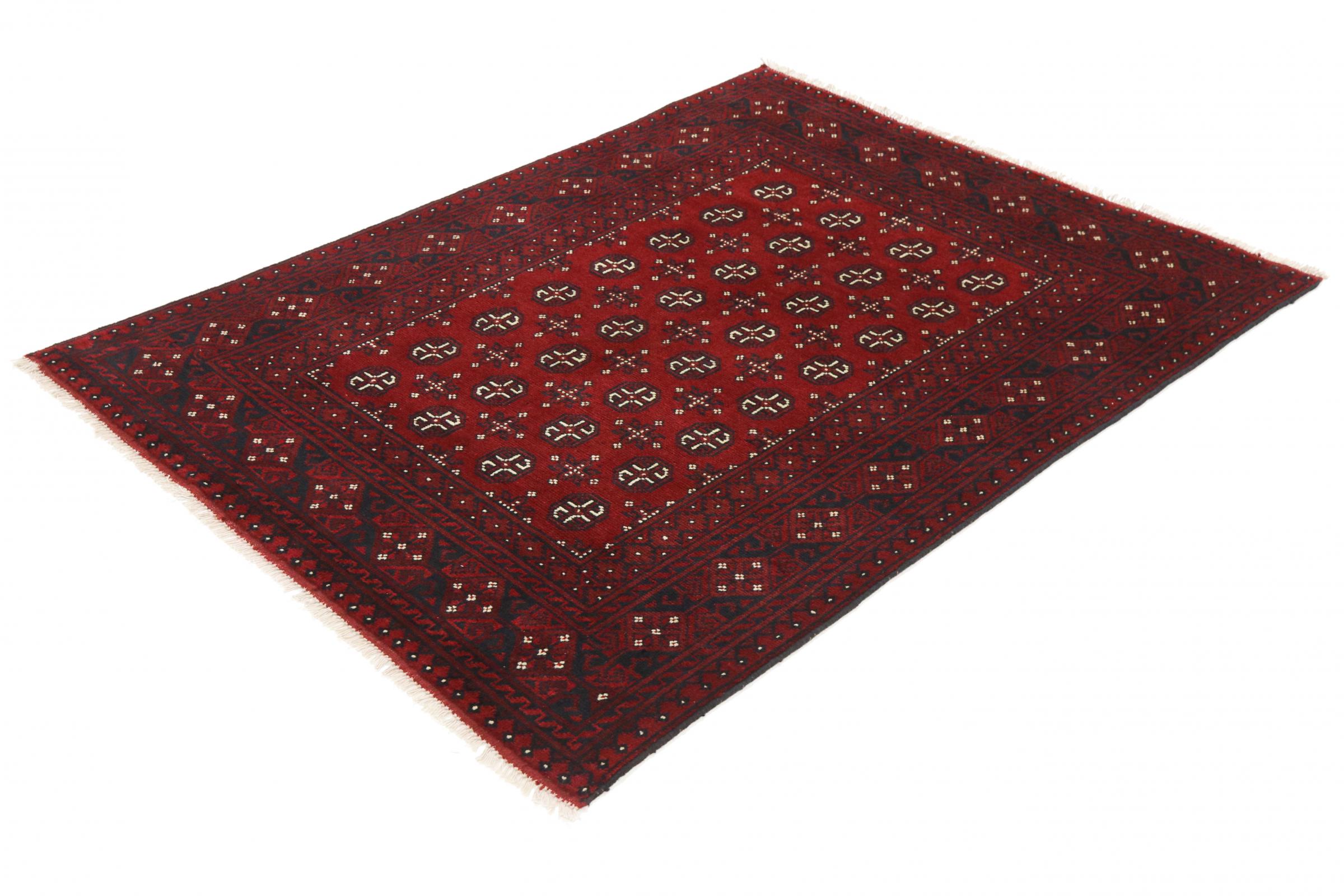 Este tapete afegão Akhche está diante de si como um sonho vermelho. Fica melhor em divisões simples. A sua qualidade convencerá qualquer amante de tapetes orientais. Atado à mão do Afeganistão.