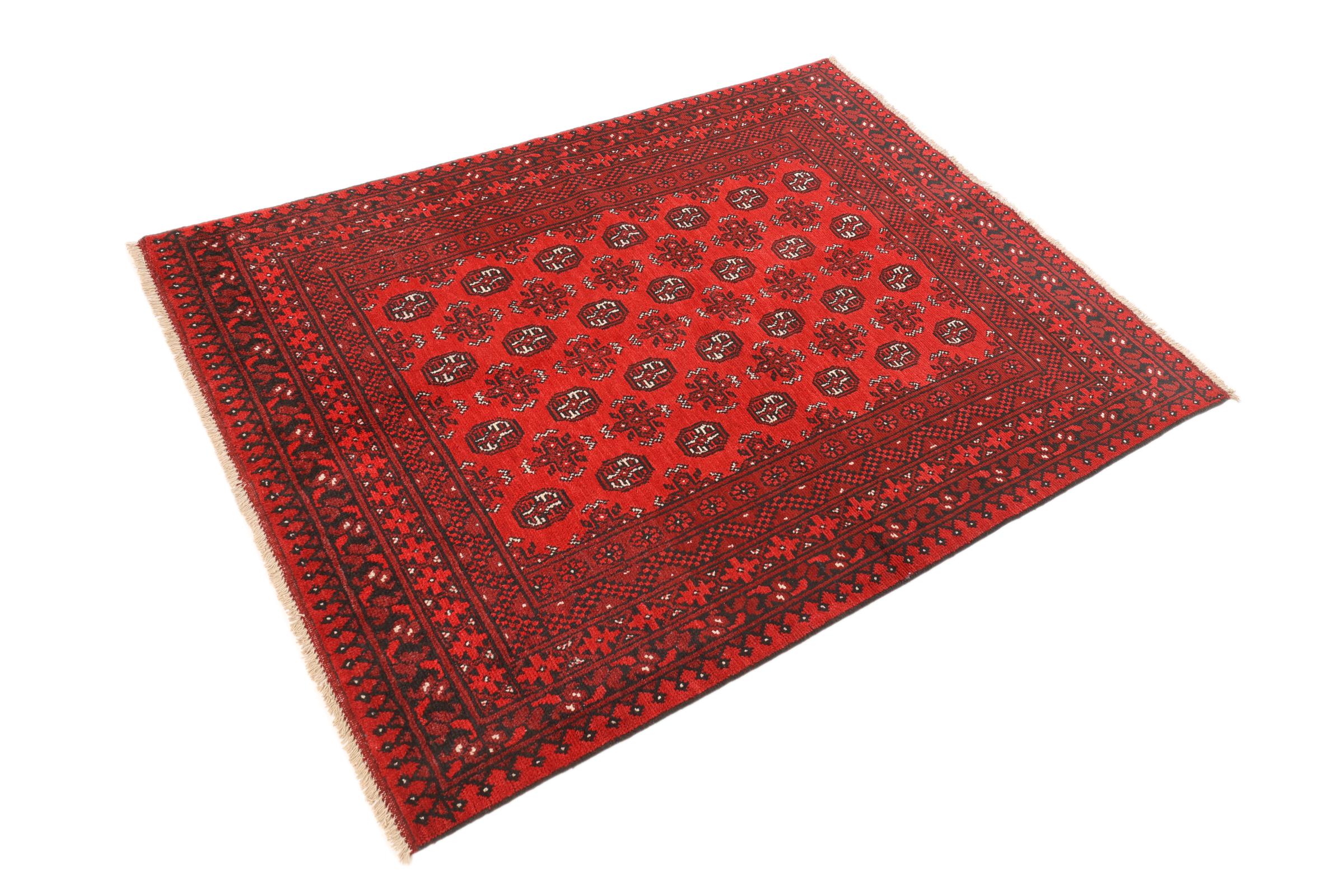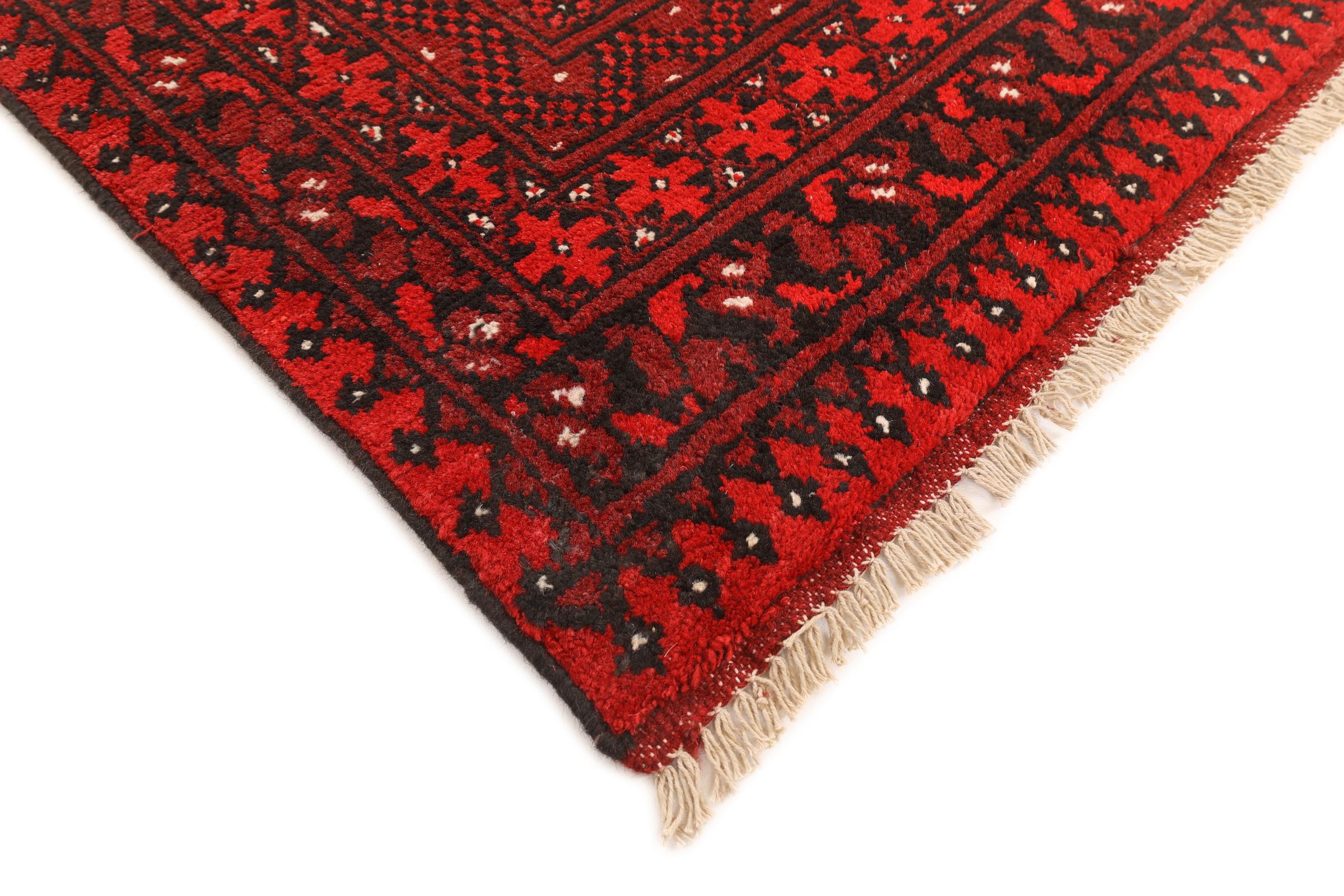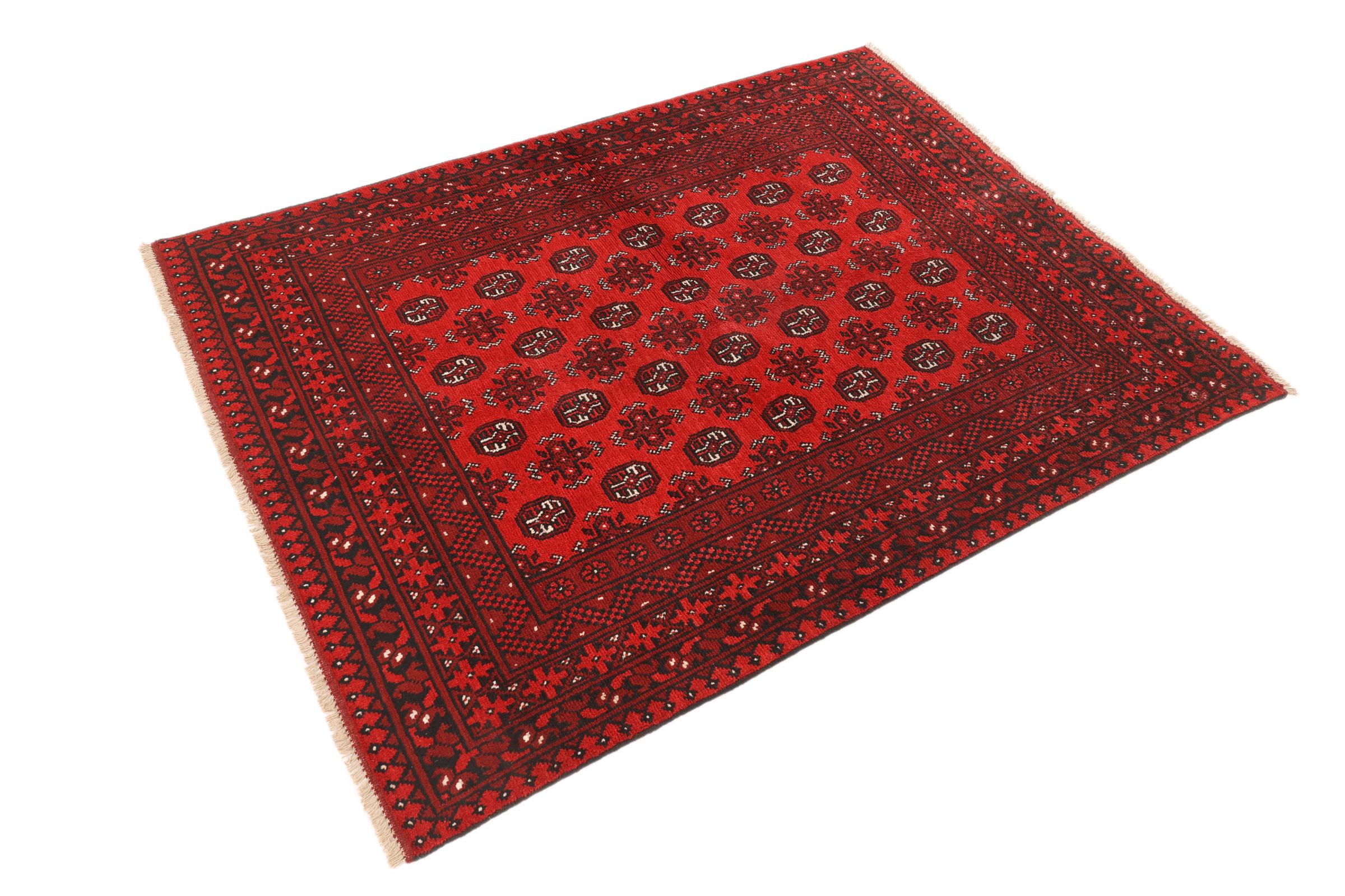 Este tapete afegão Akhche está diante de si como um sonho vermelho. Fica melhor em divisões simples. A sua qualidade convencerá qualquer amante de tapetes orientais. Atado à mão do Afeganistão.