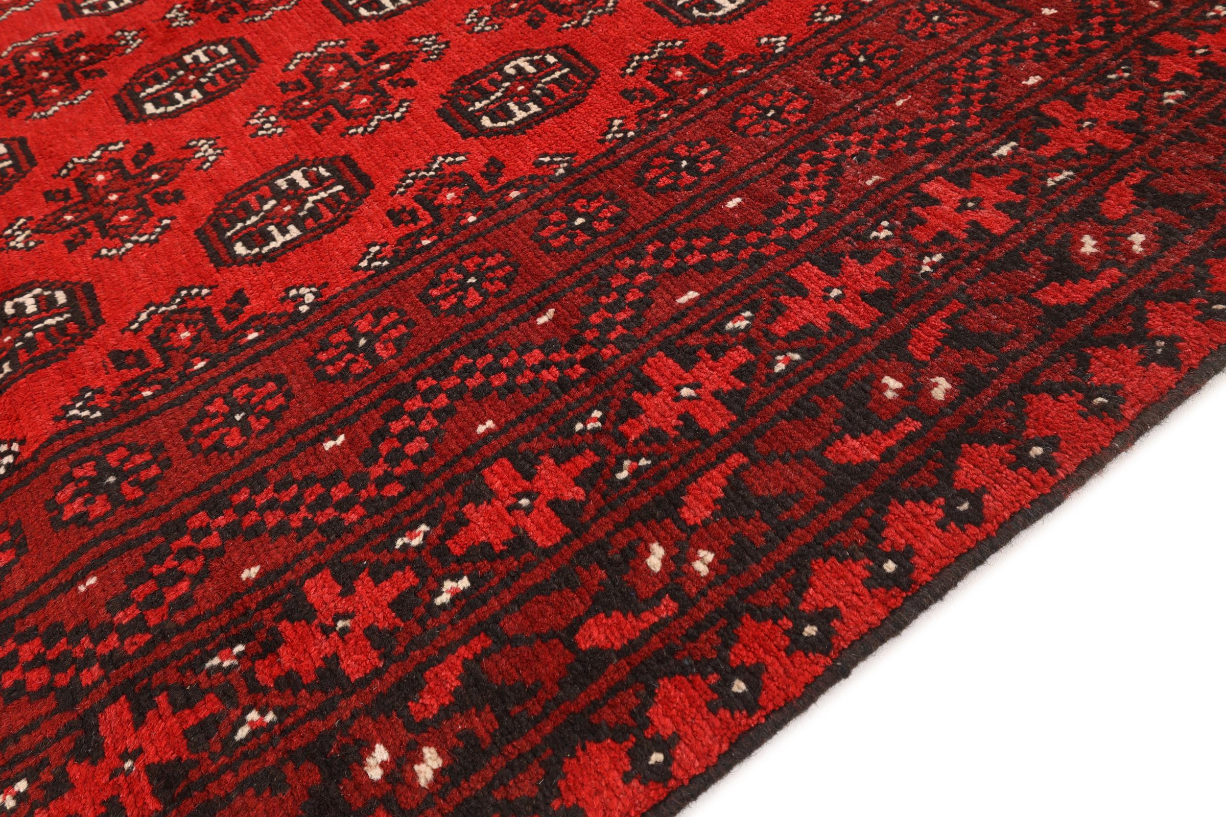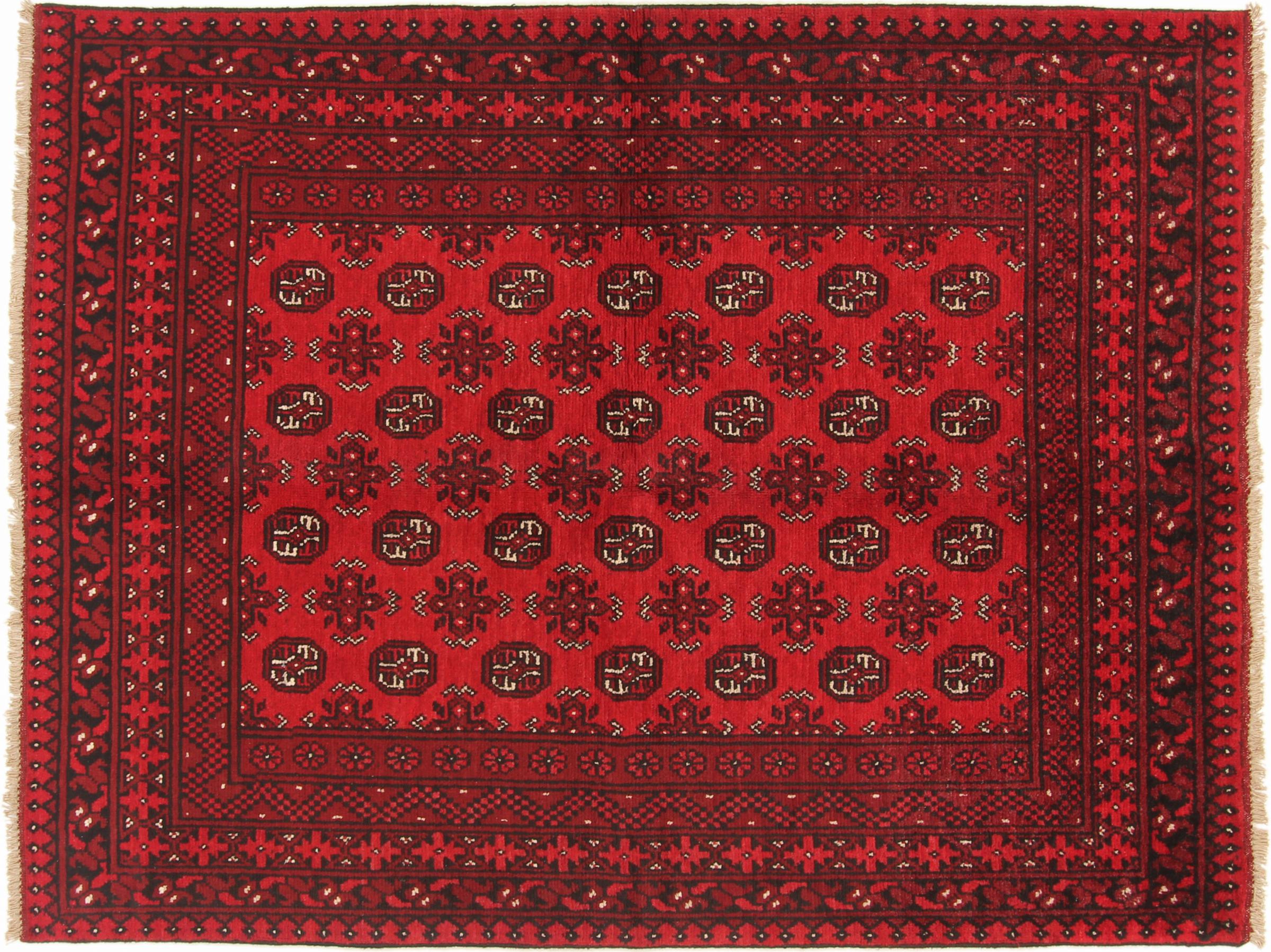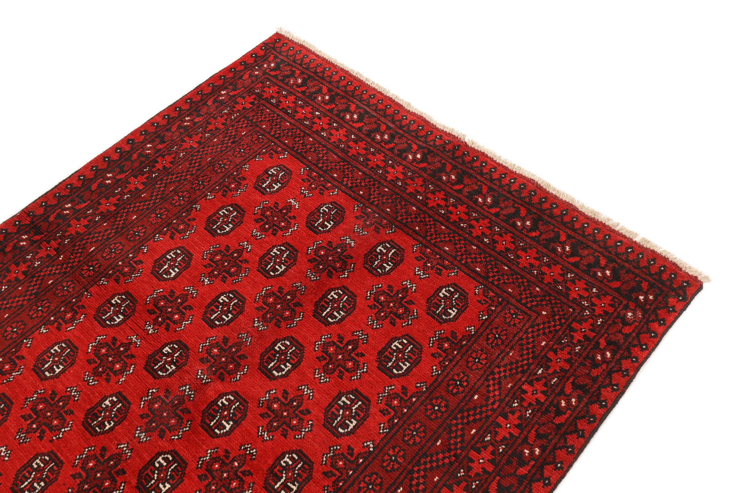 Este tapete afegão Akhche está diante de si como um sonho vermelho. Fica melhor em divisões simples. A sua qualidade convencerá qualquer amante de tapetes orientais. Atado à mão do Afeganistão.