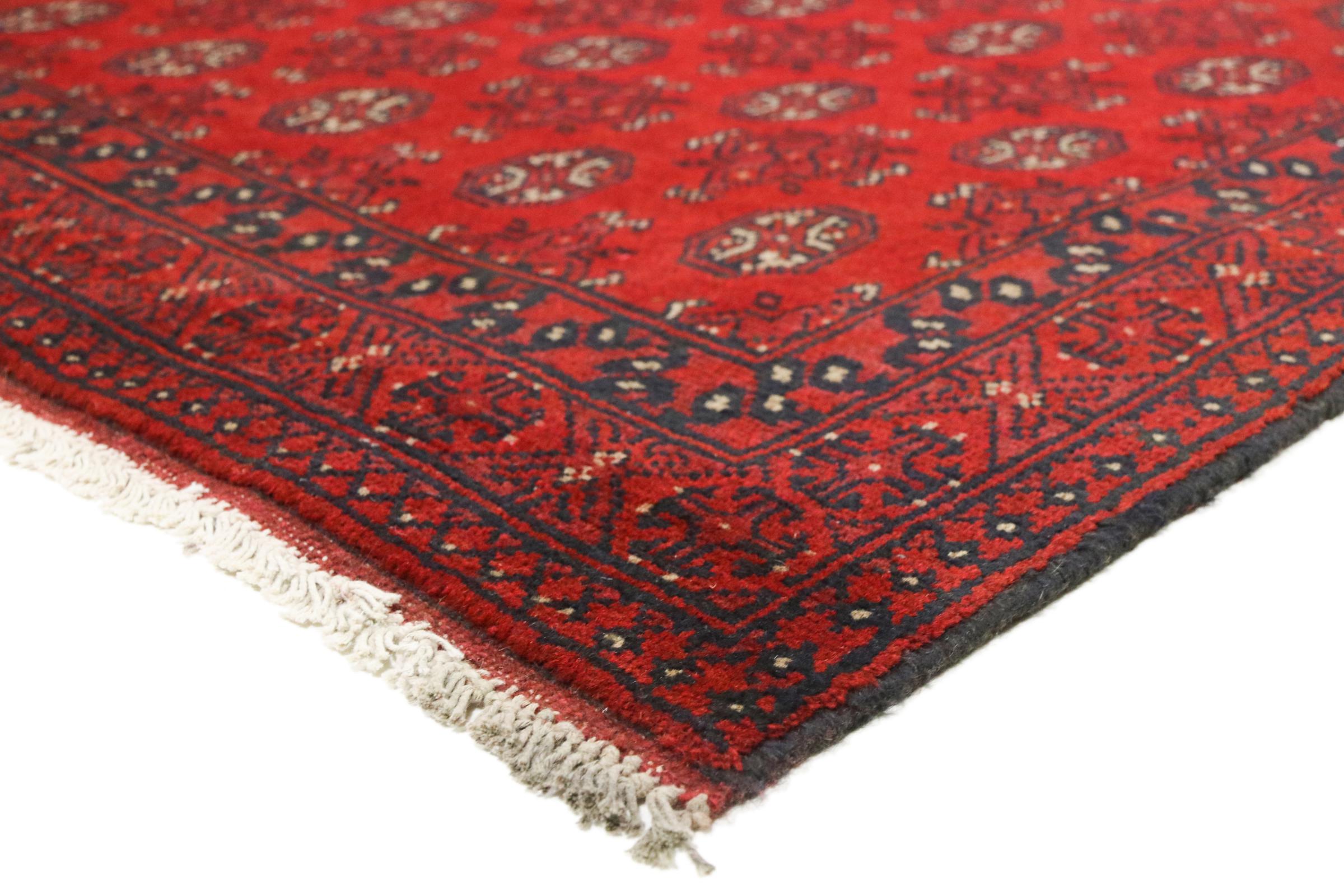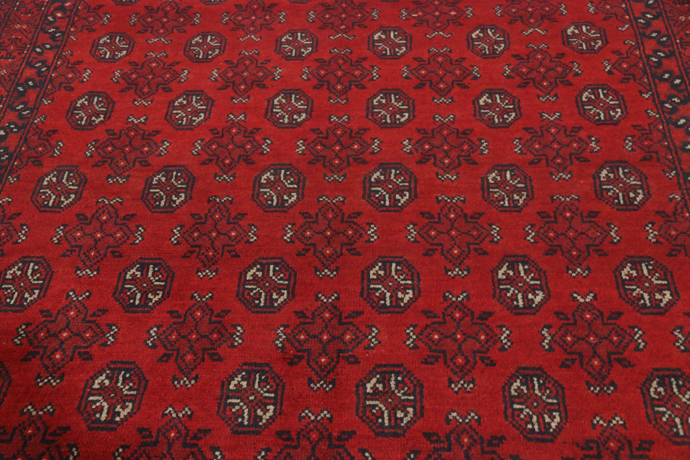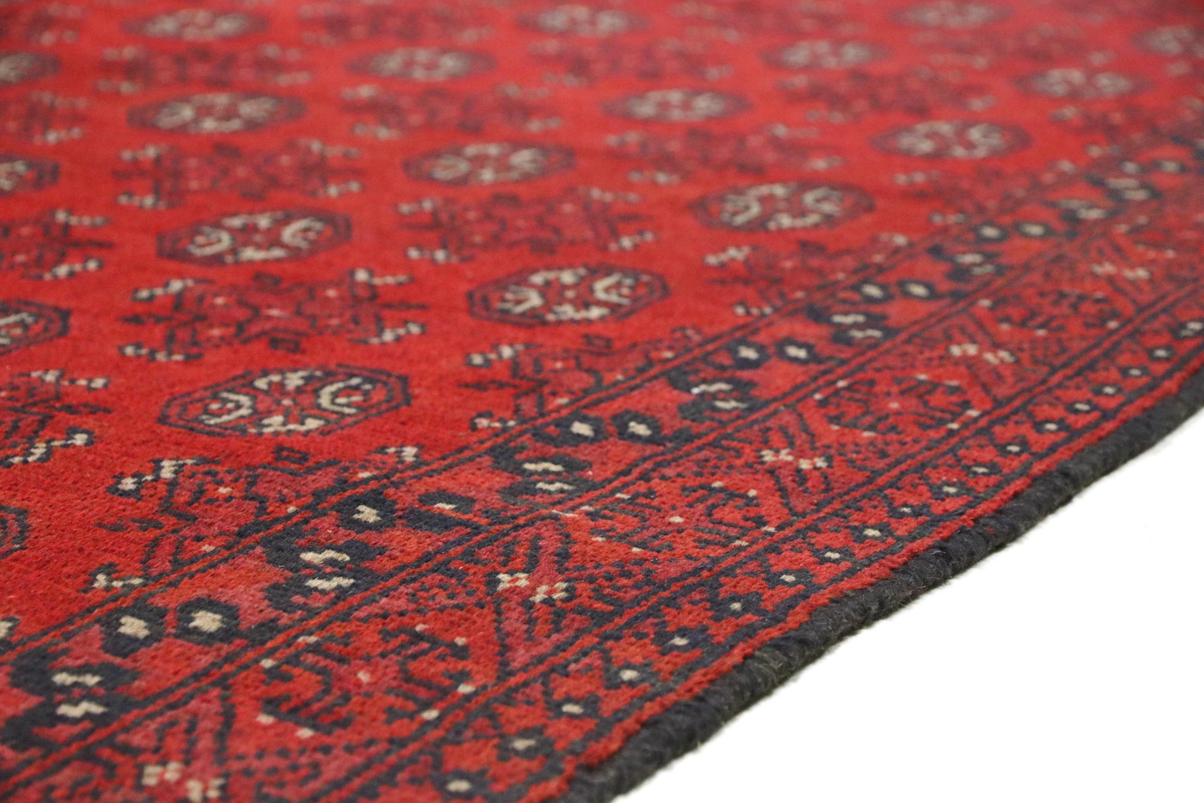 Este tapete afegão Akhche está diante de si como um sonho vermelho. Fica melhor em divisões simples. A sua qualidade convencerá qualquer amante de tapetes orientais. Atado à mão do Afeganistão.