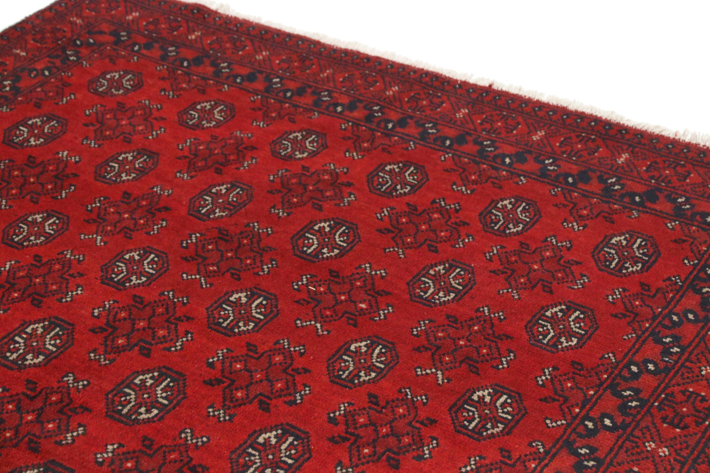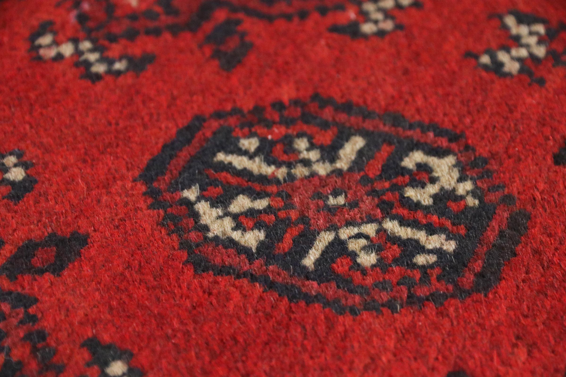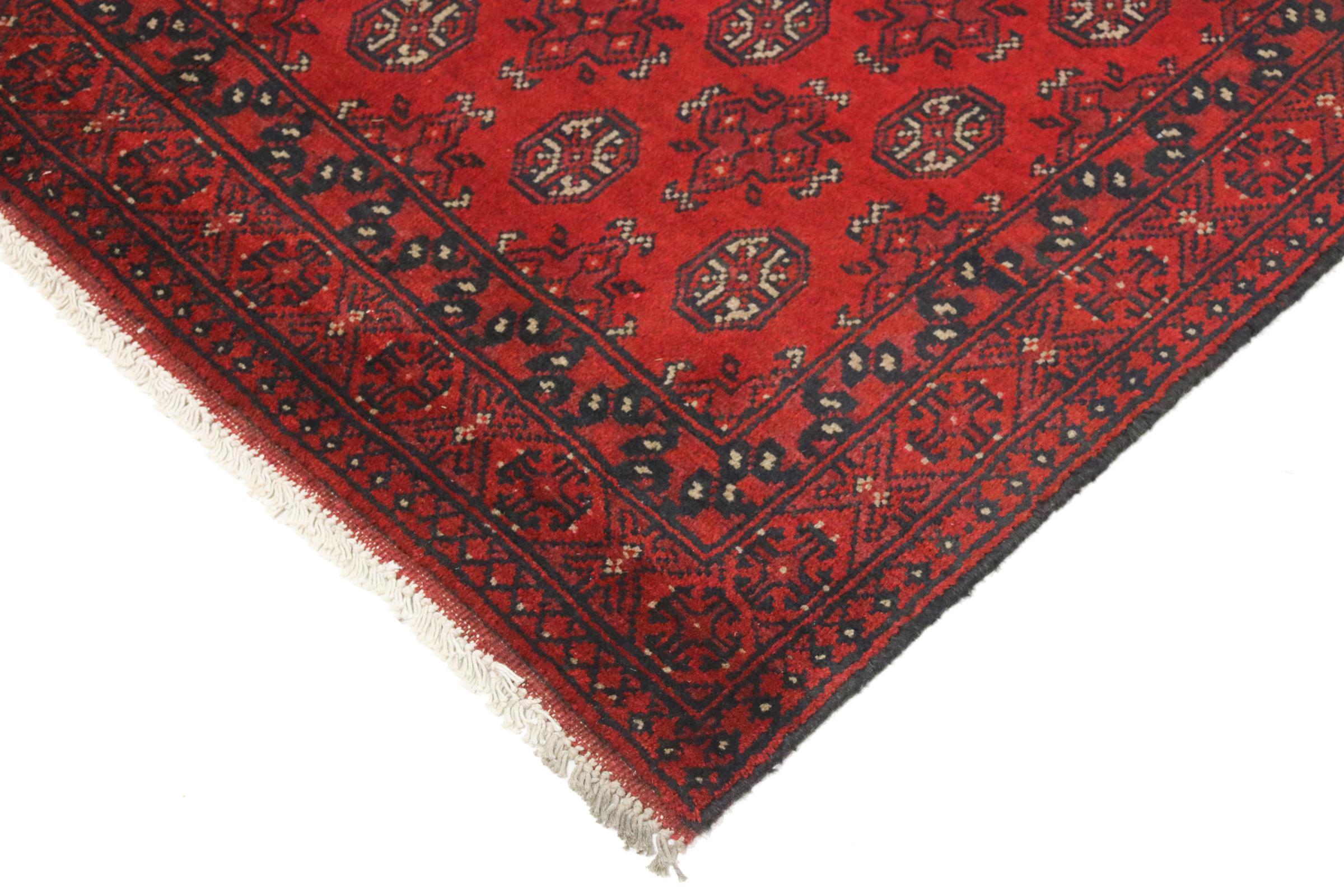 Este tapete afegão Akhche está diante de si como um sonho vermelho. Fica melhor em divisões simples. A sua qualidade convencerá qualquer amante de tapetes orientais. Atado à mão do Afeganistão.