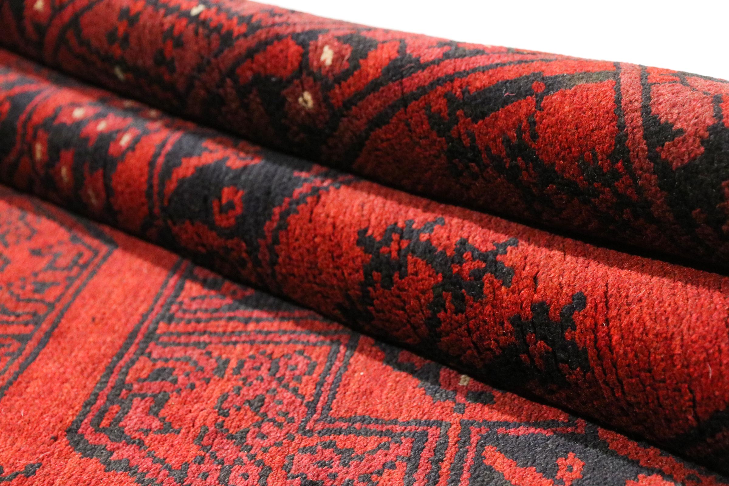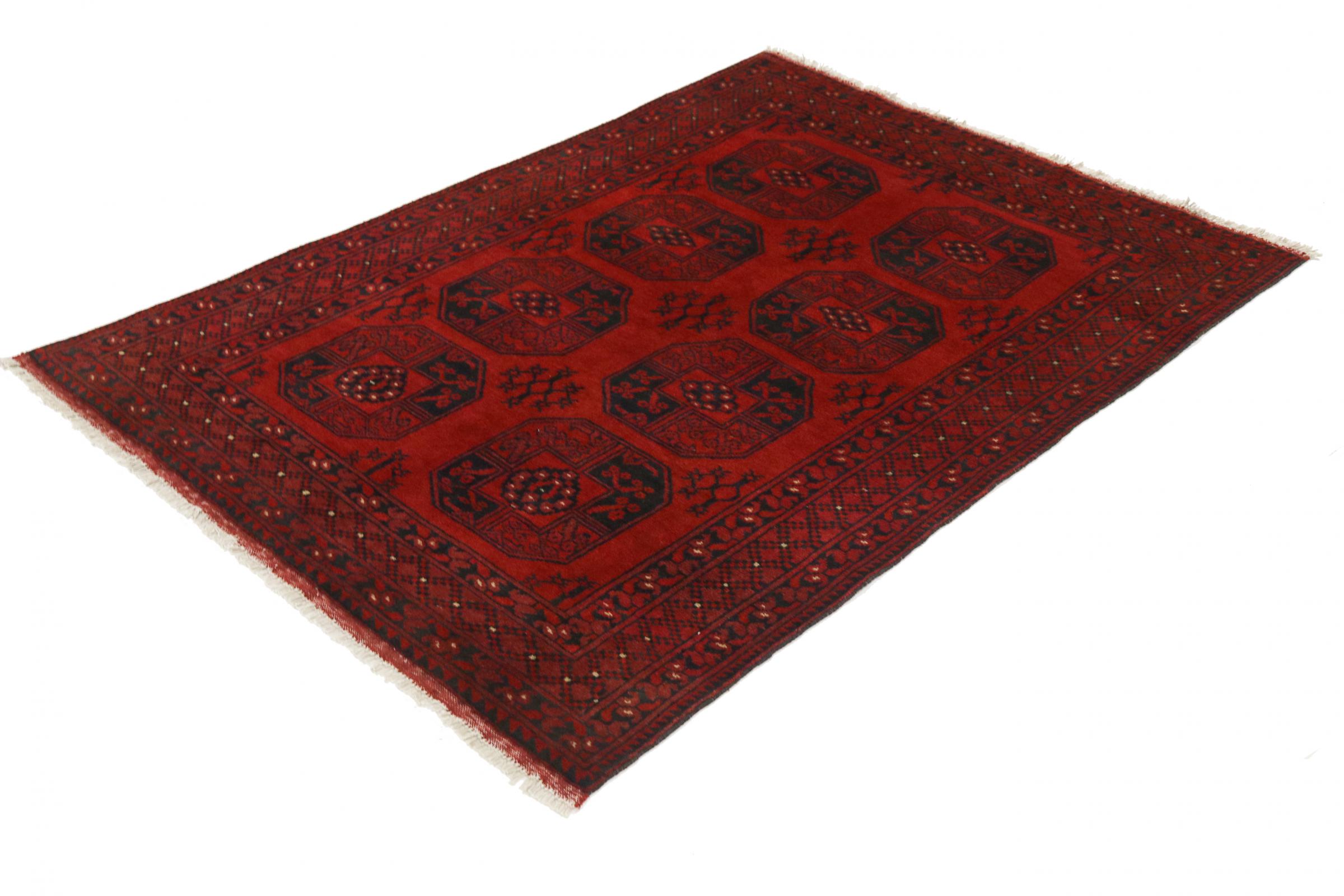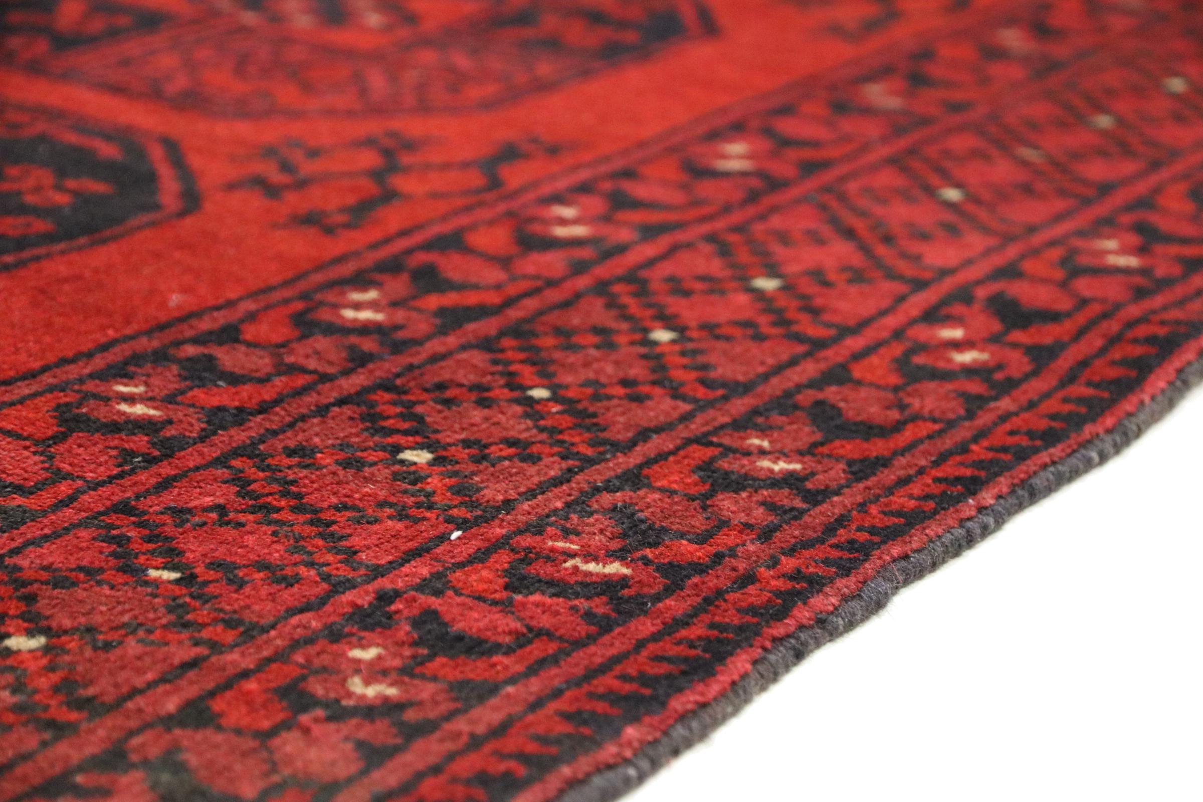 Este tapete afegão Akhche está diante de si como um sonho vermelho. Fica melhor em divisões simples. A sua qualidade convencerá qualquer amante de tapetes orientais. Atado à mão do Afeganistão.