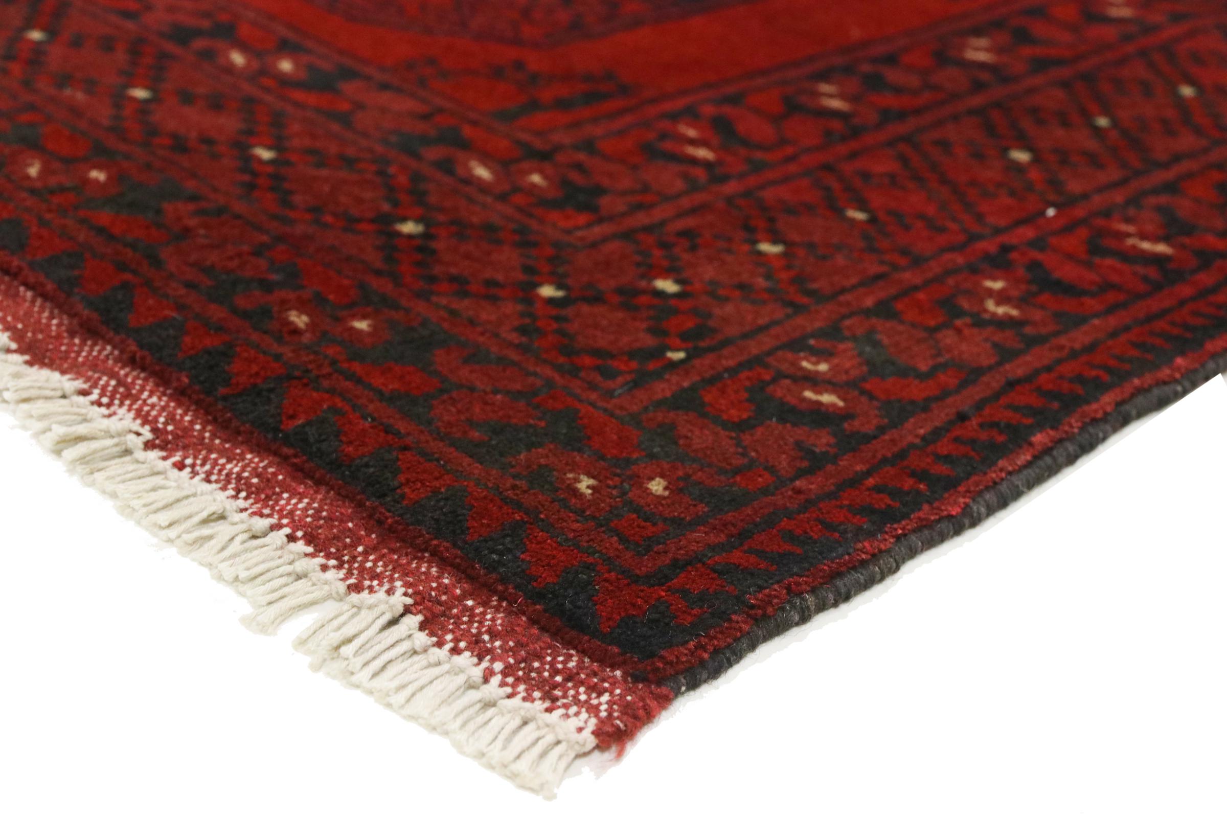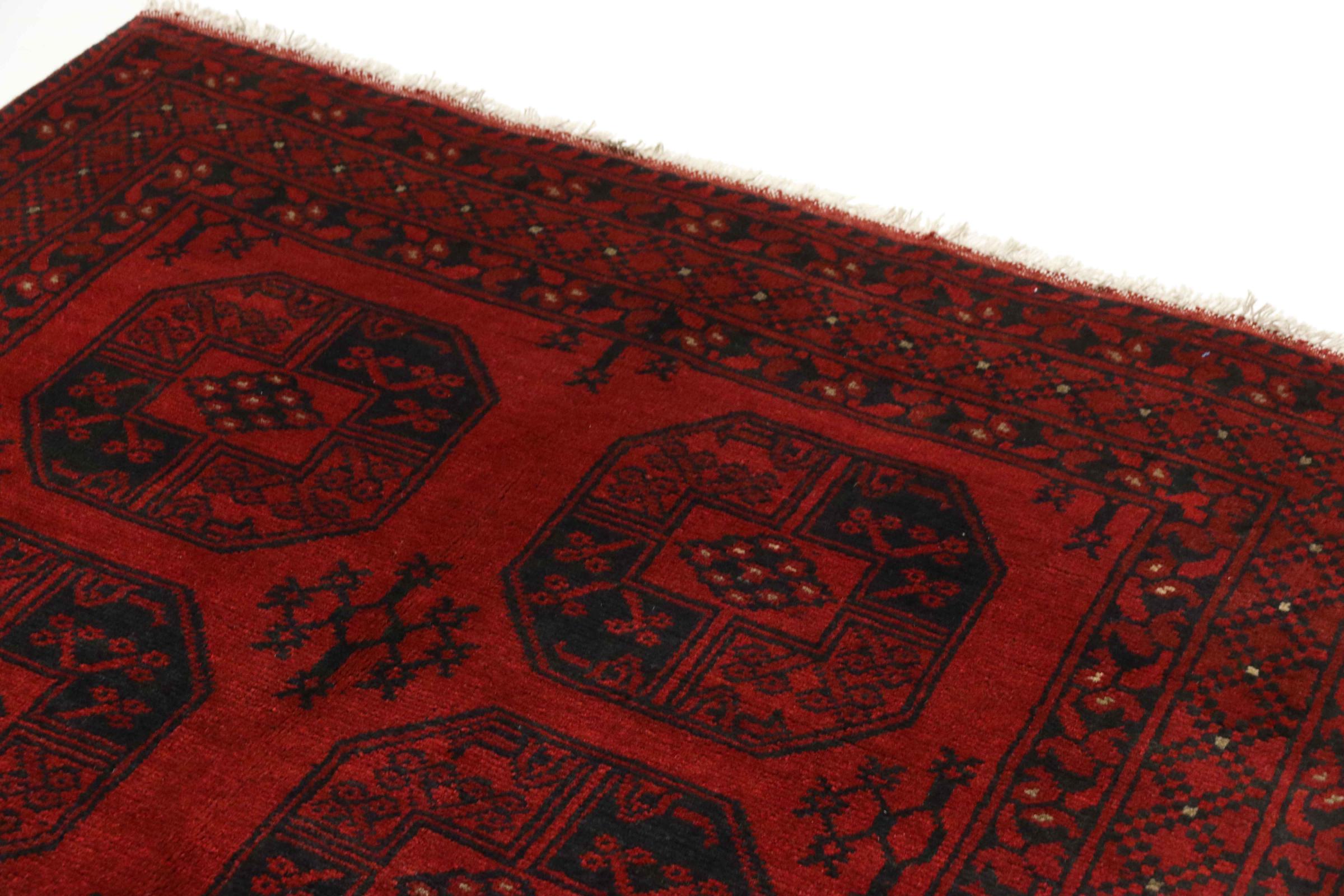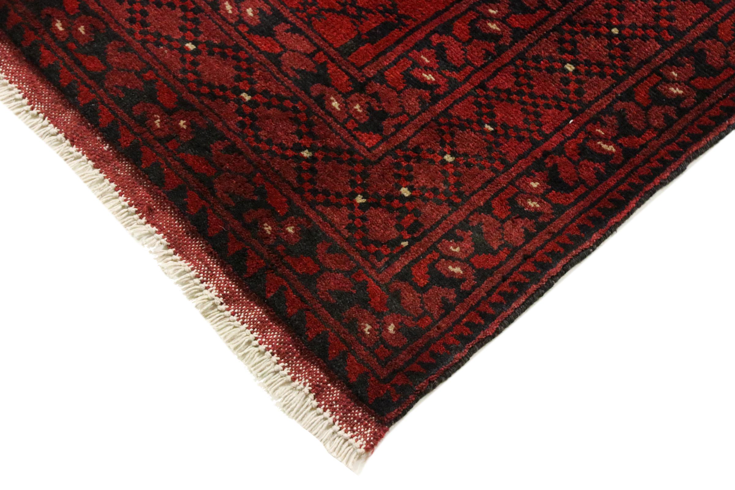 Este tapete afegão Akhche está diante de si como um sonho vermelho. Fica melhor em divisões simples. A sua qualidade convencerá qualquer amante de tapetes orientais. Atado à mão do Afeganistão.