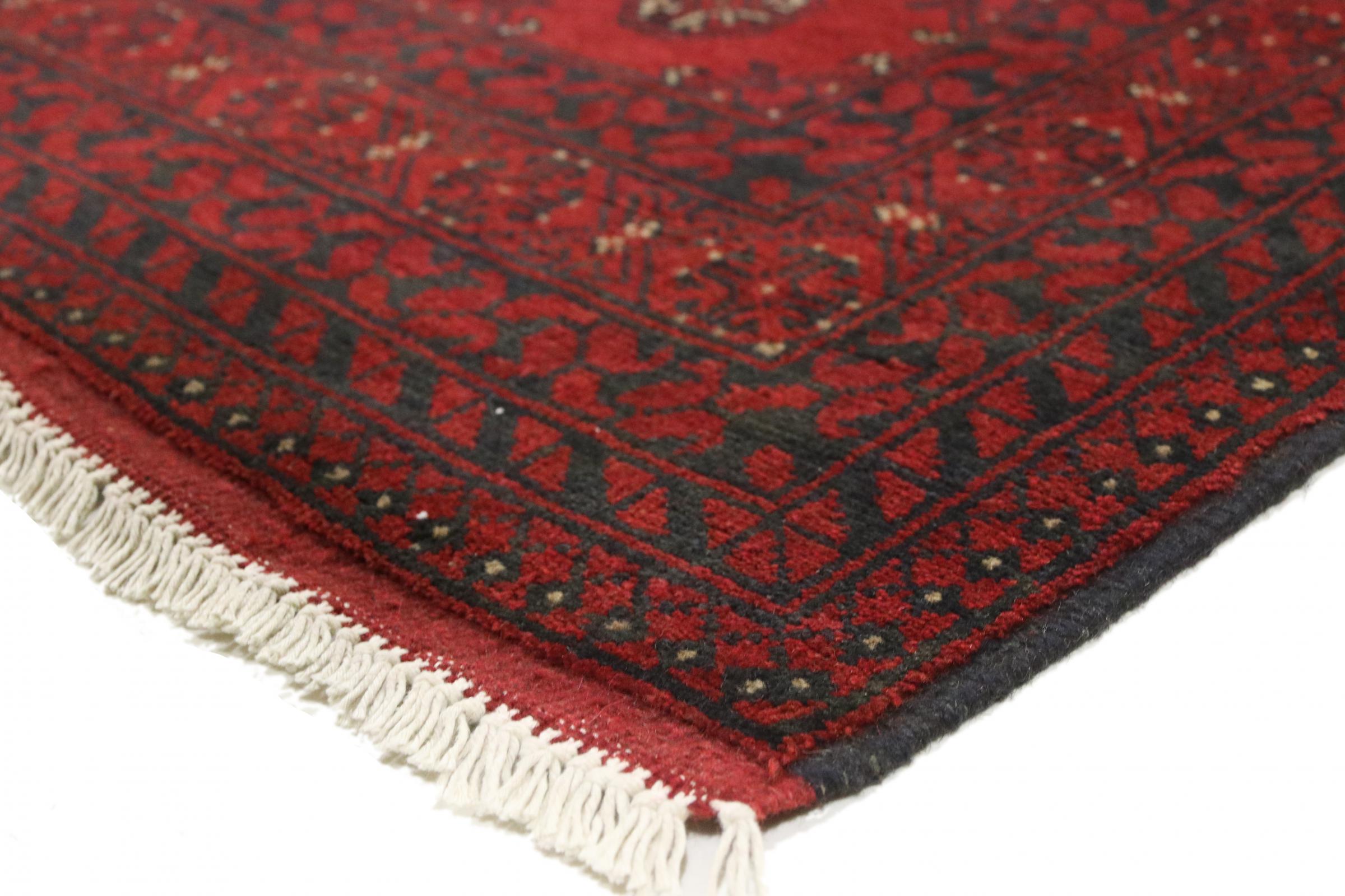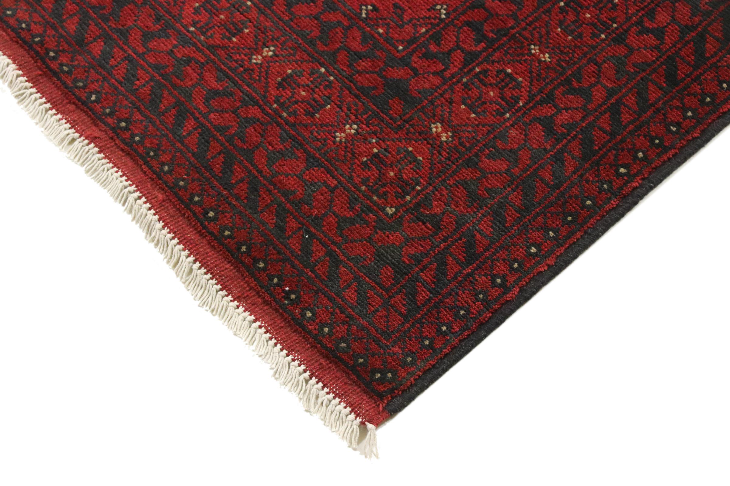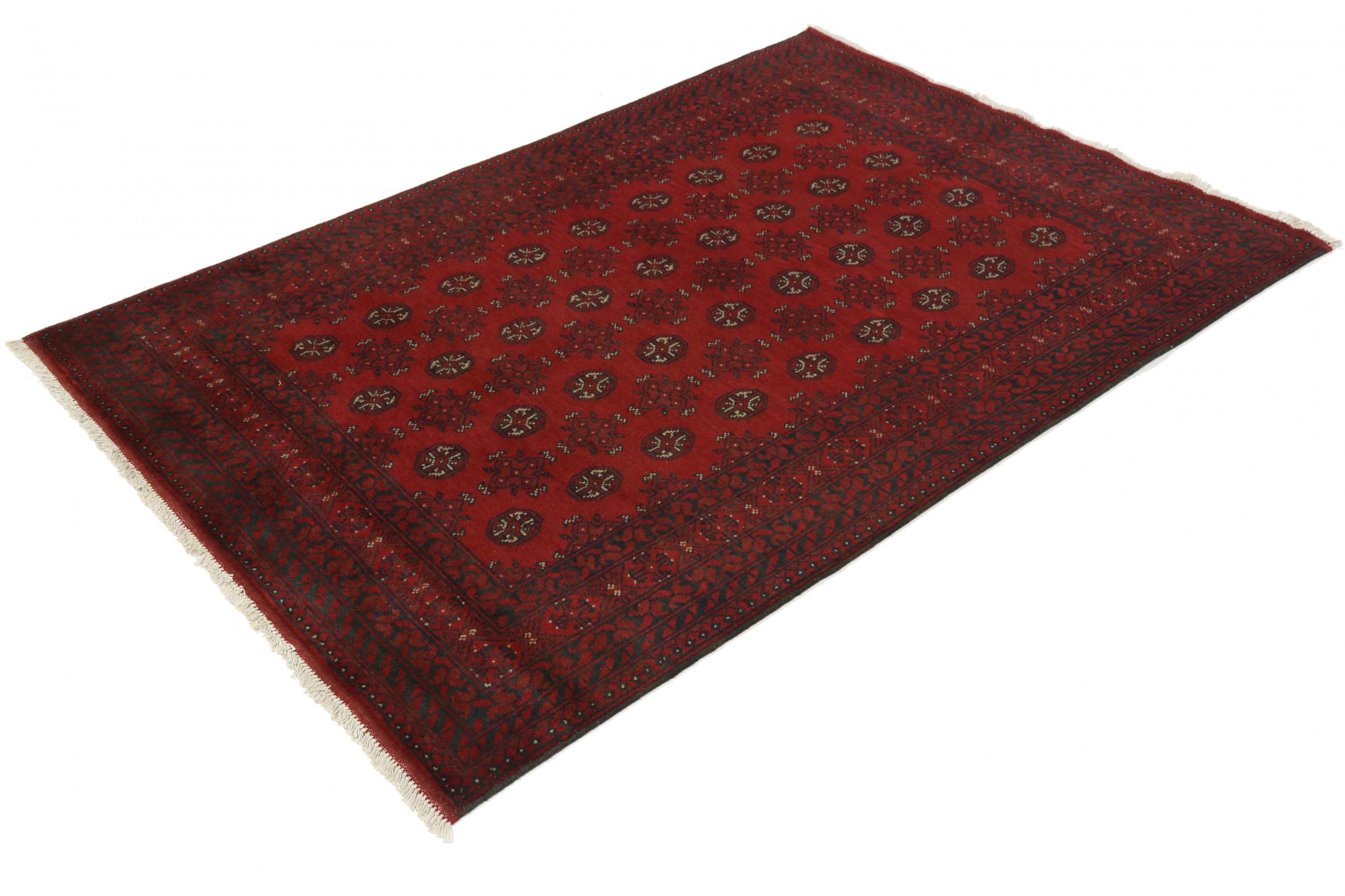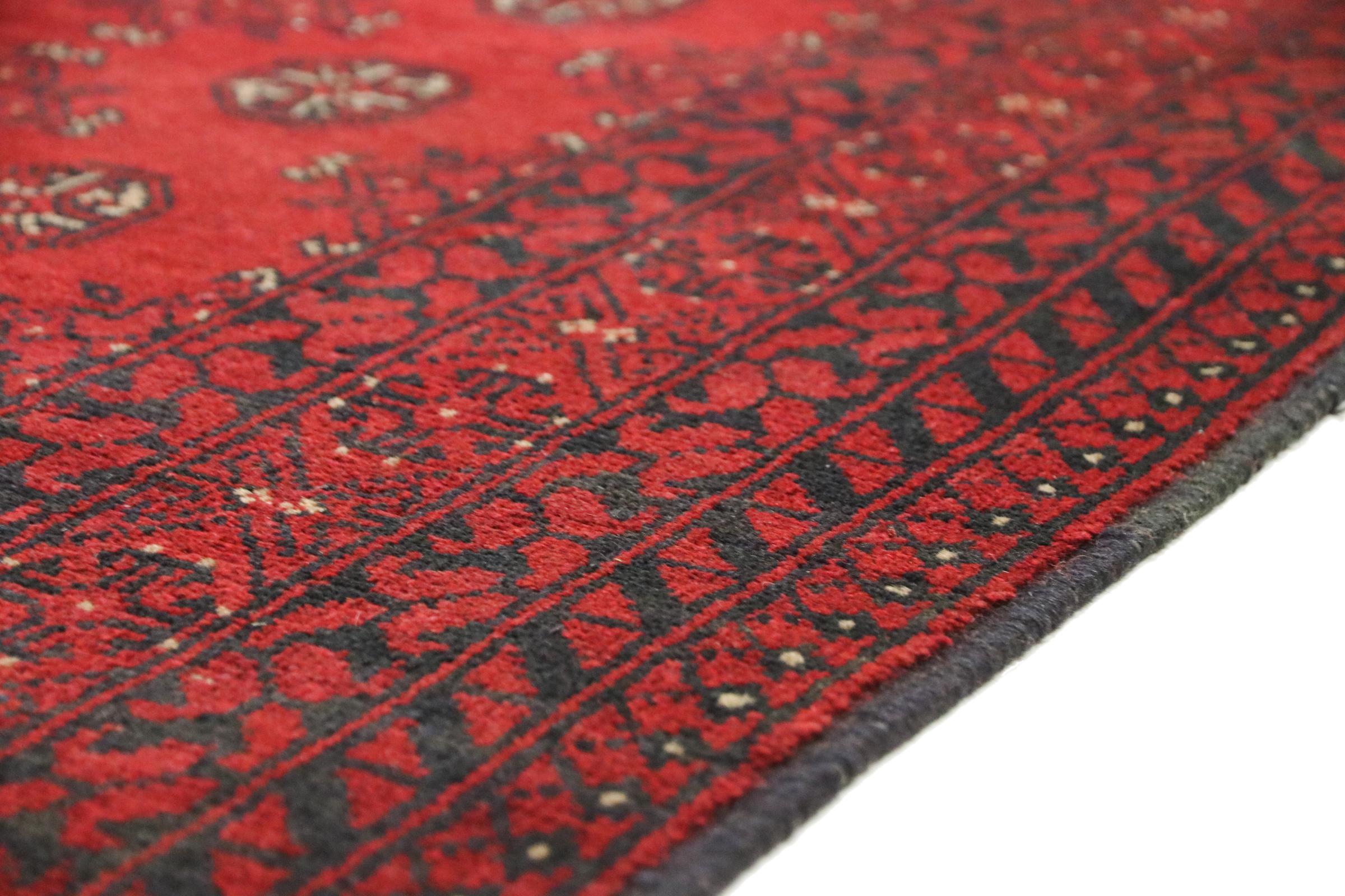 Este tapete afegão Akhche está diante de si como um sonho vermelho. Fica melhor em divisões simples. A sua qualidade convencerá qualquer amante de tapetes orientais. Atado à mão do Afeganistão.
