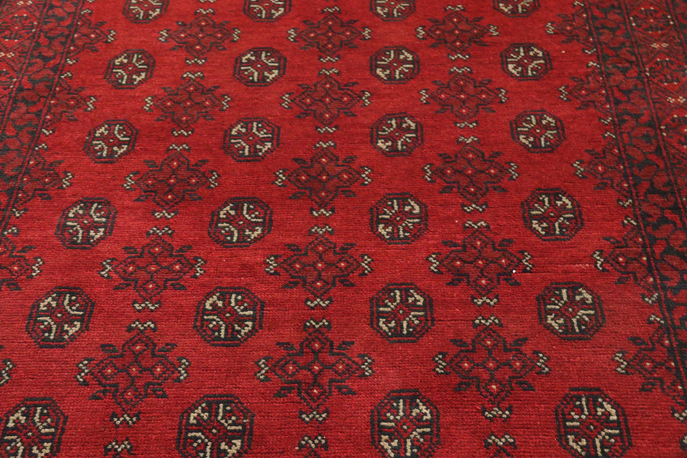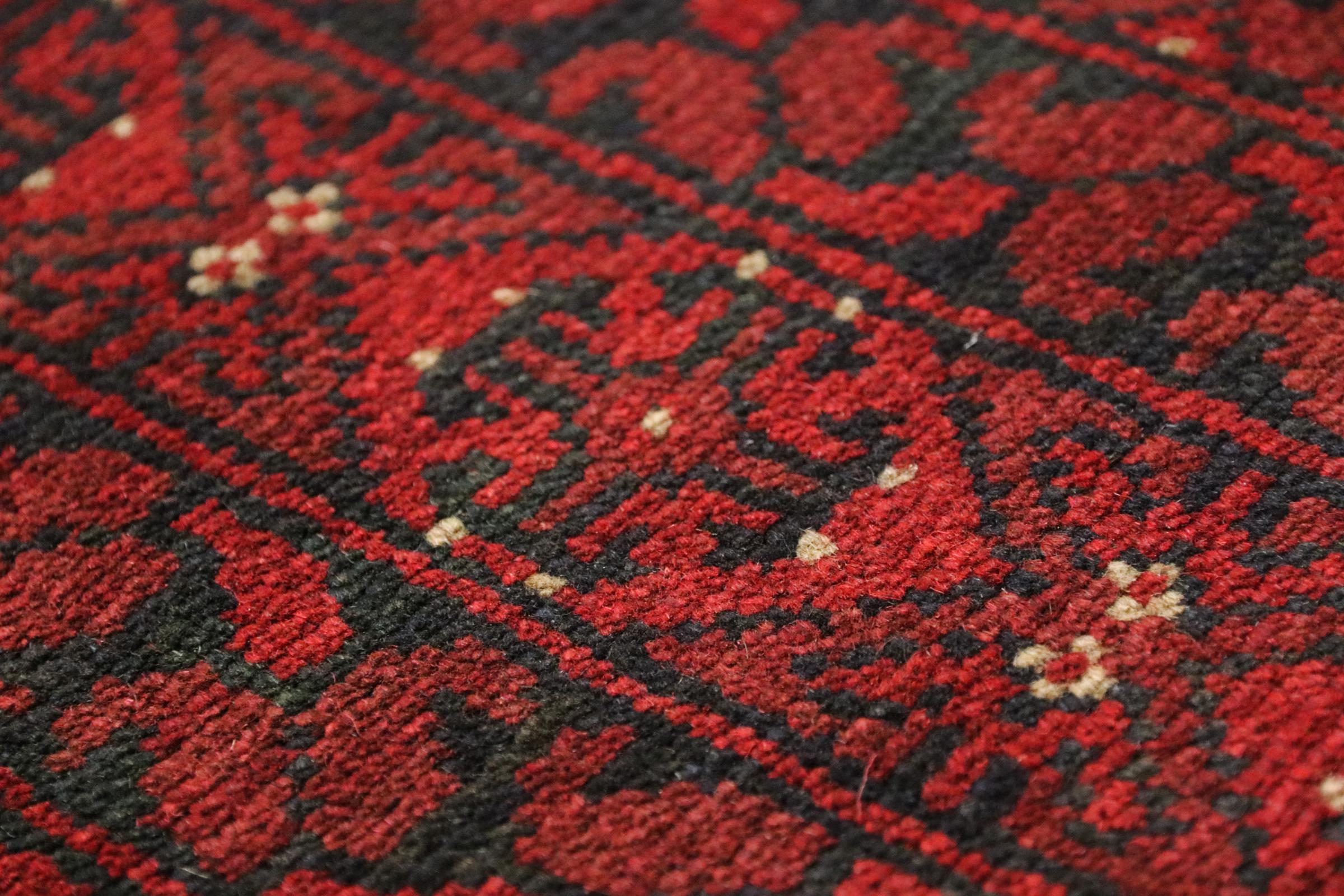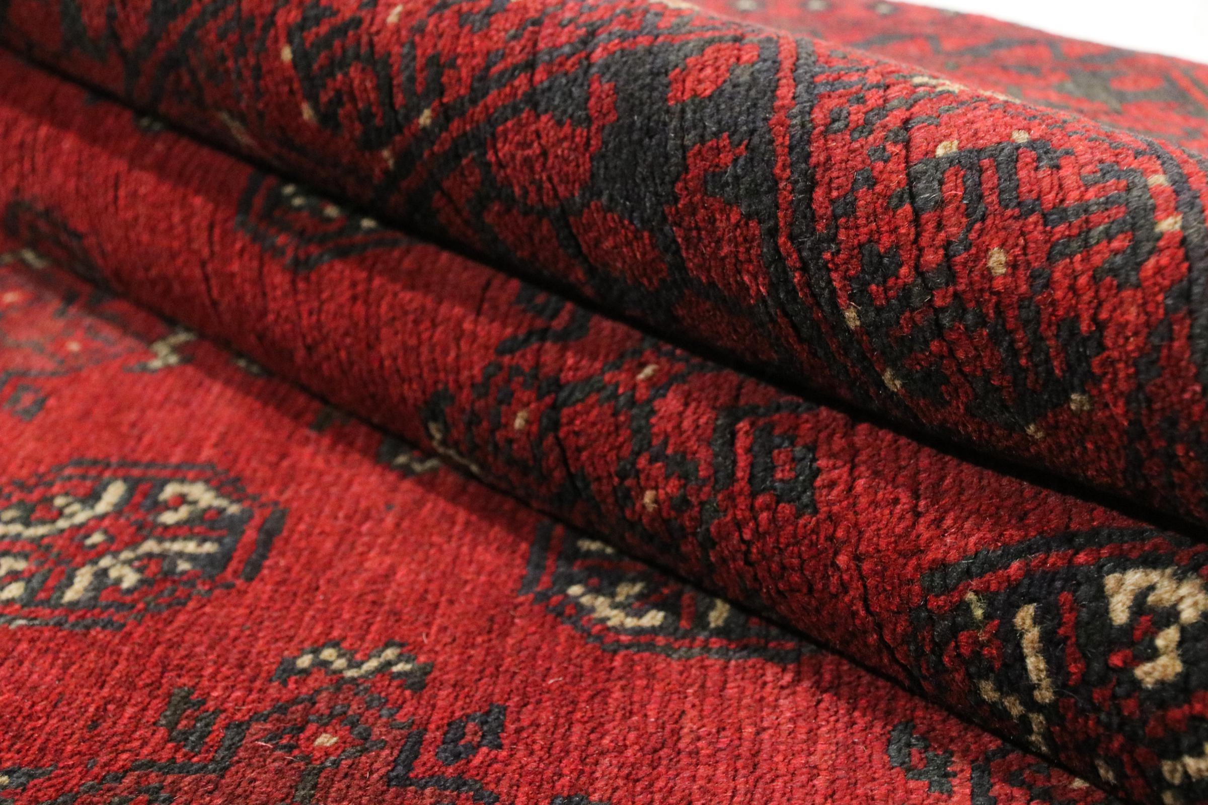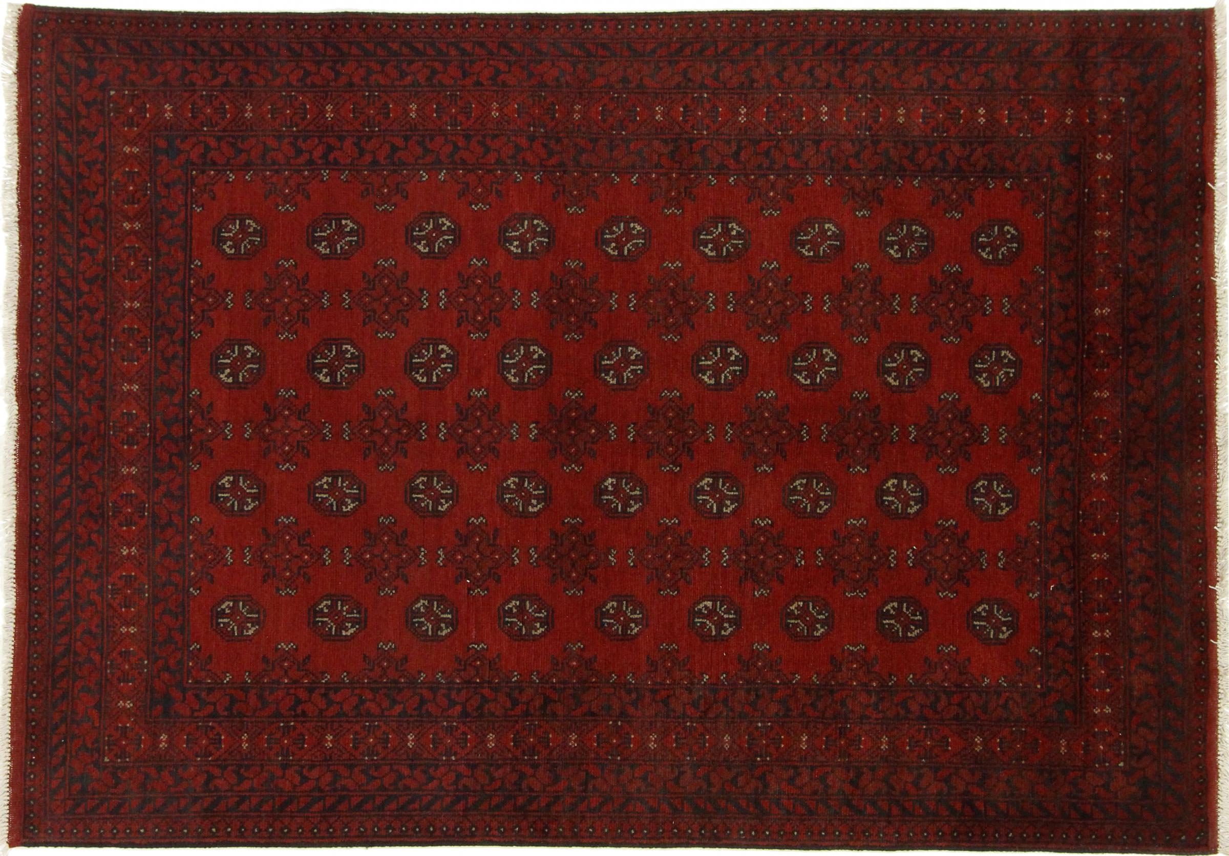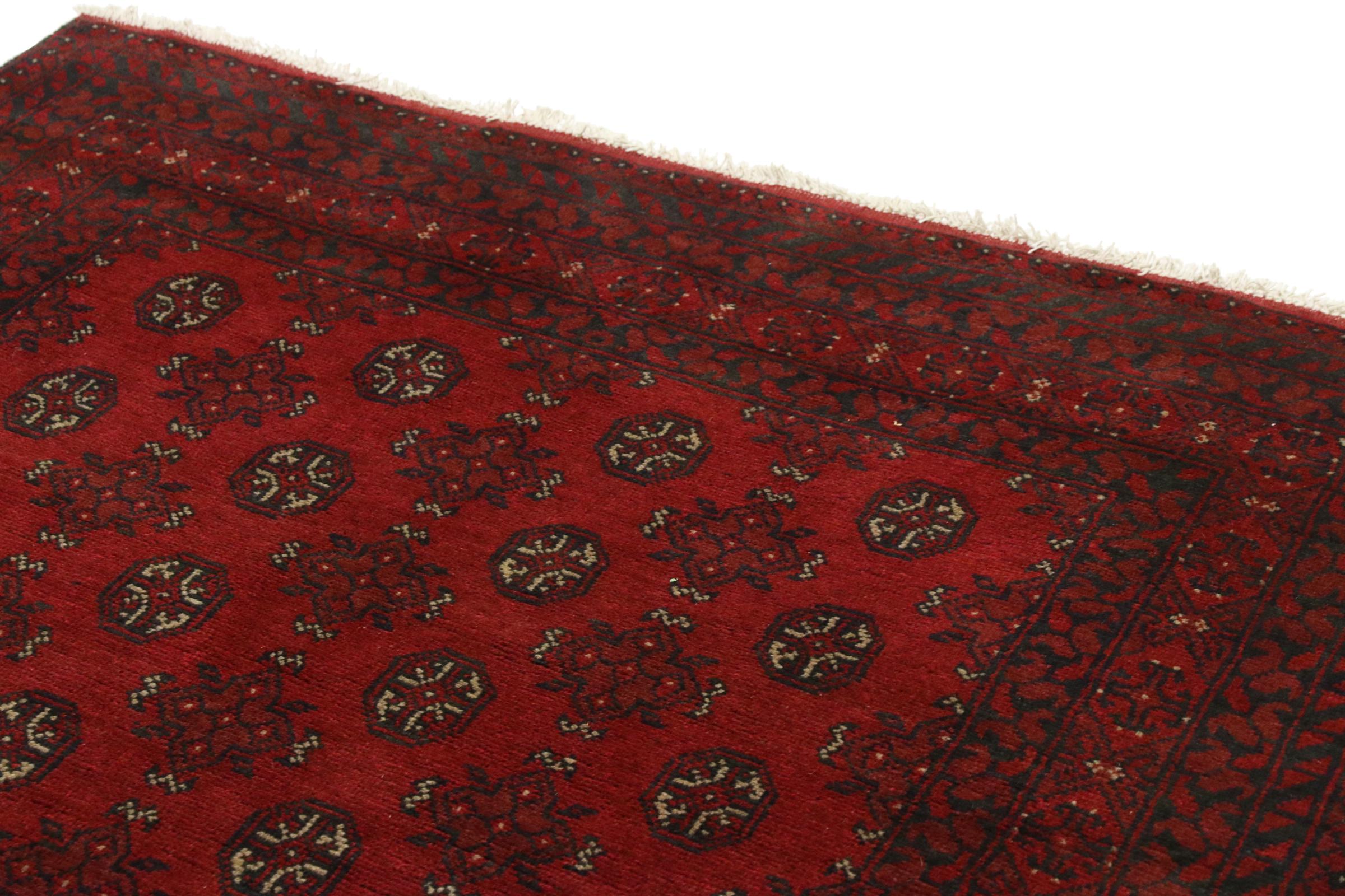 Este tapete afegão Akhche está diante de si como um sonho vermelho. Fica melhor em divisões simples. A sua qualidade convencerá qualquer amante de tapetes orientais. Atado à mão do Afeganistão.