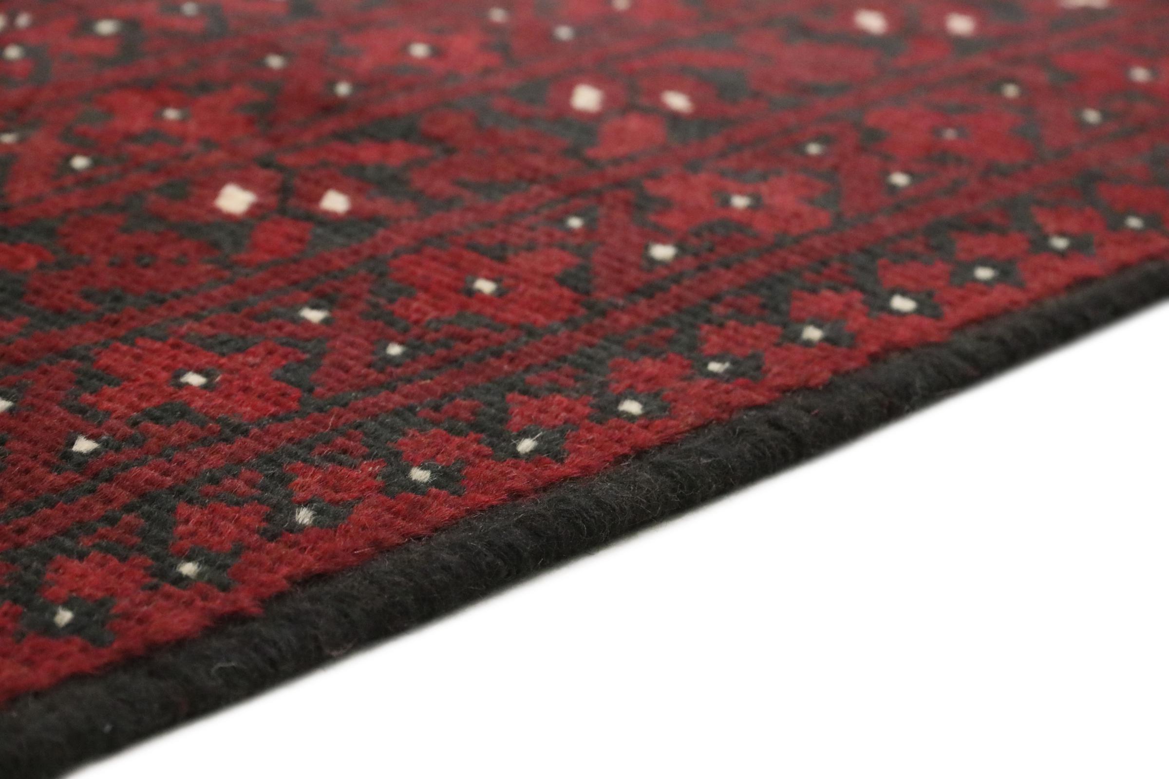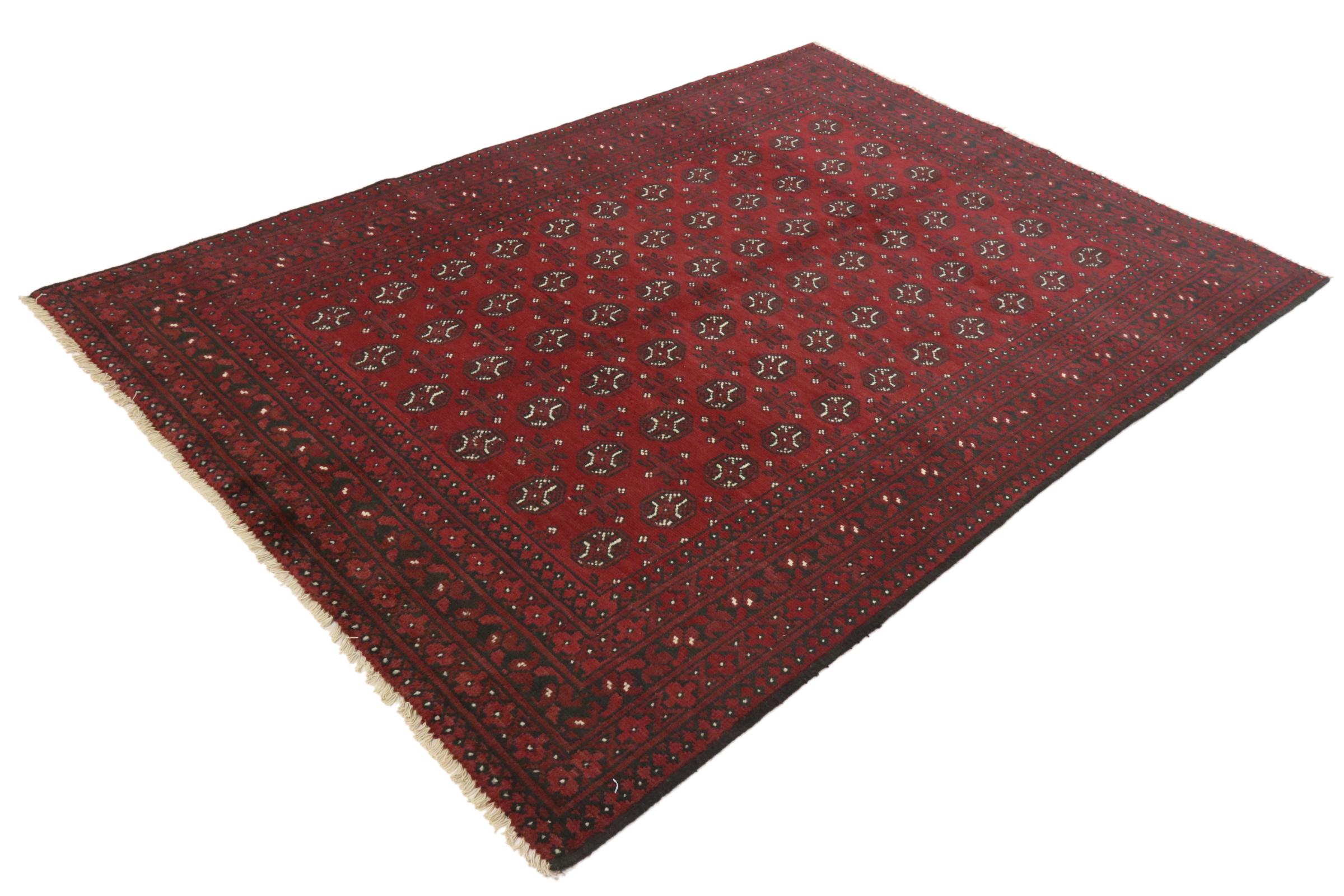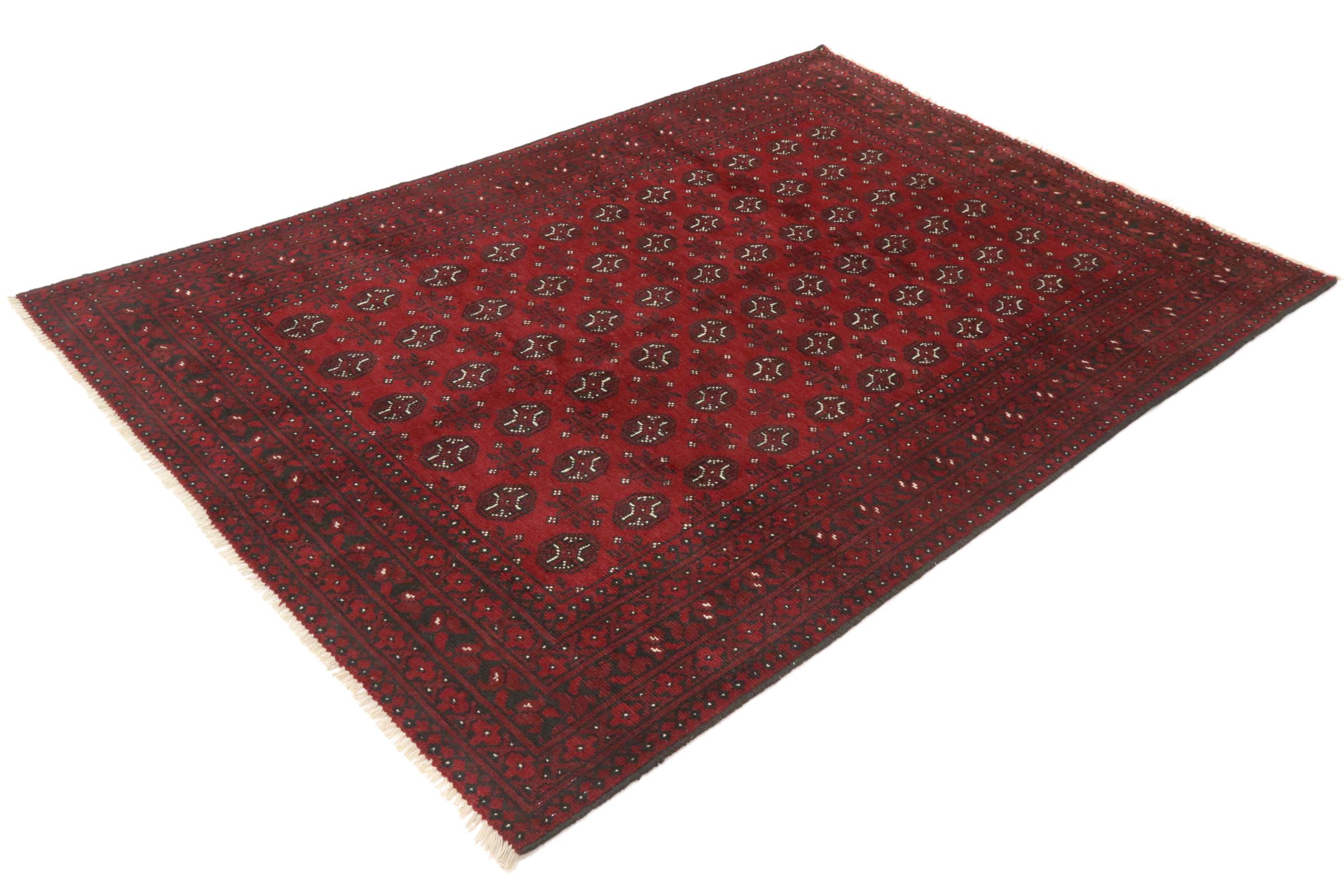 Este tapete afegão Akhche está diante de si como um sonho vermelho. Fica melhor em divisões simples. A sua qualidade convencerá qualquer amante de tapetes orientais. Atado à mão do Afeganistão.