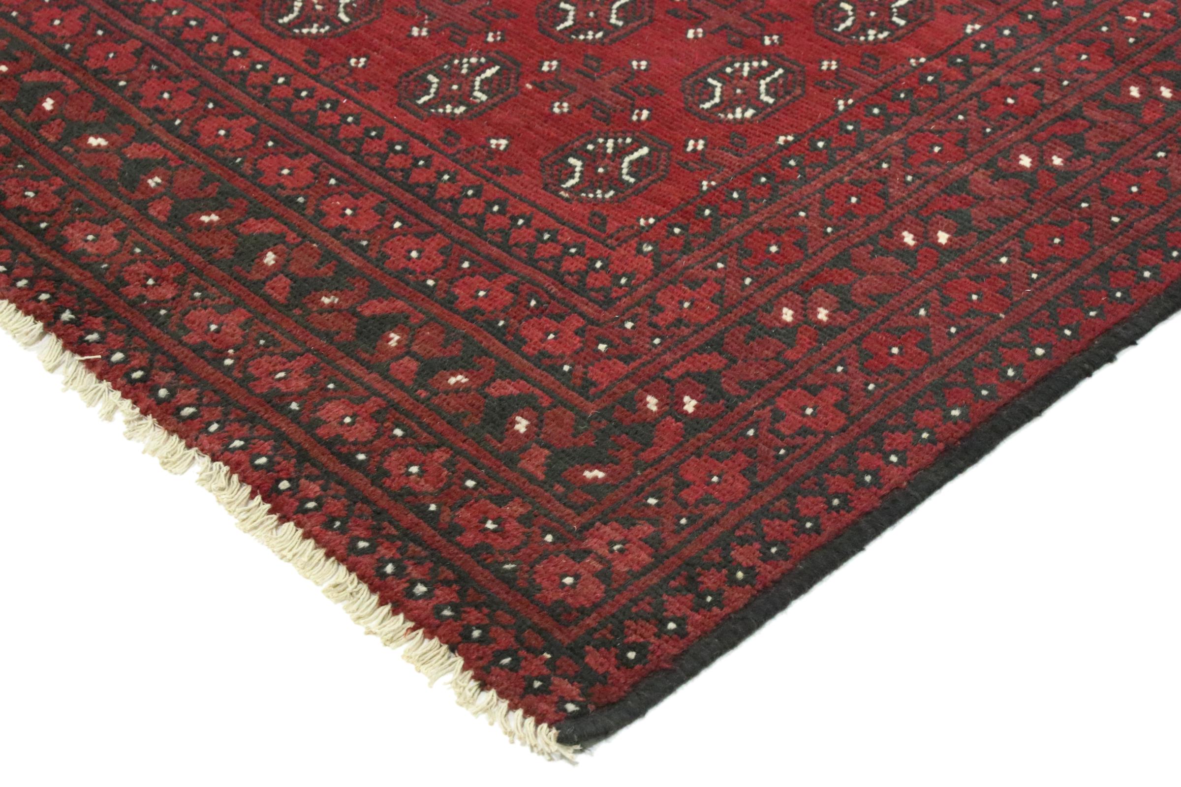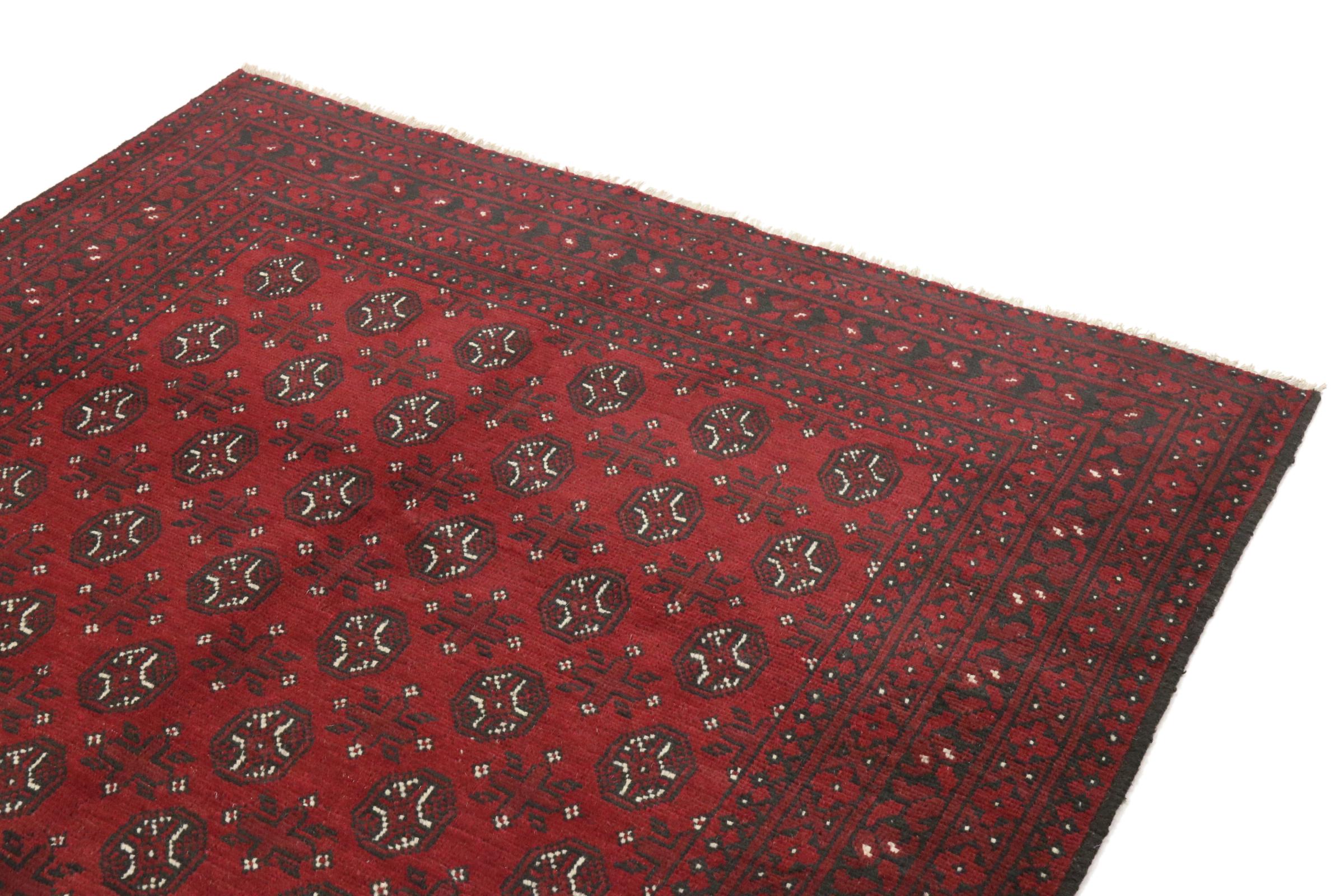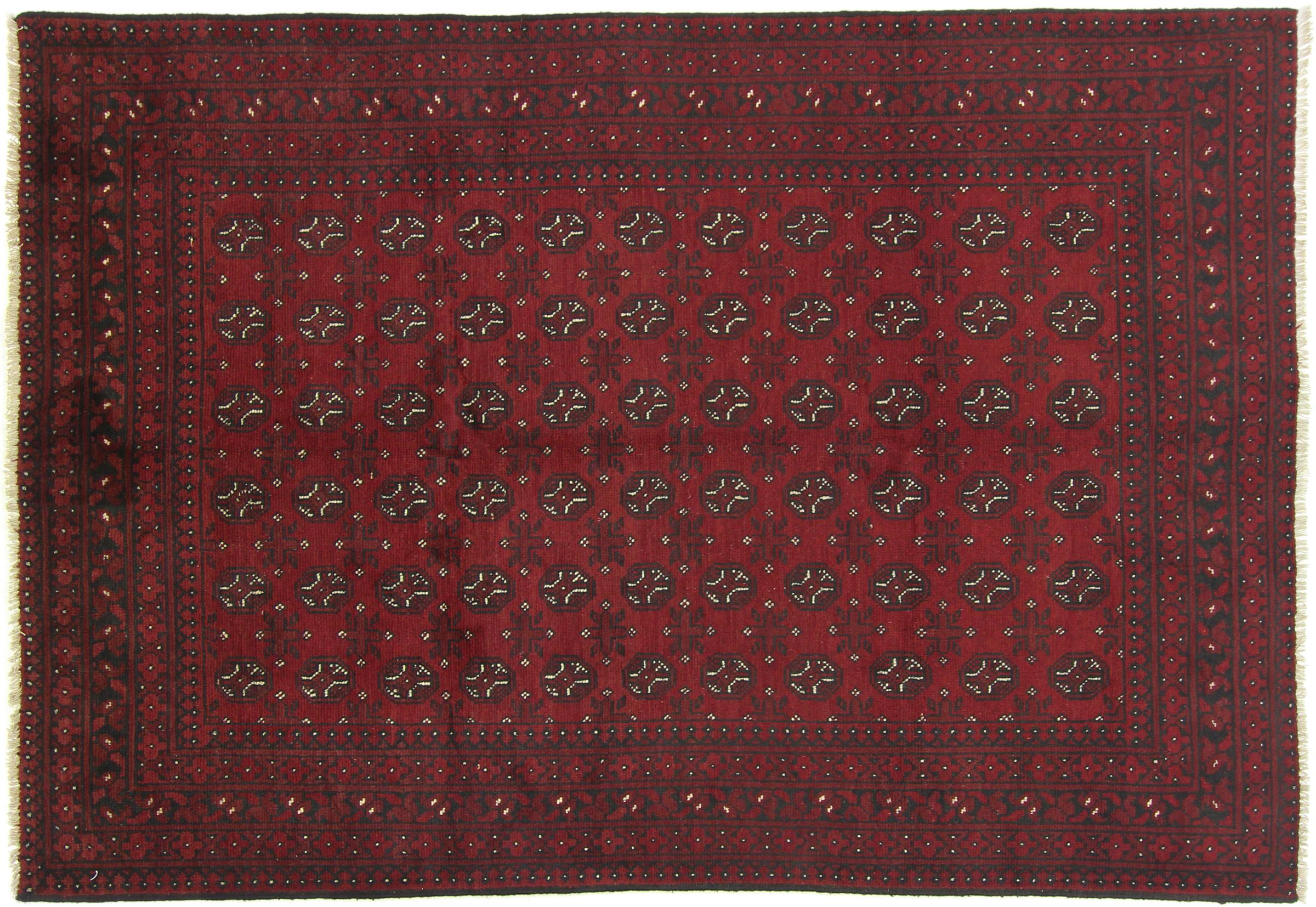 Este tapete afegão Akhche está diante de si como um sonho vermelho. Fica melhor em divisões simples. A sua qualidade convencerá qualquer amante de tapetes orientais. Atado à mão do Afeganistão.