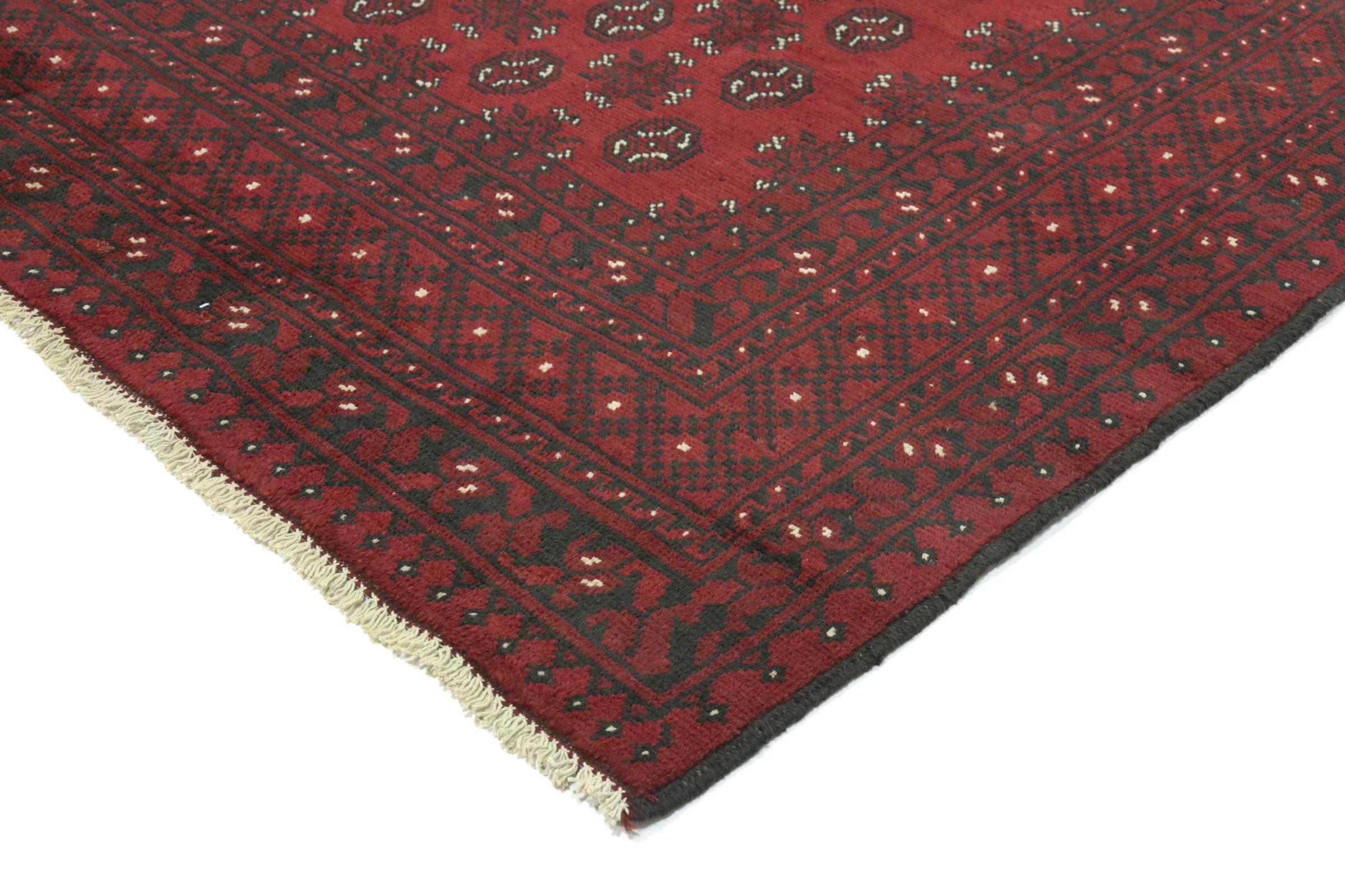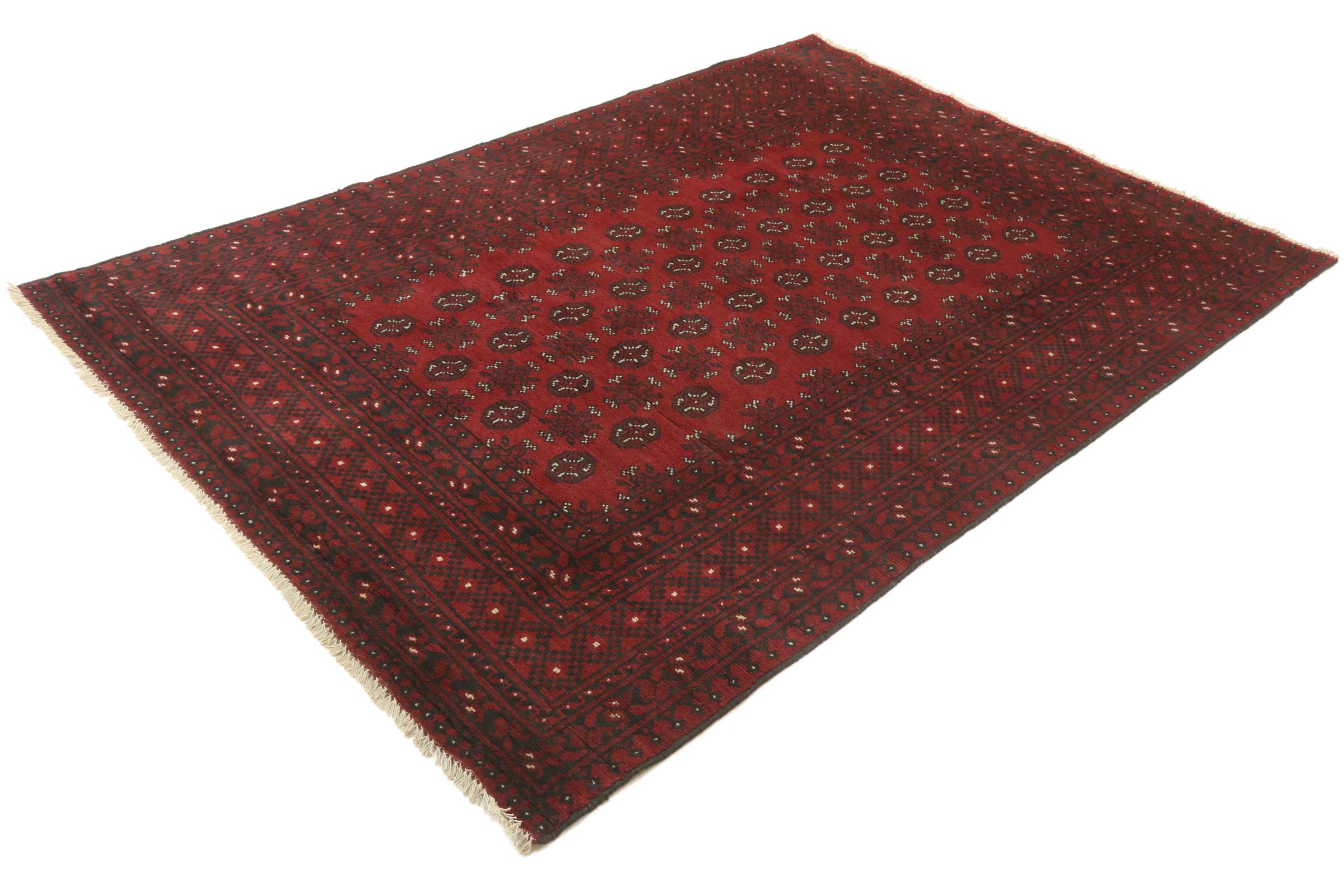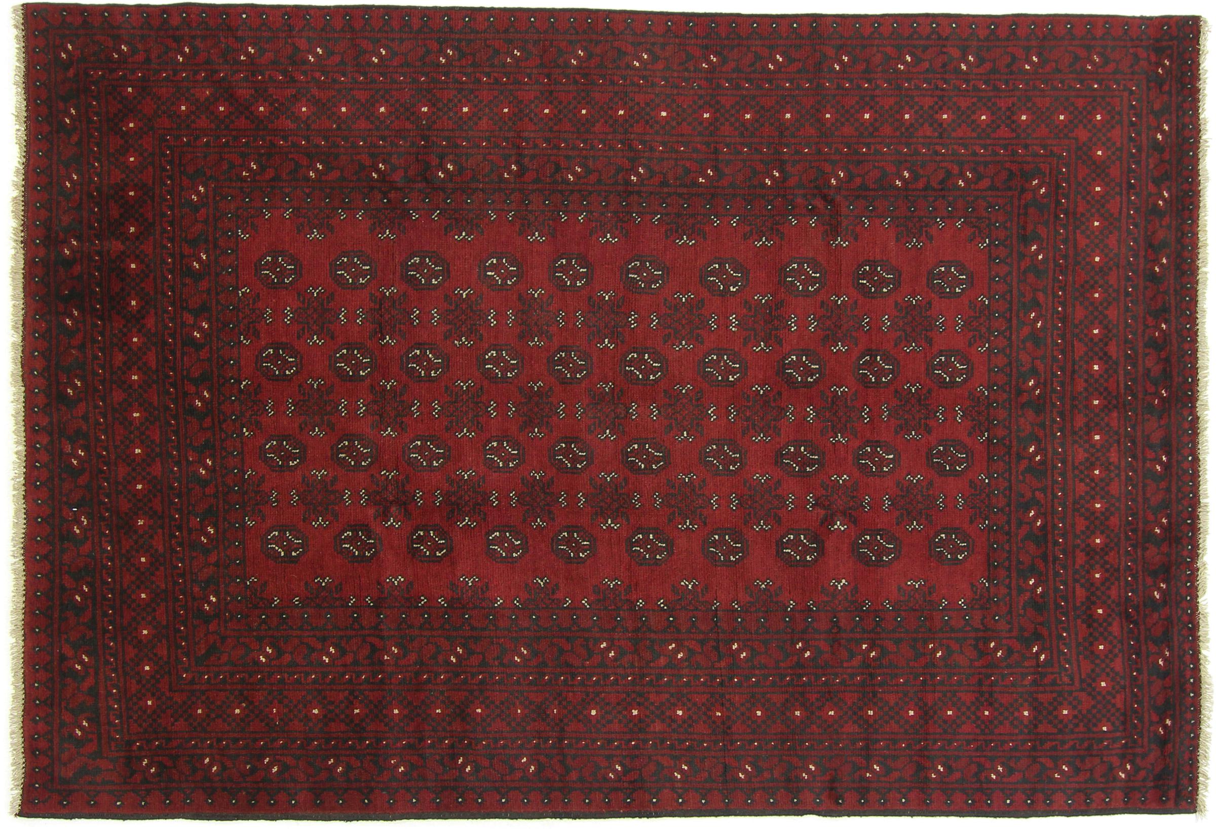 Este tapete afegão Akhche está diante de si como um sonho vermelho. Fica melhor em divisões simples. A sua qualidade convencerá qualquer amante de tapetes orientais. Atado à mão do Afeganistão.