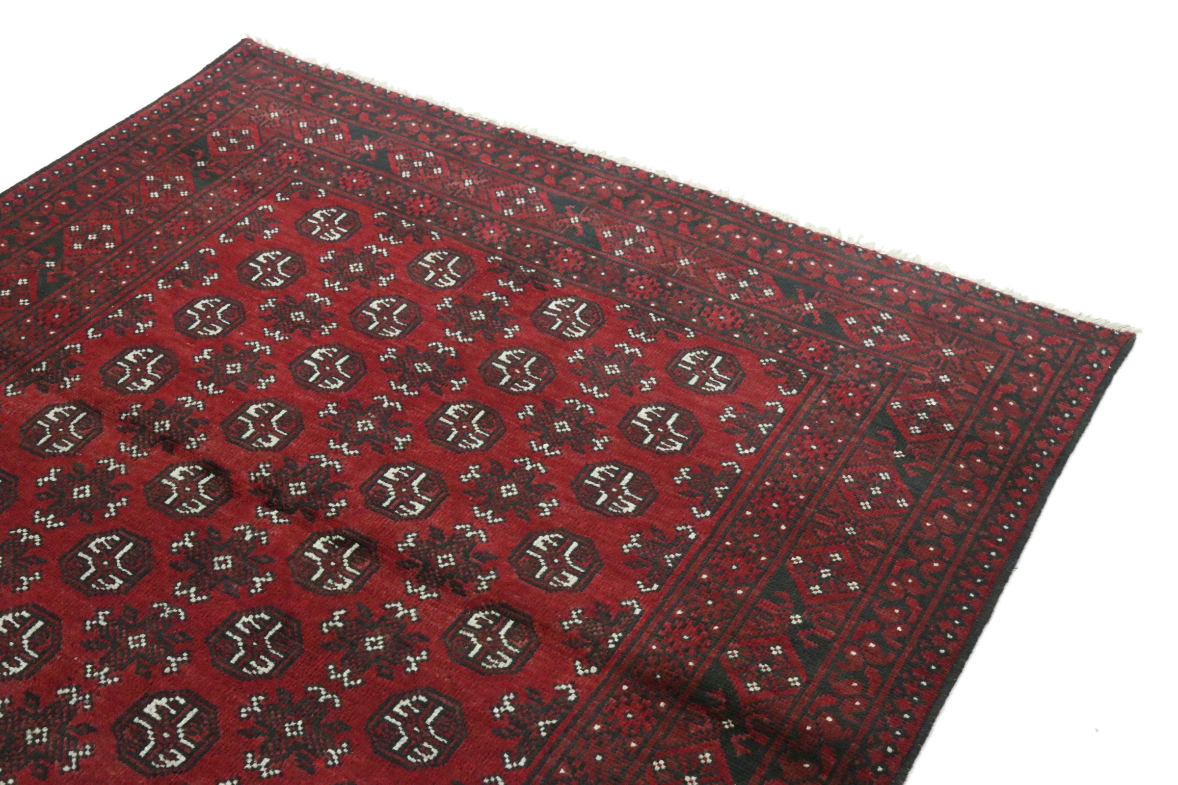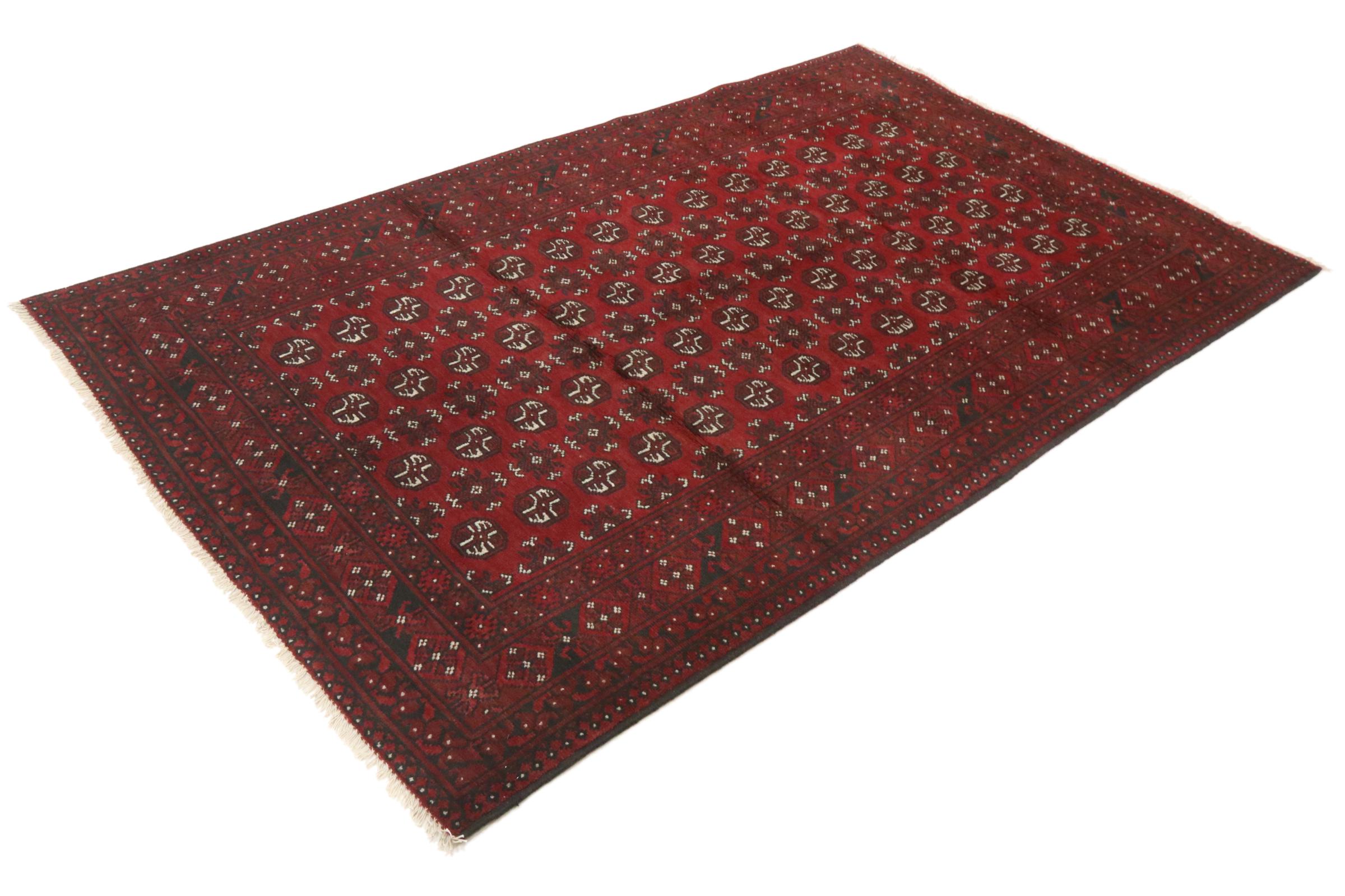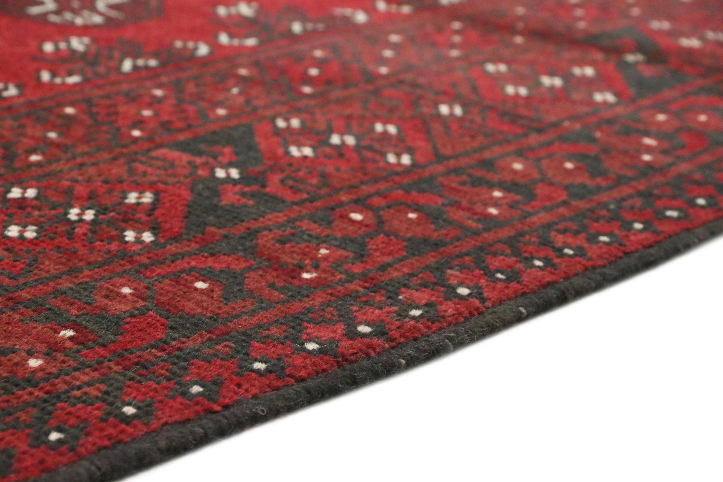 Este tapete afegão Akhche está diante de si como um sonho vermelho. Fica melhor em divisões simples. A sua qualidade convencerá qualquer amante de tapetes orientais. Atado à mão do Afeganistão.