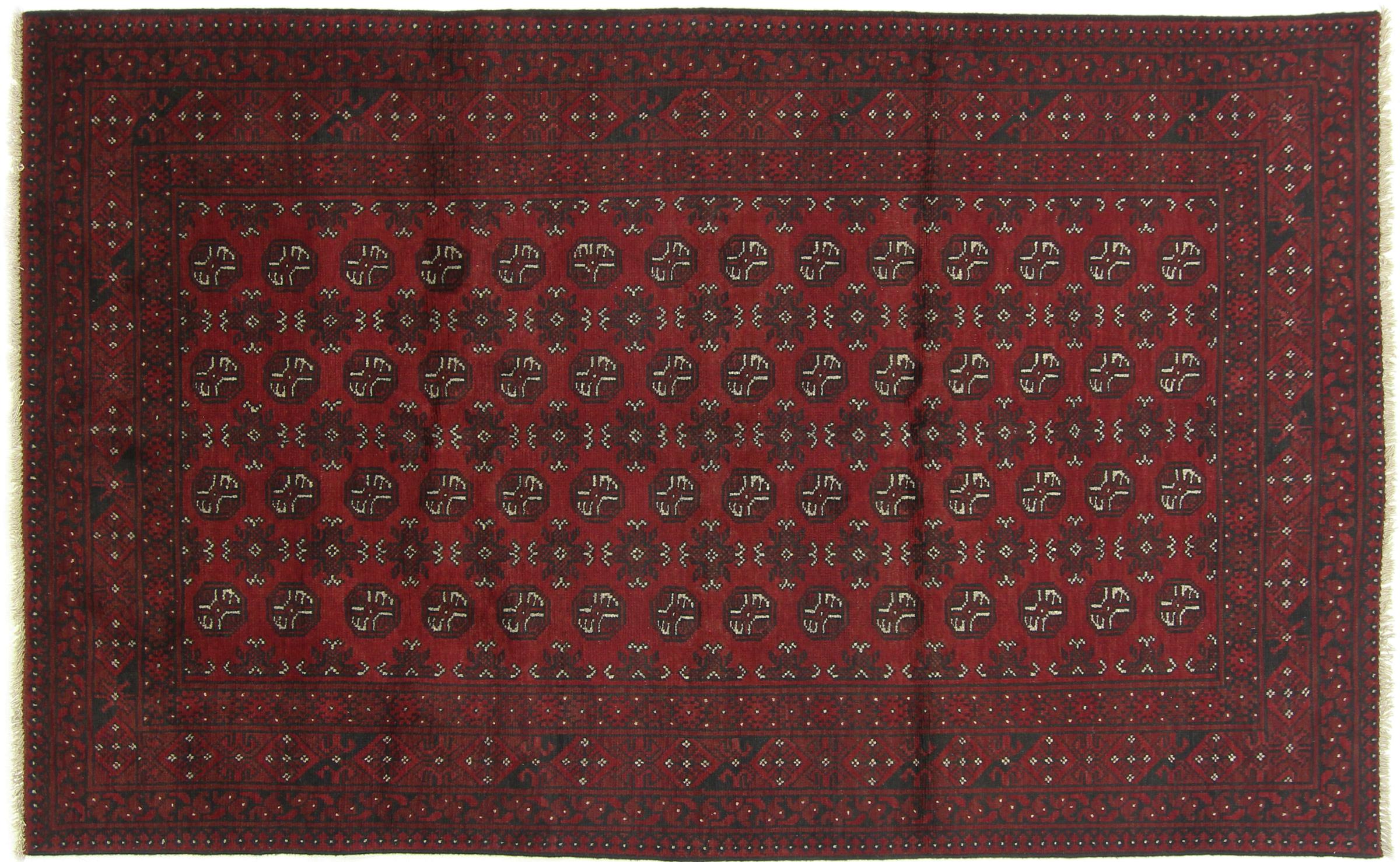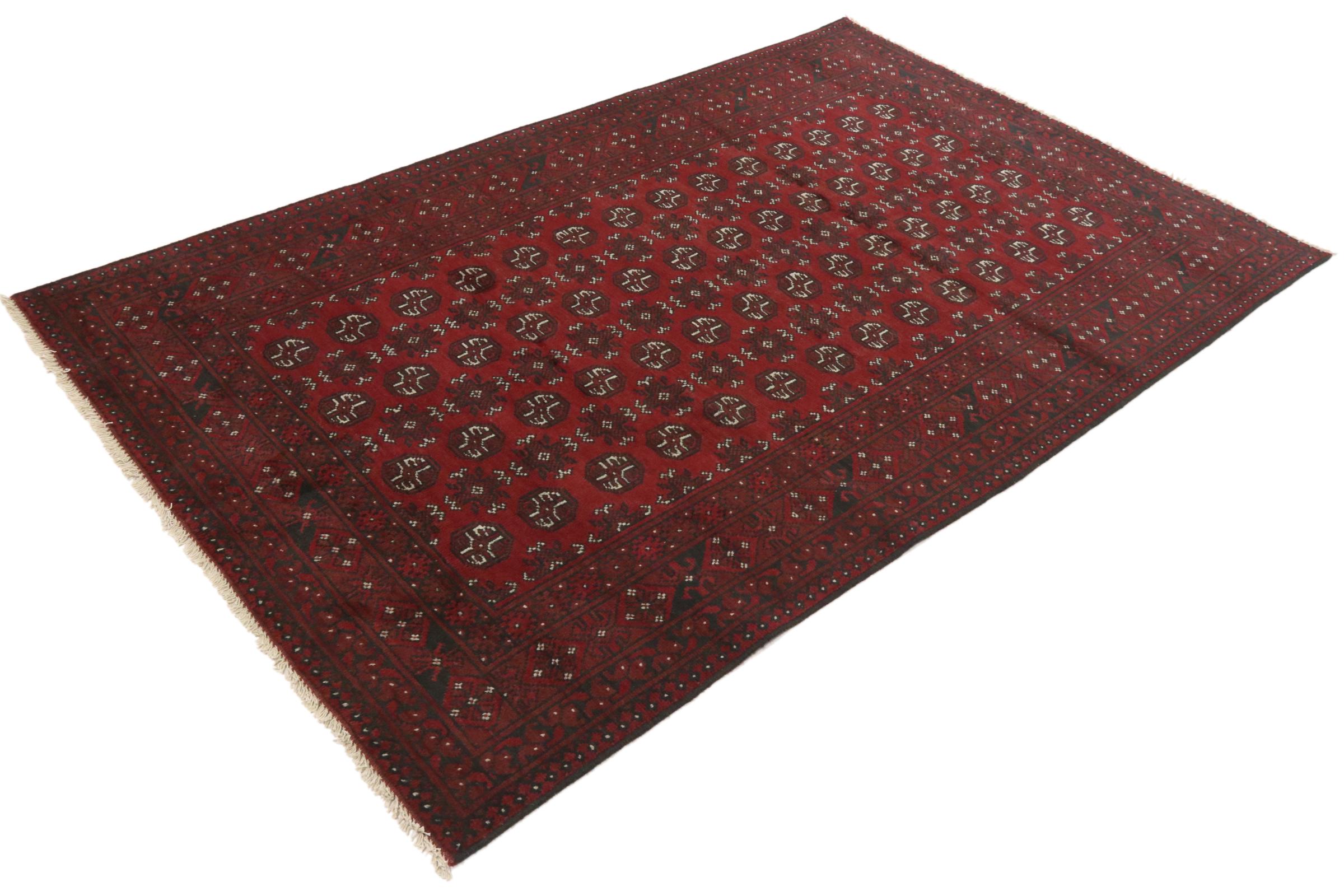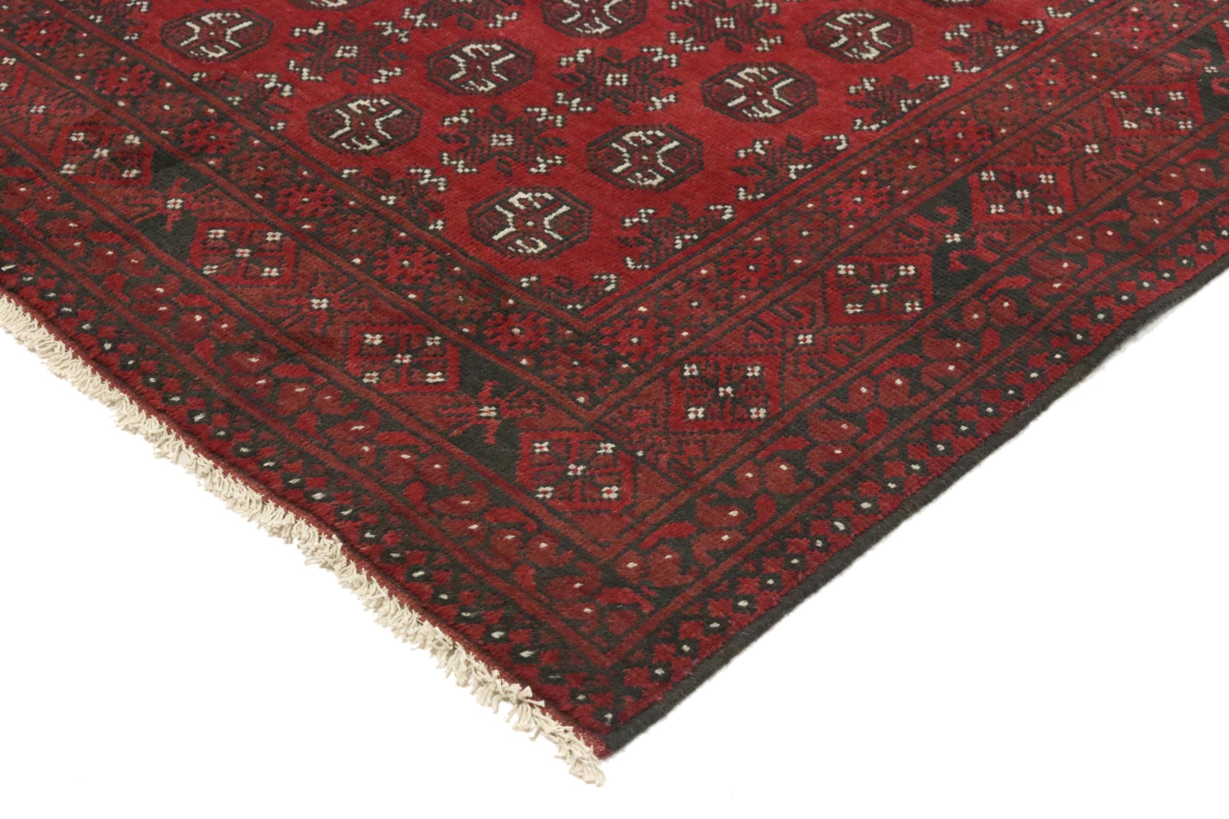 Este tapete afegão Akhche está diante de si como um sonho vermelho. Fica melhor em divisões simples. A sua qualidade convencerá qualquer amante de tapetes orientais. Atado à mão do Afeganistão.