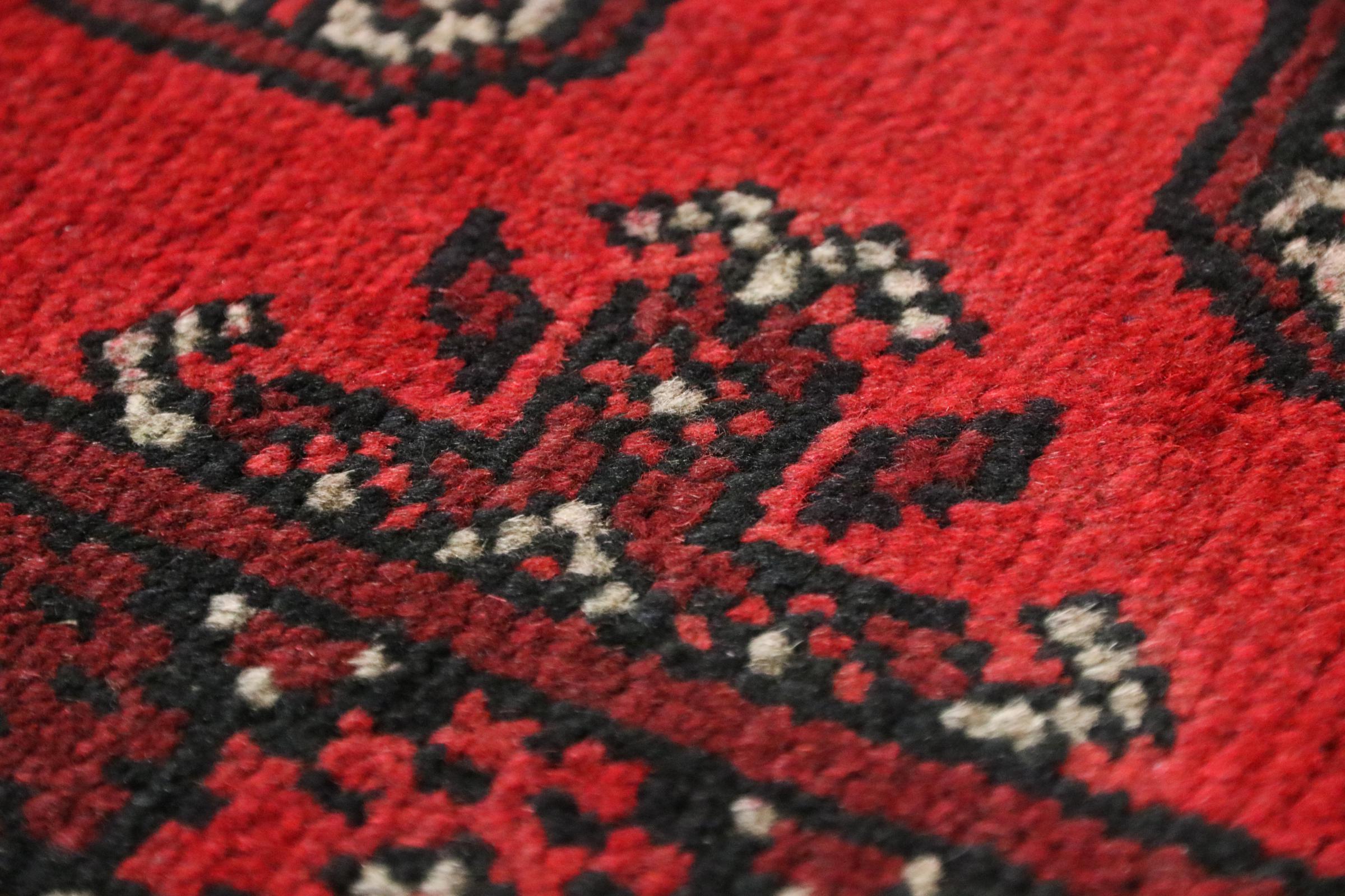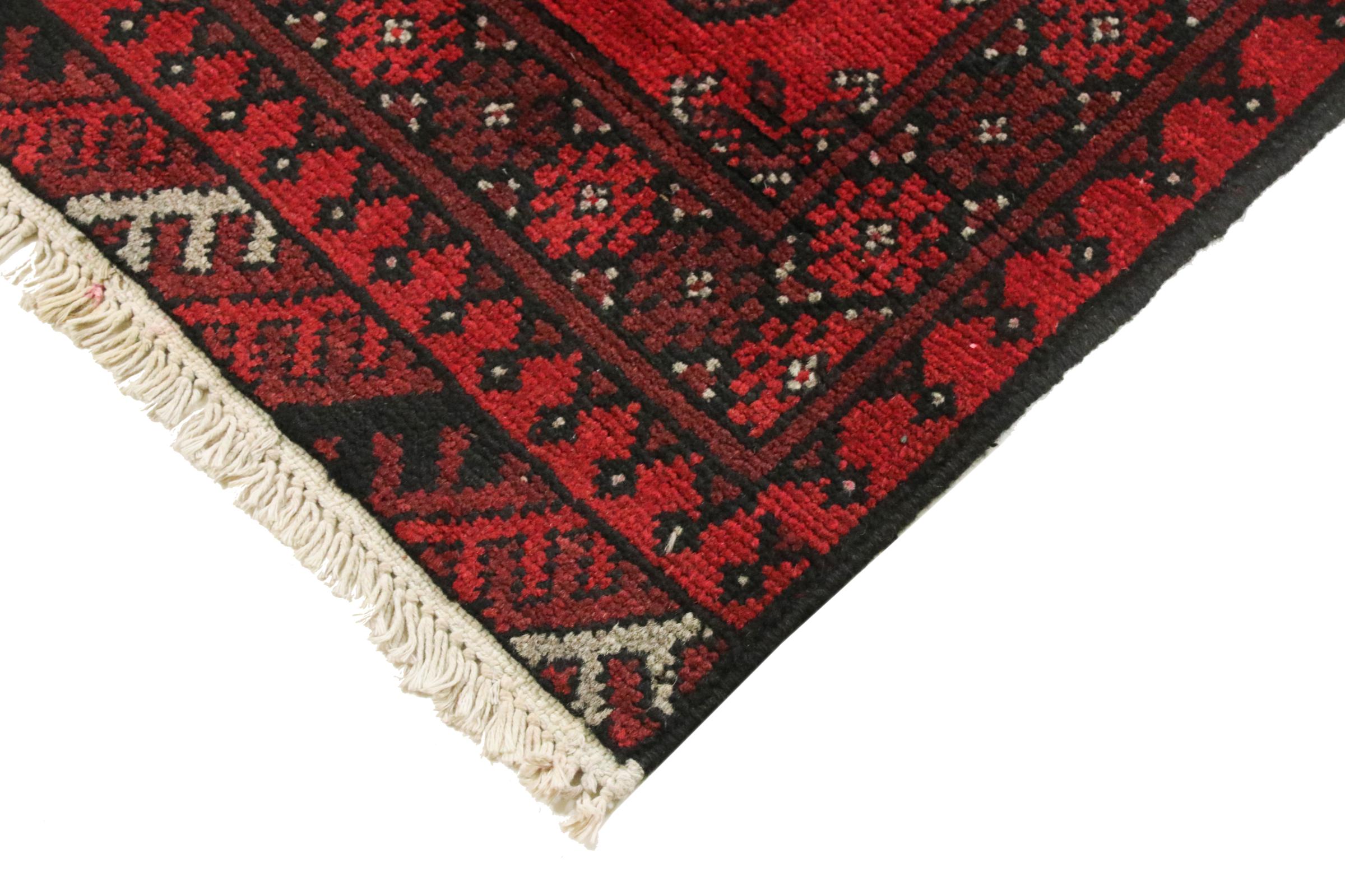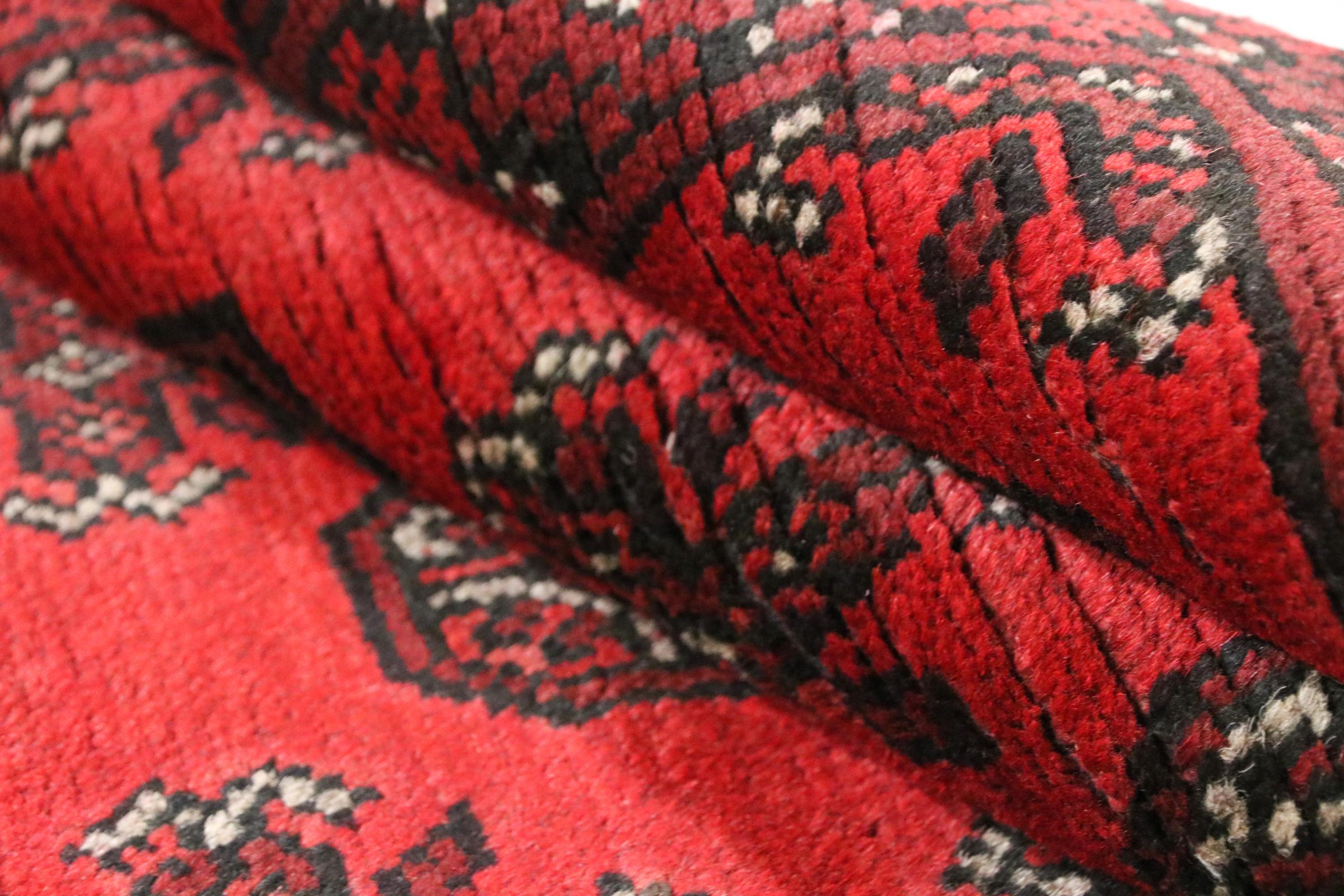 Este tapete afegão Akhche está diante de si como um sonho vermelho. Fica melhor em divisões simples. A sua qualidade convencerá qualquer amante de tapetes orientais. Atado à mão do Afeganistão.