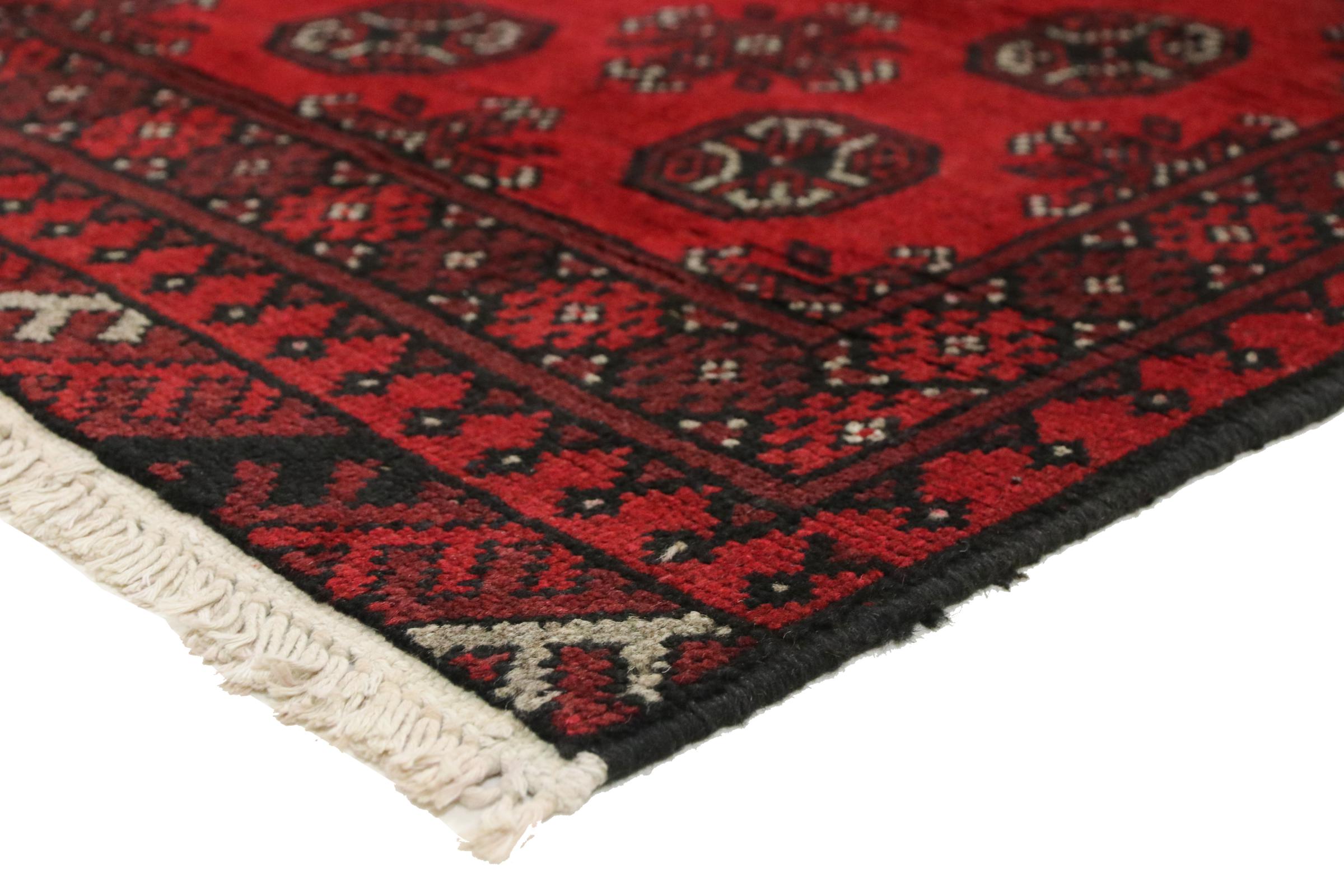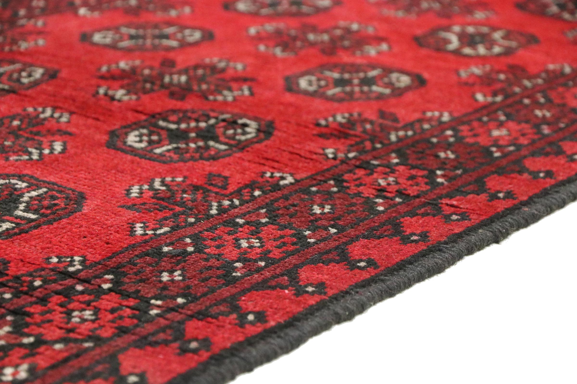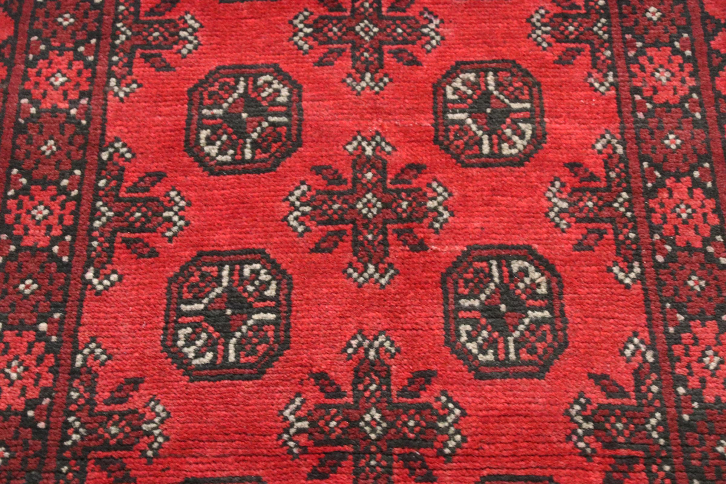 Este tapete afegão Akhche está diante de si como um sonho vermelho. Fica melhor em divisões simples. A sua qualidade convencerá qualquer amante de tapetes orientais. Atado à mão do Afeganistão.
