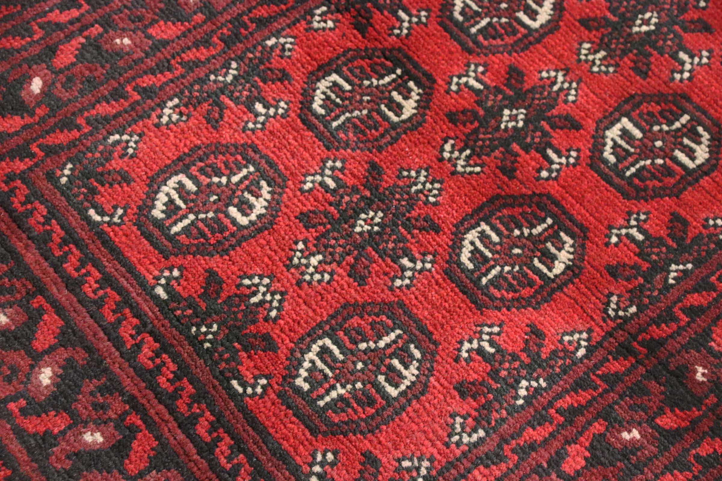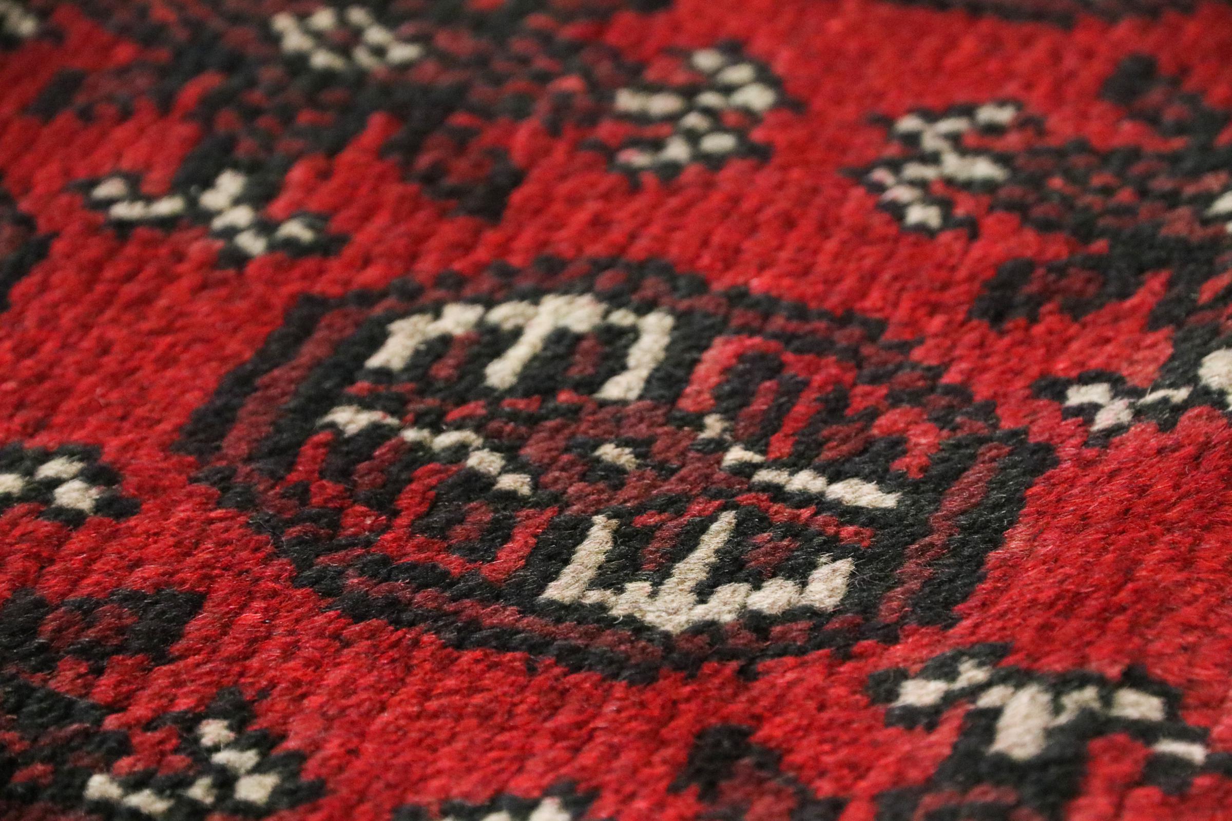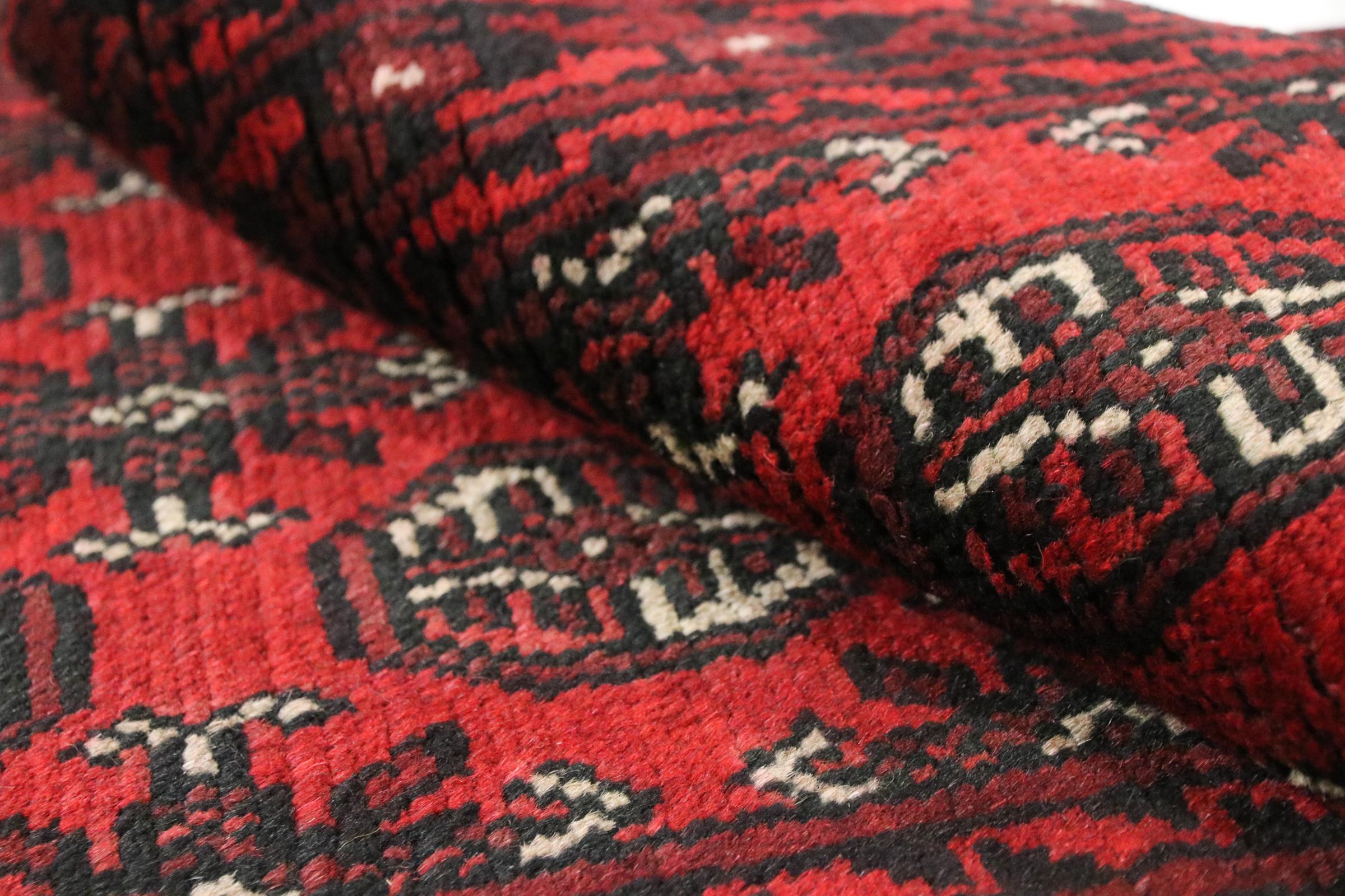 Este tapete afegão Akhche está diante de si como um sonho vermelho. Fica melhor em divisões simples. A sua qualidade convencerá qualquer amante de tapetes orientais. Atado à mão do Afeganistão.
