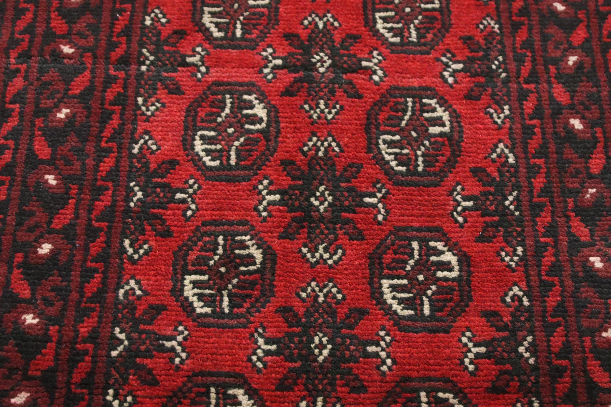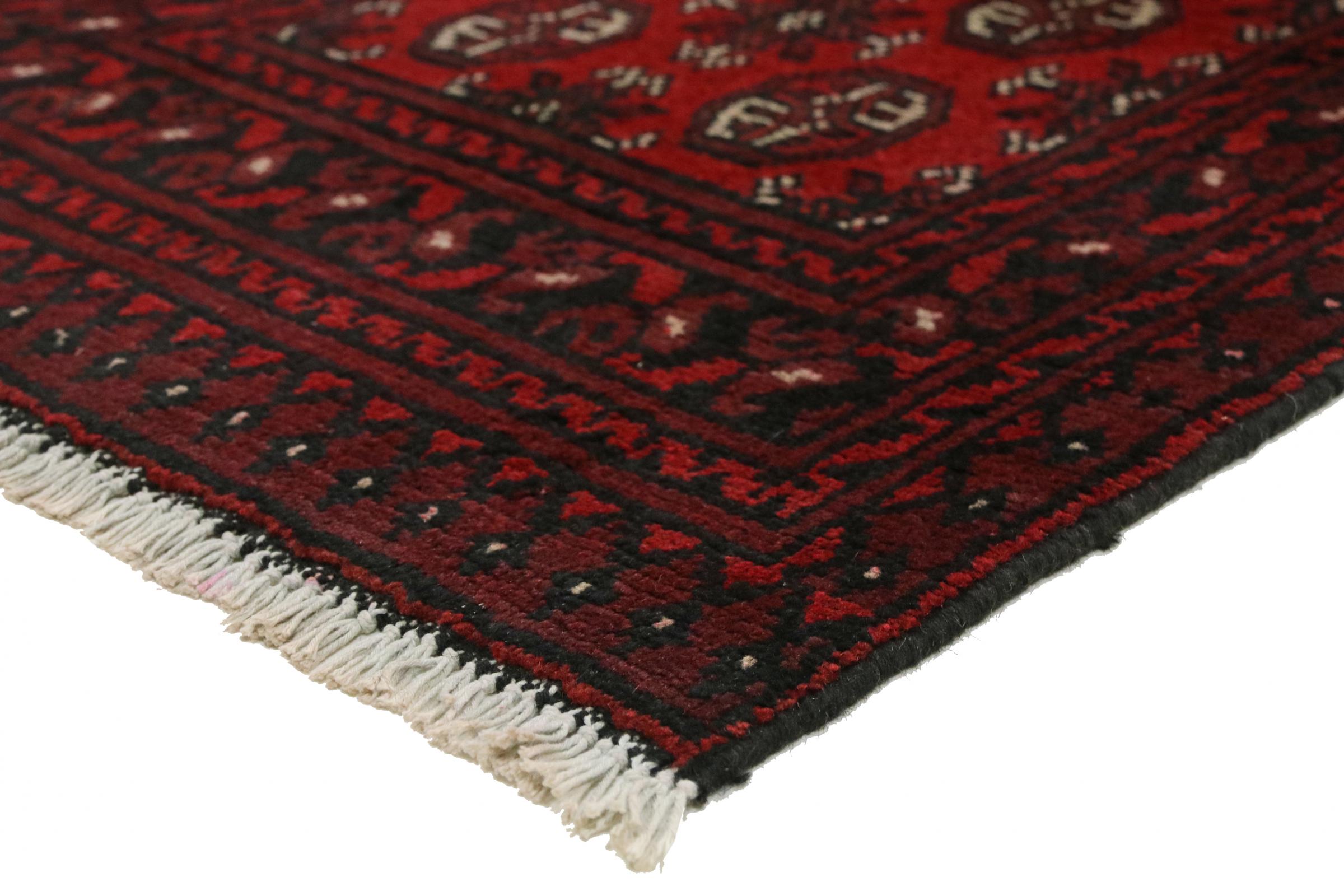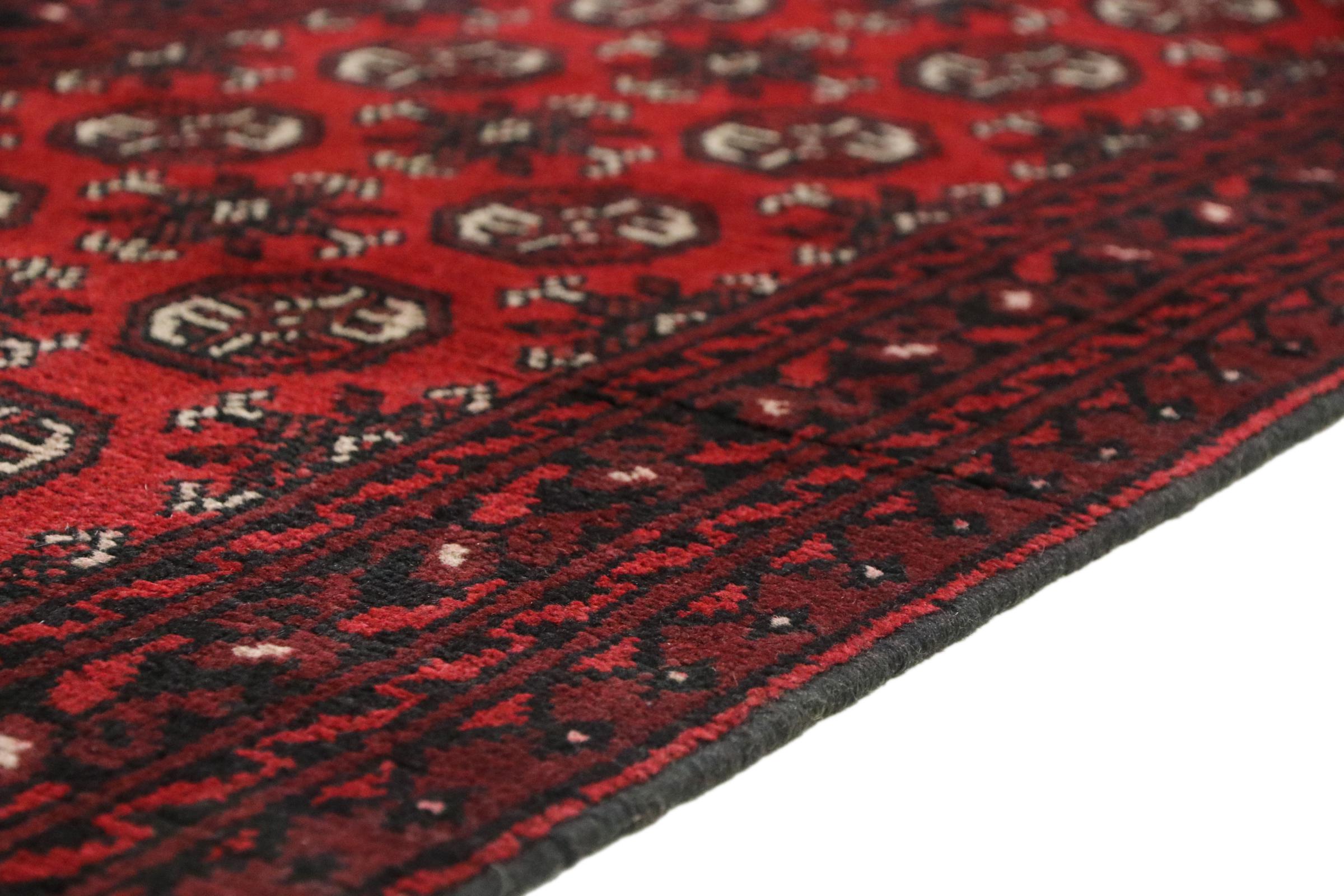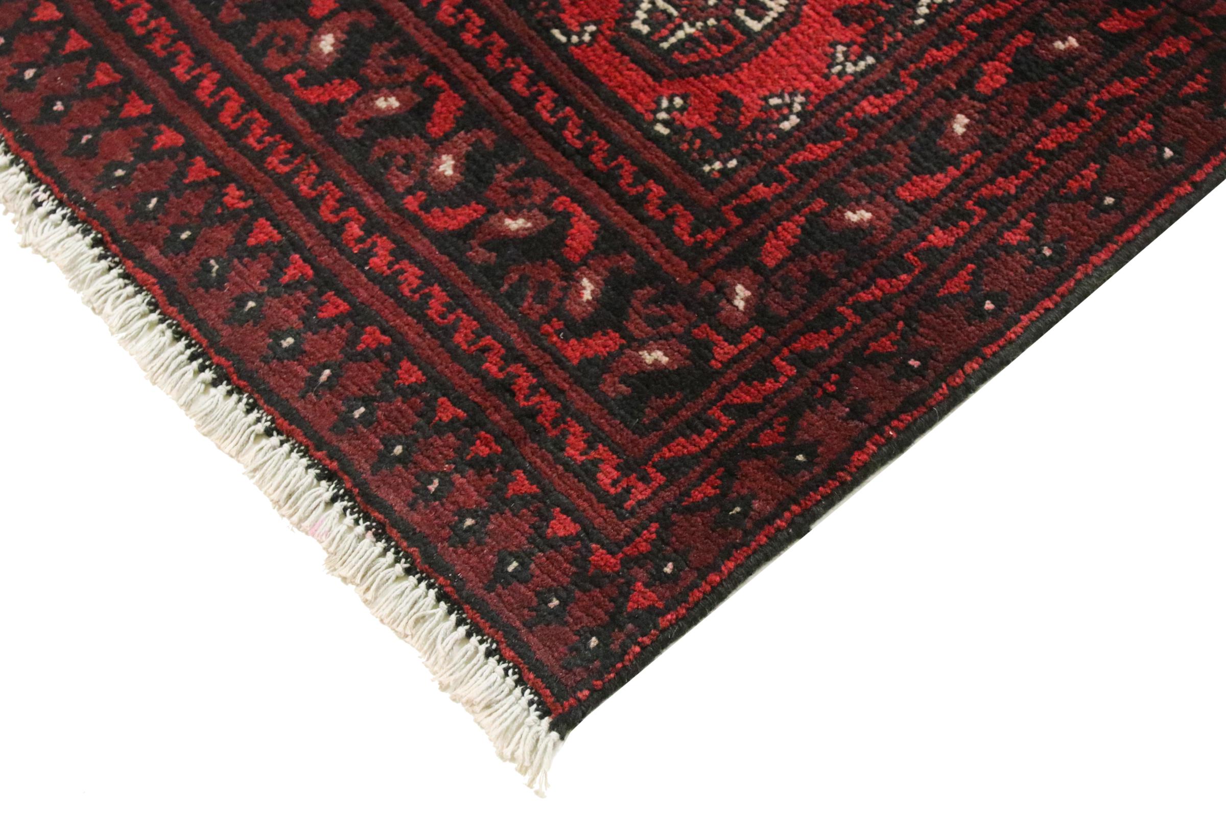 Este tapete afegão Akhche está diante de si como um sonho vermelho. Fica melhor em divisões simples. A sua qualidade convencerá qualquer amante de tapetes orientais. Atado à mão do Afeganistão.