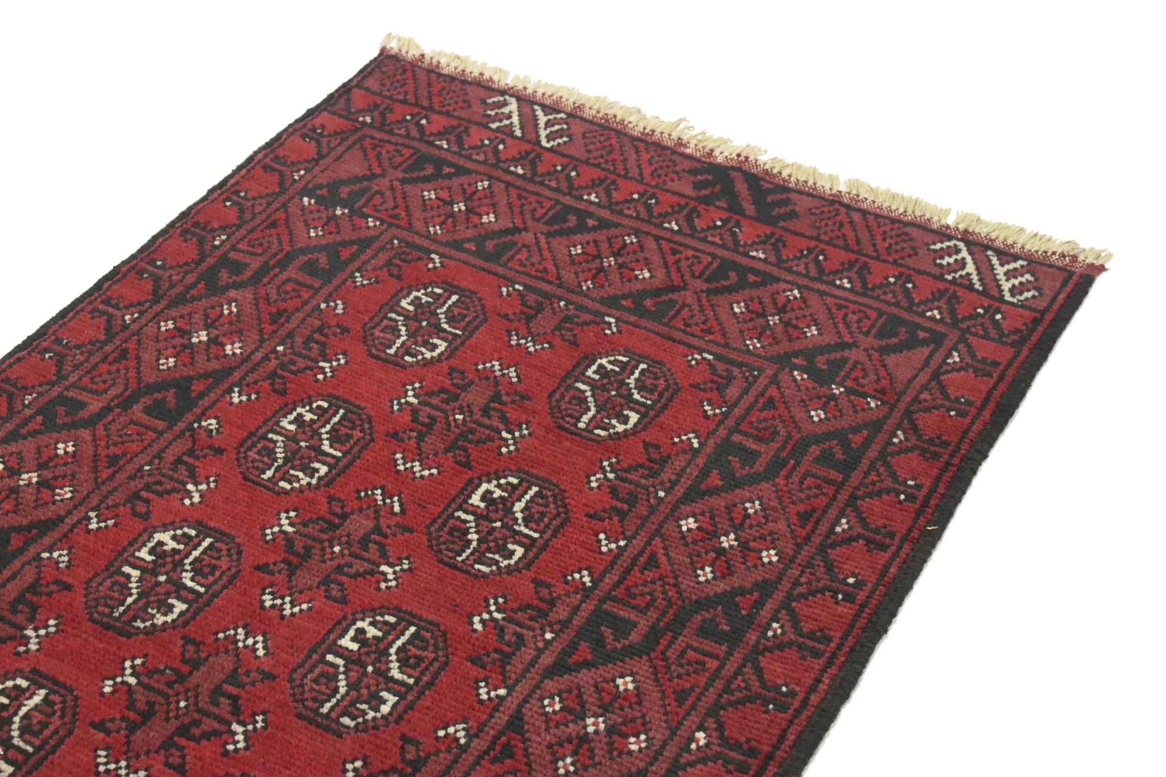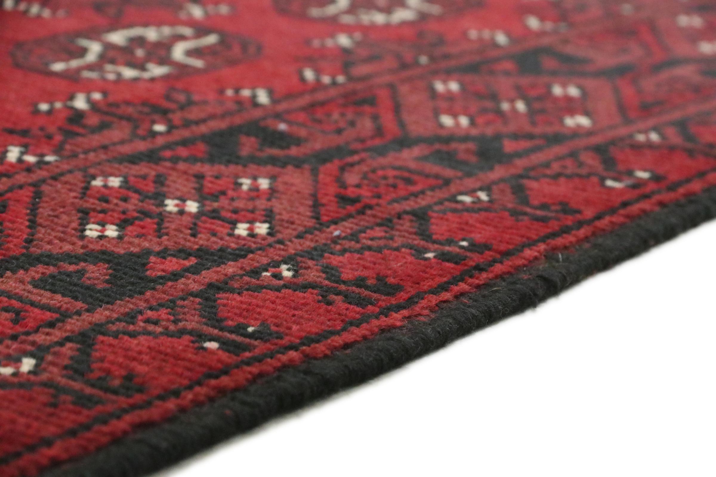 Este tapete afegão Akhche está diante de si como um sonho vermelho. Fica melhor em divisões simples. A sua qualidade convencerá qualquer amante de tapetes orientais. Atado à mão do Afeganistão.