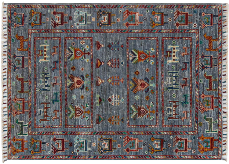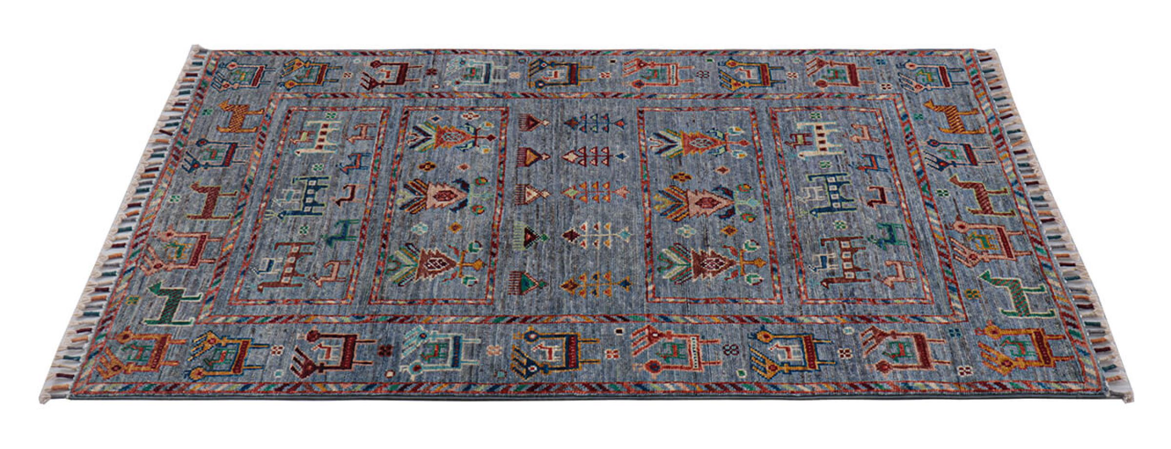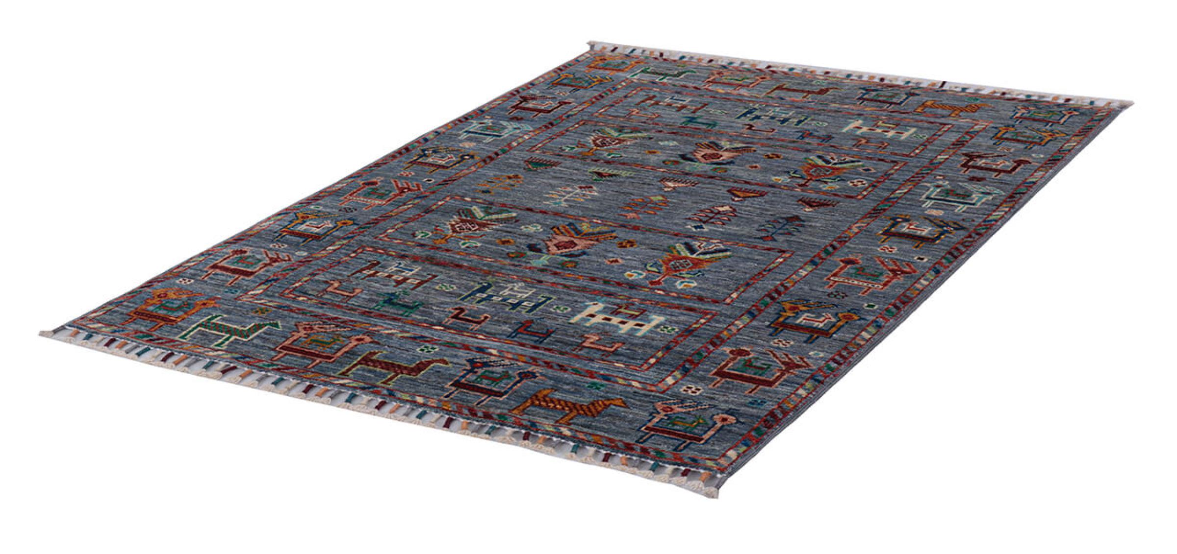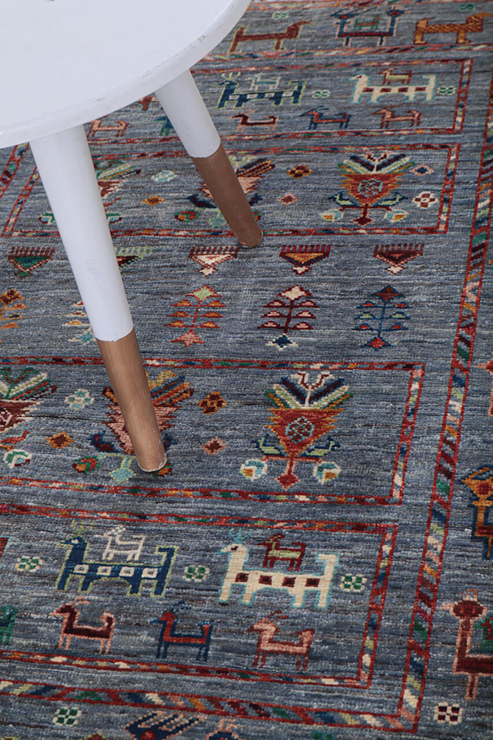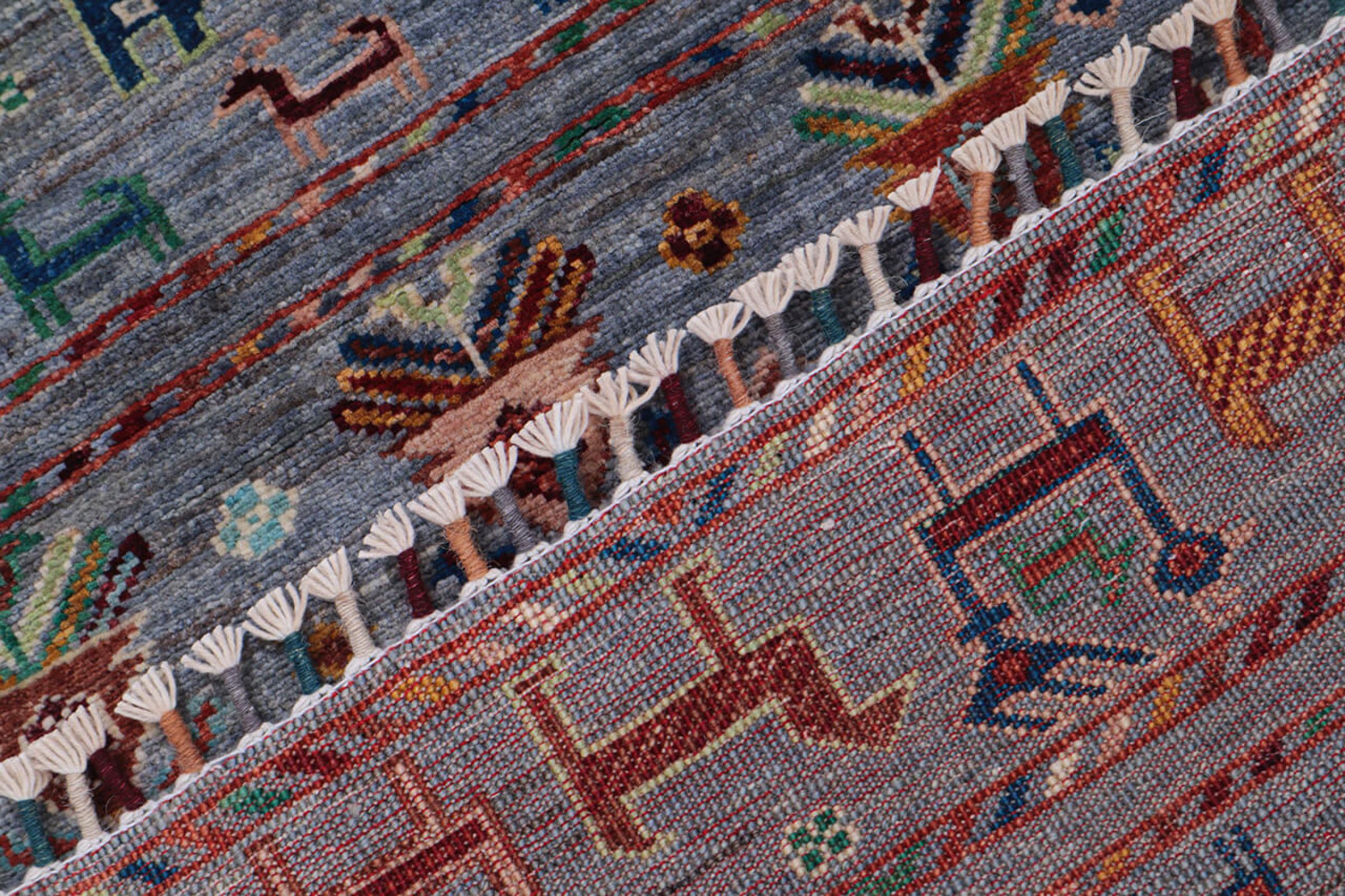 Este tapete é feito de lã de ovelha fiada à mão, da mais alta qualidade. Especialmente no Irão (antiga Pérsia), Afeganistão e Paquistão, a lã ainda é fiada à mão antes do início do nó do tapete. A lã tem provado ser um material natural e extremamente resistente ao longo dos séculos. Entre outras coisas, tem propriedades repelentes de impurezas e isolantes térmicos. Ao mesmo tempo, a lã é incomparavelmente macia e tem um brilho natural.