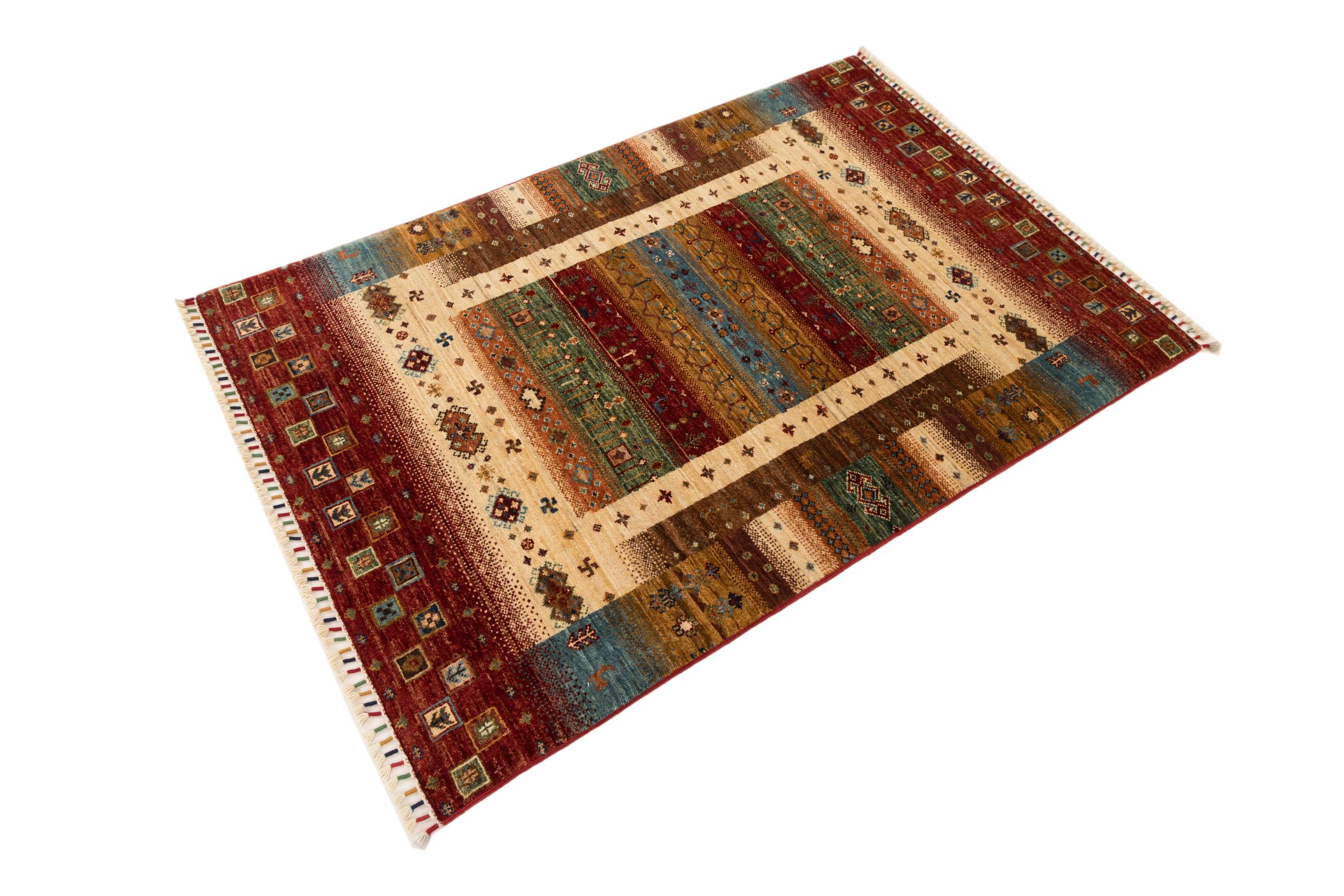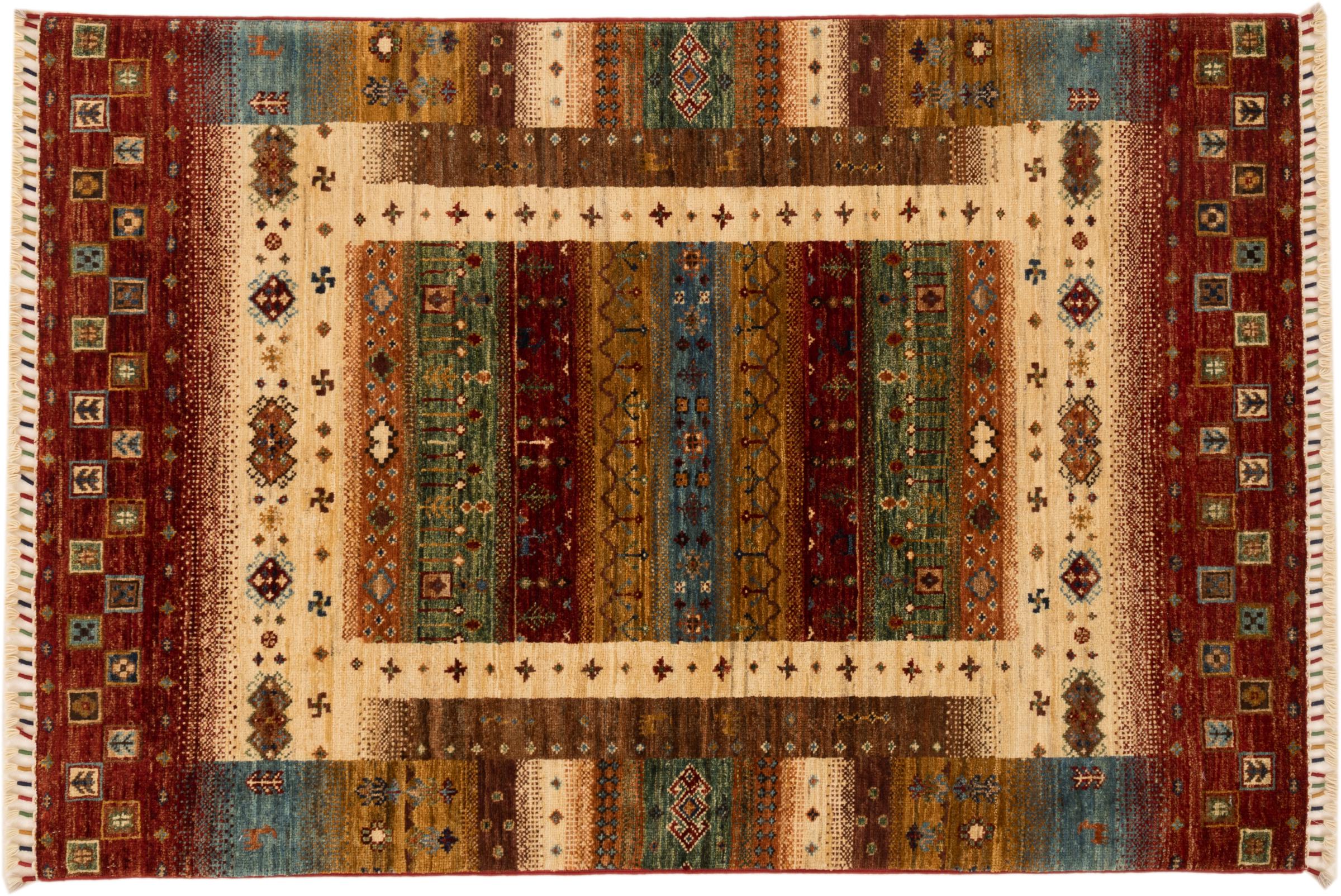 Nº do Tapete: 280266009610817 Tamanho: 158x105 cm Espessura: aproximadamente 5 mm Nós: 128 000 - 160 000 / m² Processamento: Atado à mão Veludo: Lã tecida à mão Urdidura: Algodão Origem: Afeganistão Idade: Novo Peso: aproximadamente 6 kg Em armazém: Único