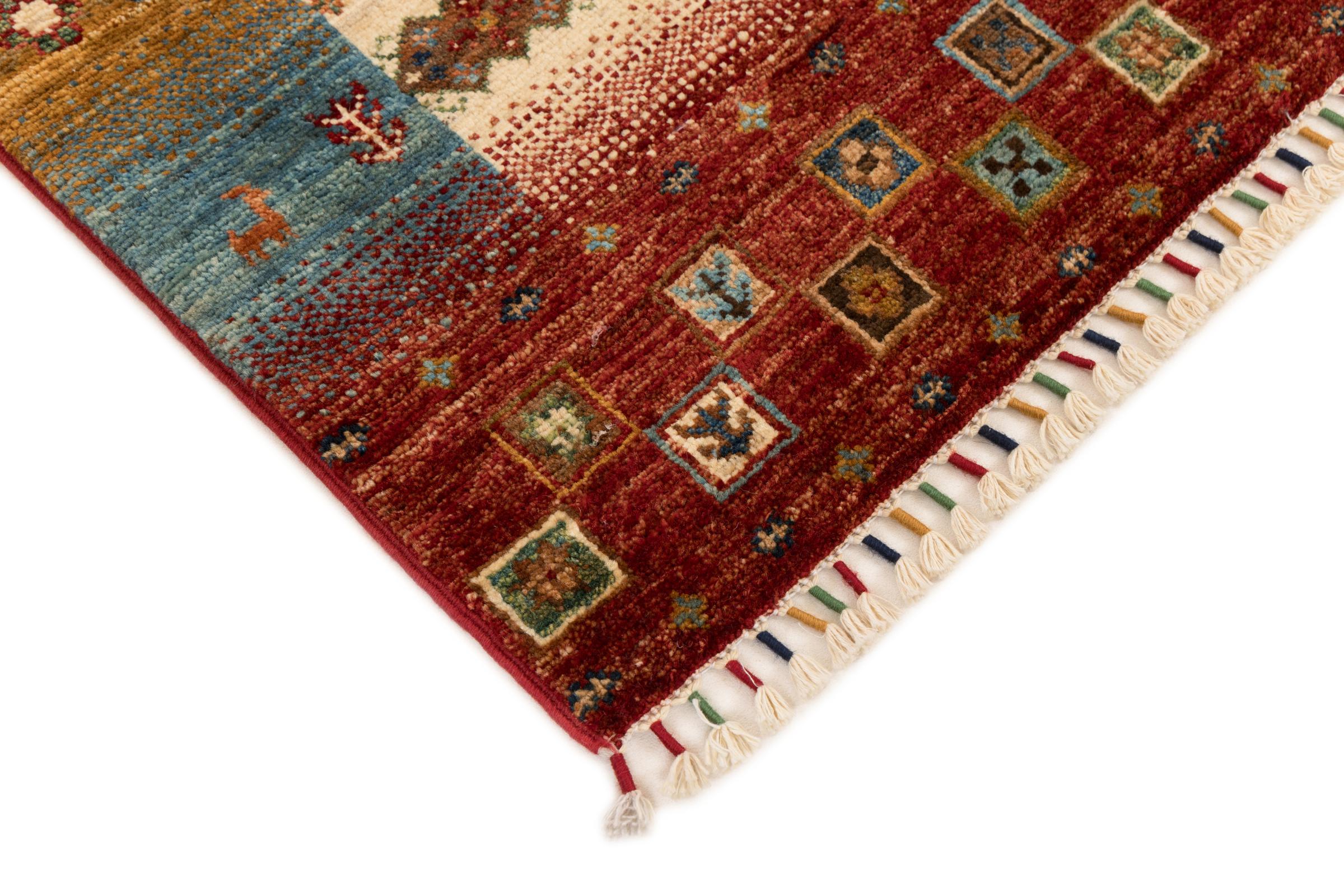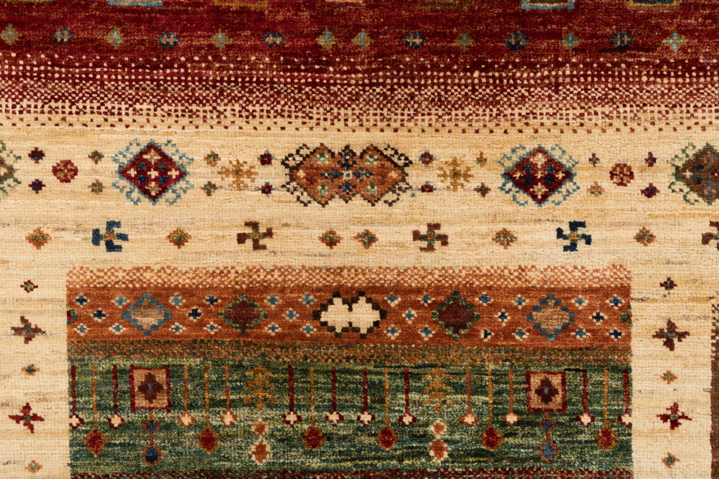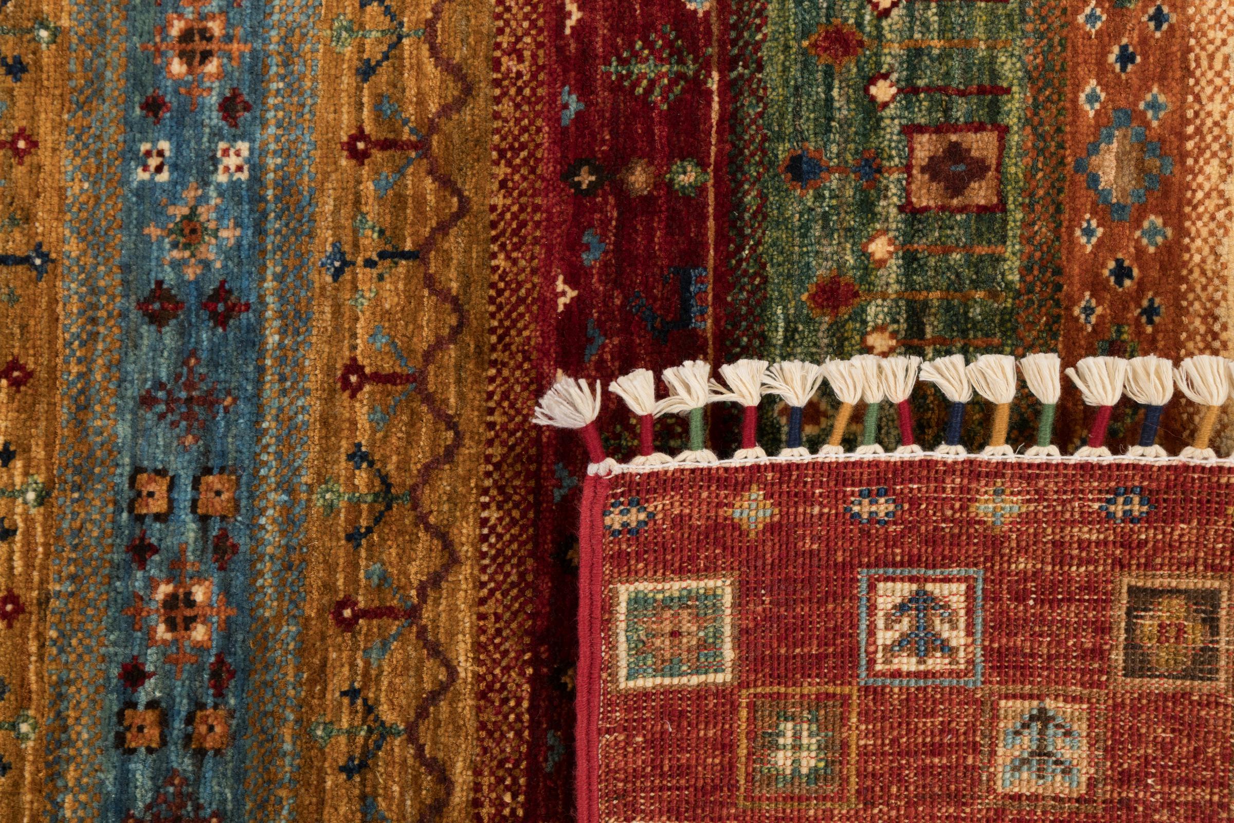 Este tapete oriental vibrante foi atado à mão no Paquistão - numa das culturas de atadura mais abrangentes do mundo. Aqui, o espetro de cores vivas do Oriente ganha vida própria. Um tapete como este faz-nos sentir a alegria de viver em qualquer altura do ano. O tapete de design tem o seu próprio carácter, porque só foi atado à mão uma vez durante um período de meses.