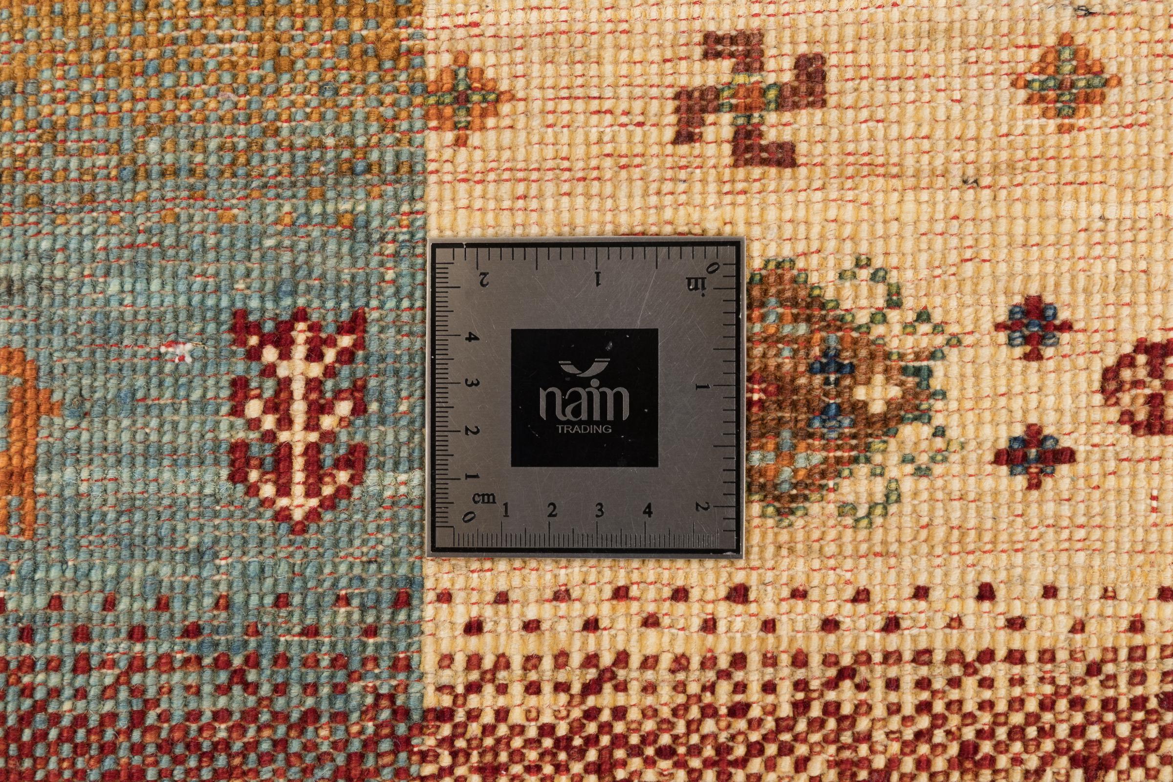 Este tapete é feito de lã de ovelha fiada à mão, da mais alta qualidade. Especialmente no Irão (antiga Pérsia), Afeganistão e Paquistão, a lã ainda é fiada à mão antes do início do nó do tapete. A lã tem provado ser um material natural e extremamente resistente ao longo dos séculos. Entre outras coisas, tem propriedades repelentes de impurezas e isolantes térmicos. Ao mesmo tempo, a lã é incomparavelmente macia e tem um brilho natural.