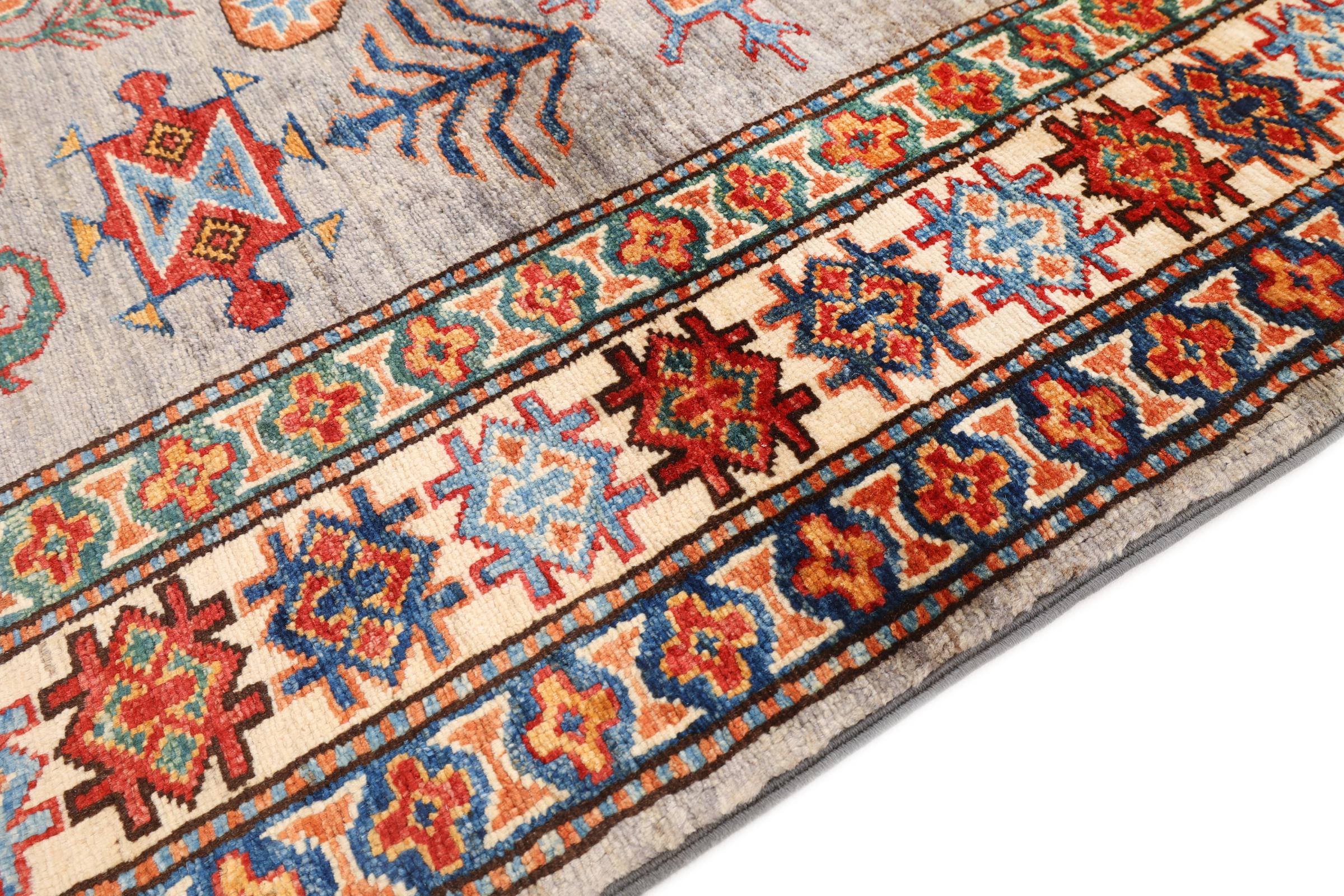 Este tapete oriental vibrante foi atado à mão no Paquistão - numa das culturas de atadura mais abrangentes do mundo. Aqui, o espetro de cores vivas do Oriente ganha vida própria. Um tapete como este faz-nos sentir a alegria de viver em qualquer altura do ano. O tapete de design tem o seu próprio carácter, porque só foi atado à mão uma vez durante um período de meses.