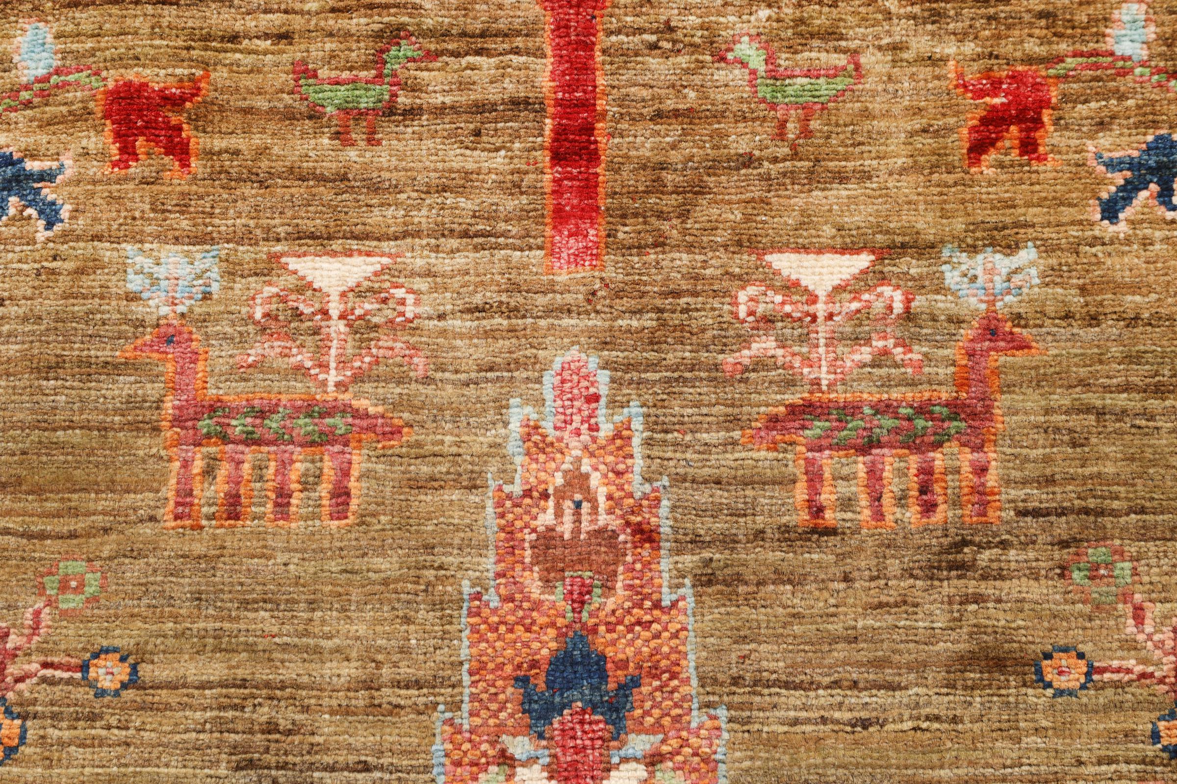 Este tapete é feito de lã de ovelha fiada à mão, da mais alta qualidade. Especialmente no Irão (antiga Pérsia), Afeganistão e Paquistão, a lã ainda é fiada à mão antes do início do nó do tapete. A lã tem provado ser um material natural e extremamente resistente ao longo dos séculos. Entre outras coisas, tem propriedades repelentes de impurezas e isolantes térmicos. Ao mesmo tempo, a lã é incomparavelmente macia e tem um brilho natural.