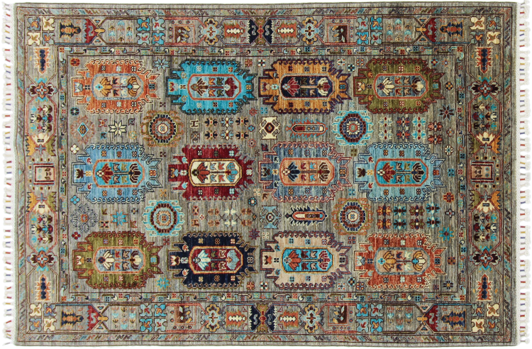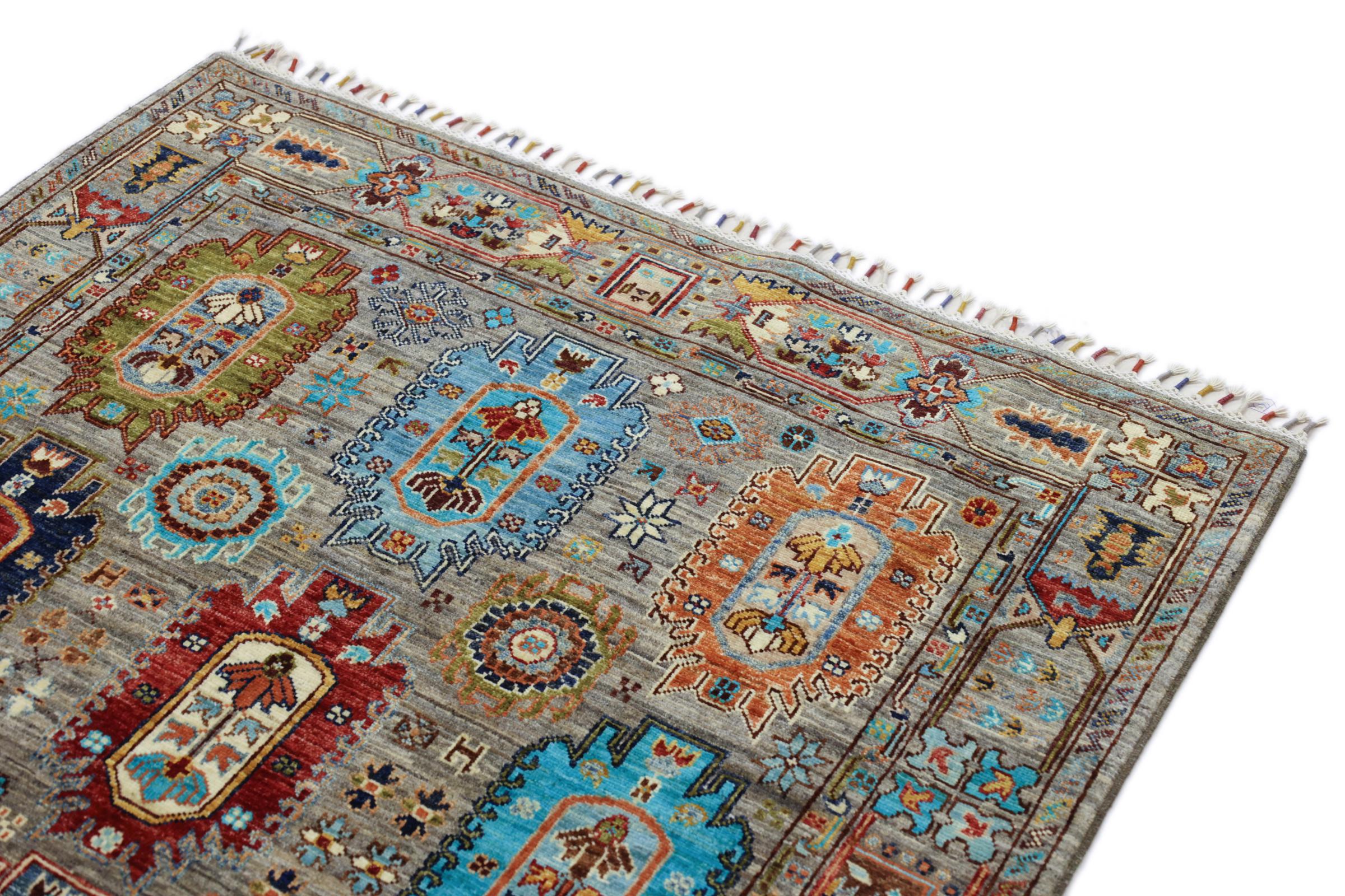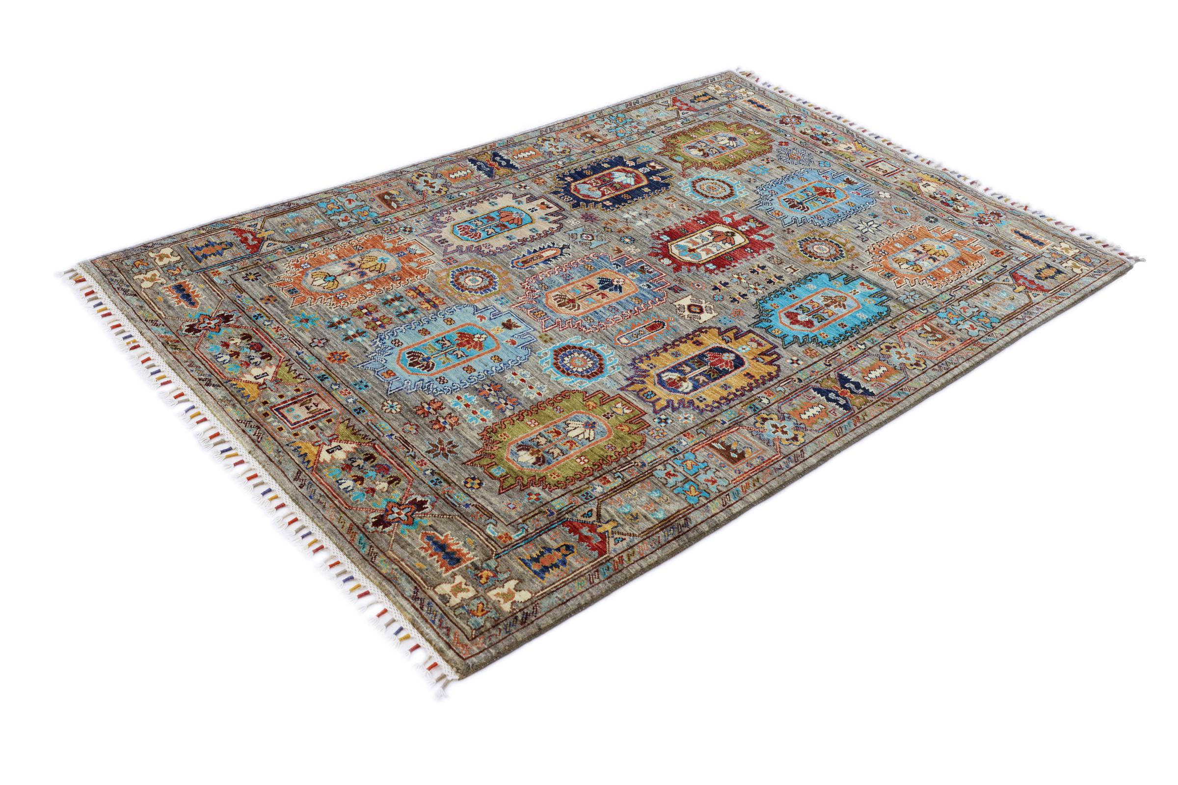Este tapete oriental vibrante foi atado à mão no Paquistão - numa das culturas de atadura mais abrangentes do mundo. Aqui, o espetro de cores vivas do Oriente ganha vida própria. Um tapete como este faz-nos sentir a alegria de viver em qualquer altura do ano. O tapete de design tem o seu próprio carácter, porque só foi atado à mão uma vez durante um período de meses.