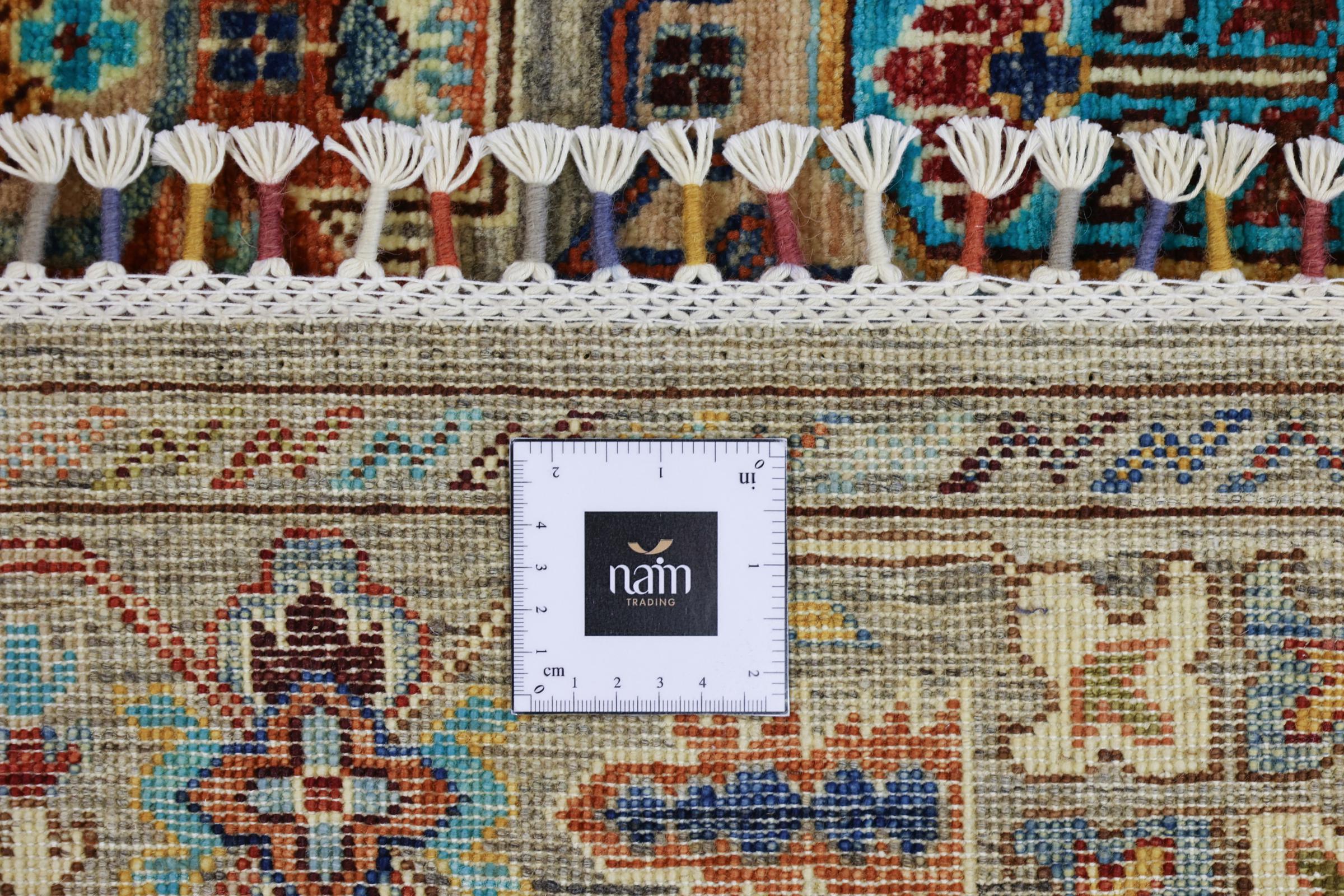 Este tapete é feito de lã de ovelha fiada à mão, da mais alta qualidade. Especialmente no Irão (antiga Pérsia), Afeganistão e Paquistão, a lã ainda é fiada à mão antes do início do nó do tapete. A lã tem provado ser um material natural e extremamente resistente ao longo dos séculos. Entre outras coisas, tem propriedades repelentes de impurezas e isolantes térmicos. Ao mesmo tempo, a lã é incomparavelmente macia e tem um brilho natural.