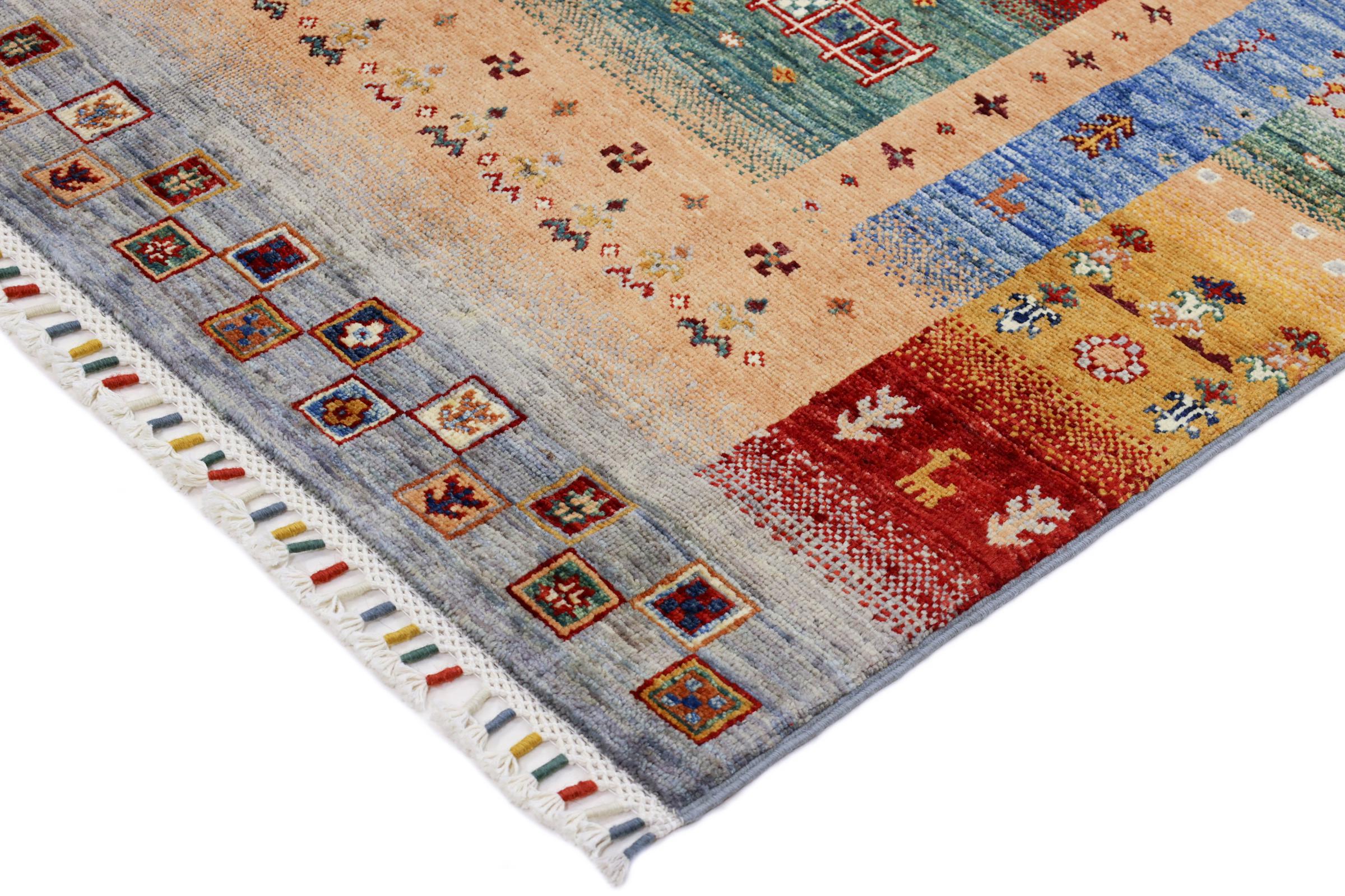 Este tapete oriental vibrante foi atado à mão no Paquistão - numa das culturas de atadura mais abrangentes do mundo. Aqui, o espetro de cores vivas do Oriente ganha vida própria. Um tapete como este faz-nos sentir a alegria de viver em qualquer altura do ano. O tapete de design tem o seu próprio carácter, porque só foi atado à mão uma vez durante um período de meses.
