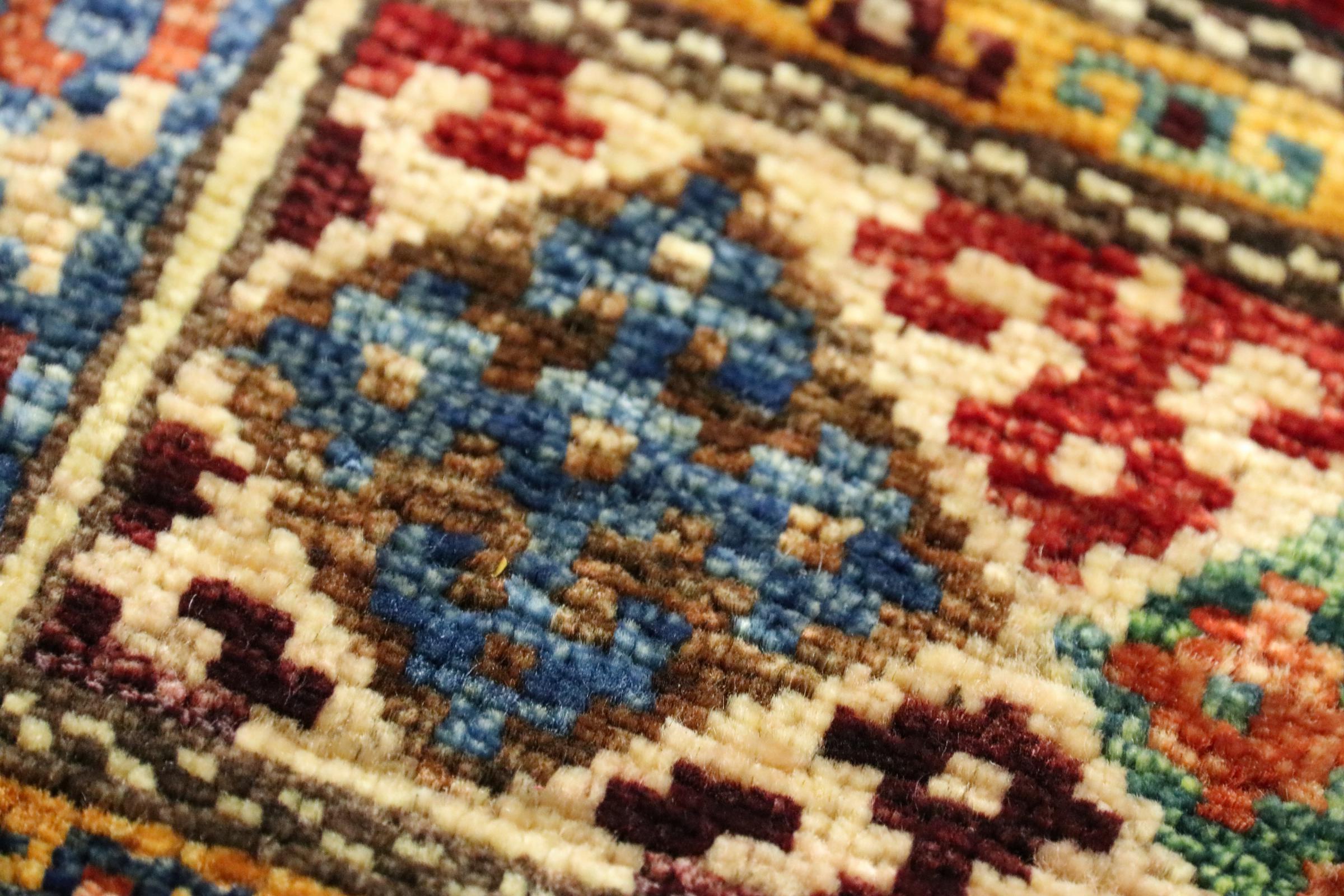 Este tapete oriental vibrante foi atado à mão no Paquistão - numa das culturas de atadura mais abrangentes do mundo. Aqui, o espetro de cores vivas do Oriente ganha vida própria. Um tapete como este faz-nos sentir a alegria de viver em qualquer altura do ano. O tapete de design tem o seu próprio carácter, porque só foi atado à mão uma vez durante um período de meses.