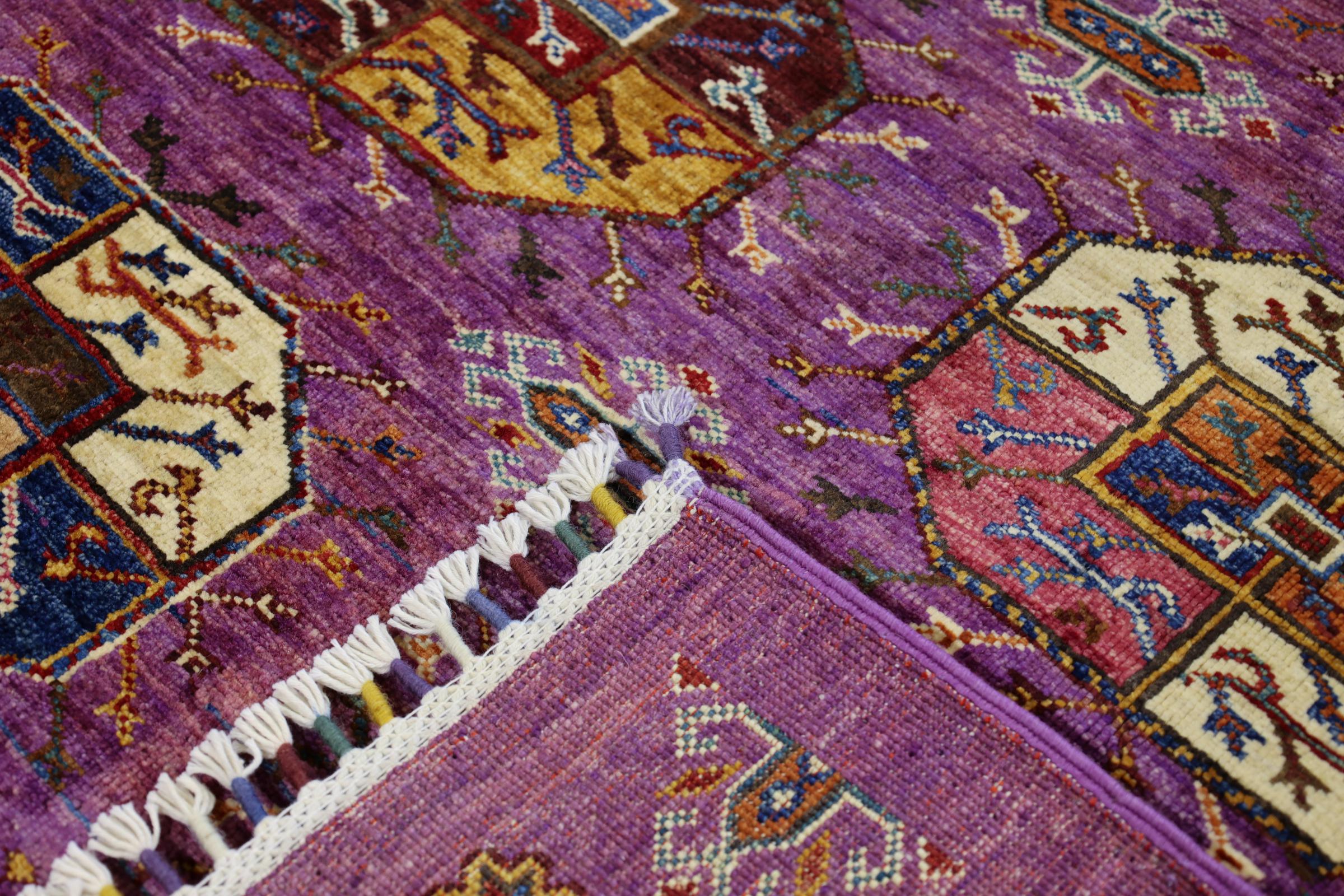 Este tapete oriental vibrante foi atado à mão no Paquistão - numa das culturas de atadura mais abrangentes do mundo. Aqui, o espetro de cores vivas do Oriente ganha vida própria. Um tapete como este faz-nos sentir a alegria de viver em qualquer altura do ano. O tapete de design tem o seu próprio carácter, porque só foi atado à mão uma vez durante um período de meses.
