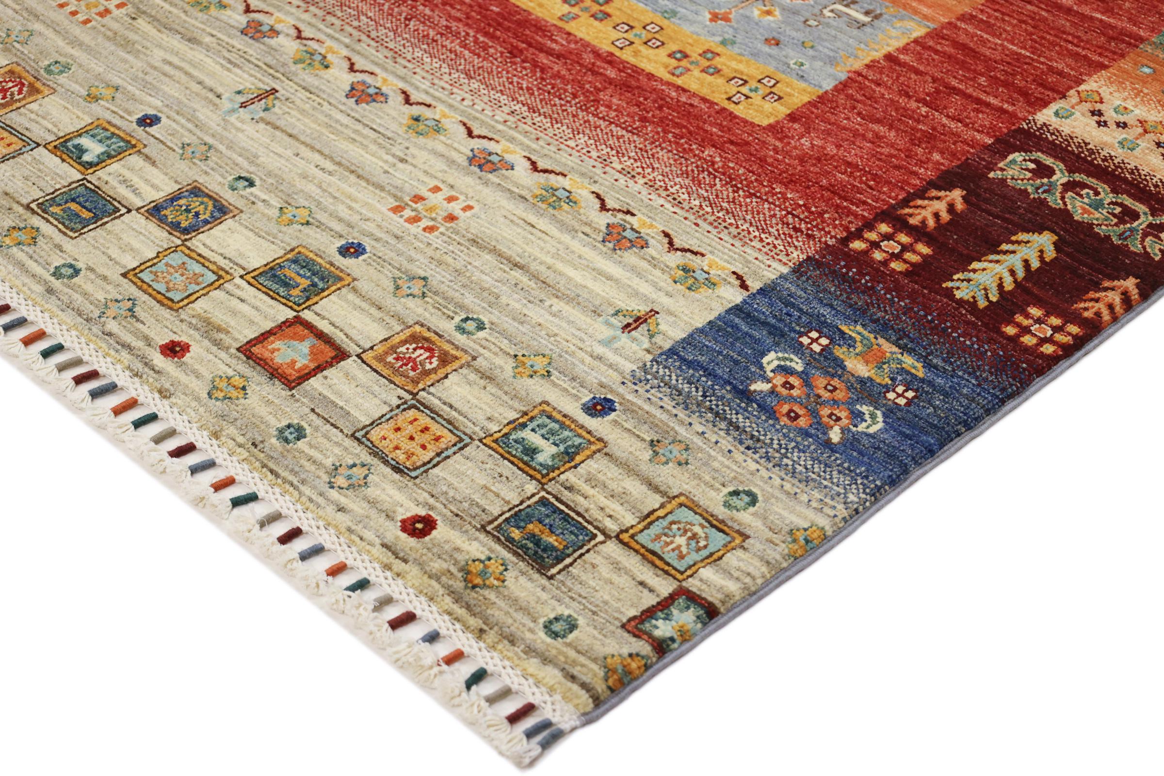 Este tapete oriental vibrante foi atado à mão no Paquistão - numa das culturas de atadura mais abrangentes do mundo. Aqui, o espetro de cores vivas do Oriente ganha vida própria. Um tapete como este faz-nos sentir a alegria de viver em qualquer altura do ano. O tapete de design tem o seu próprio carácter, porque só foi atado à mão uma vez durante um período de meses.