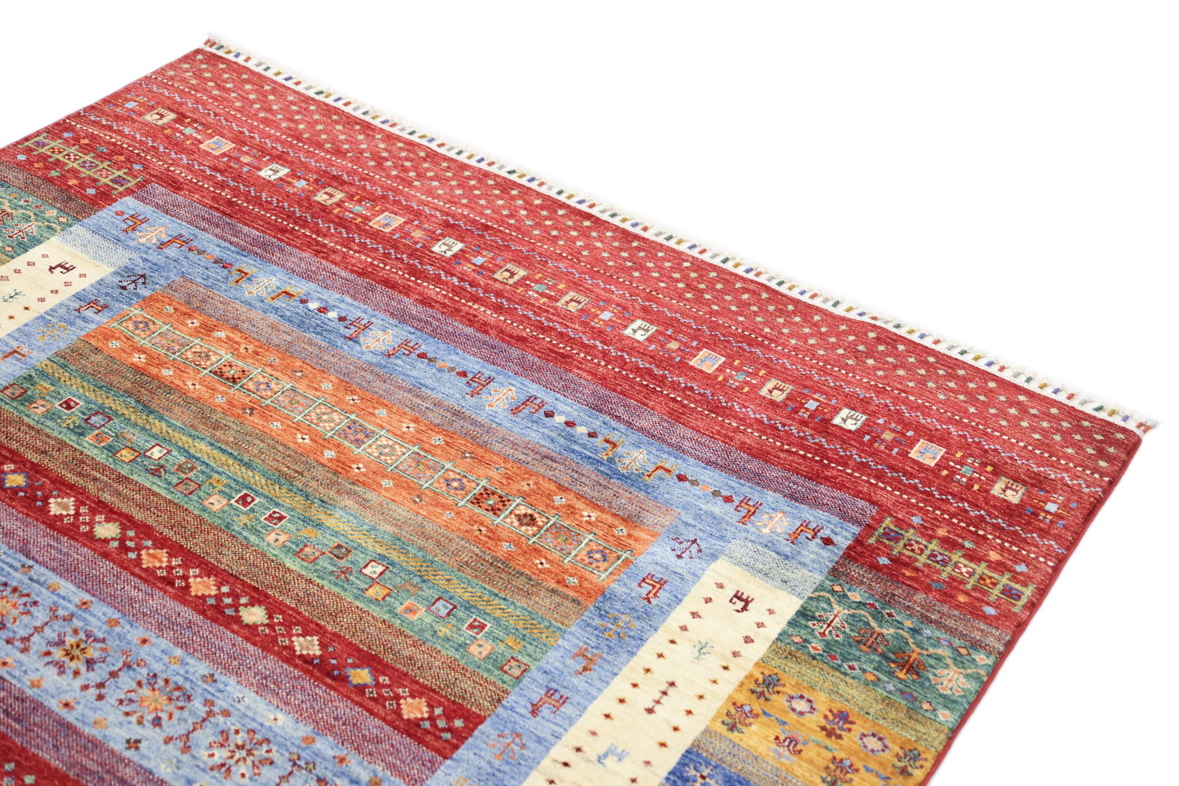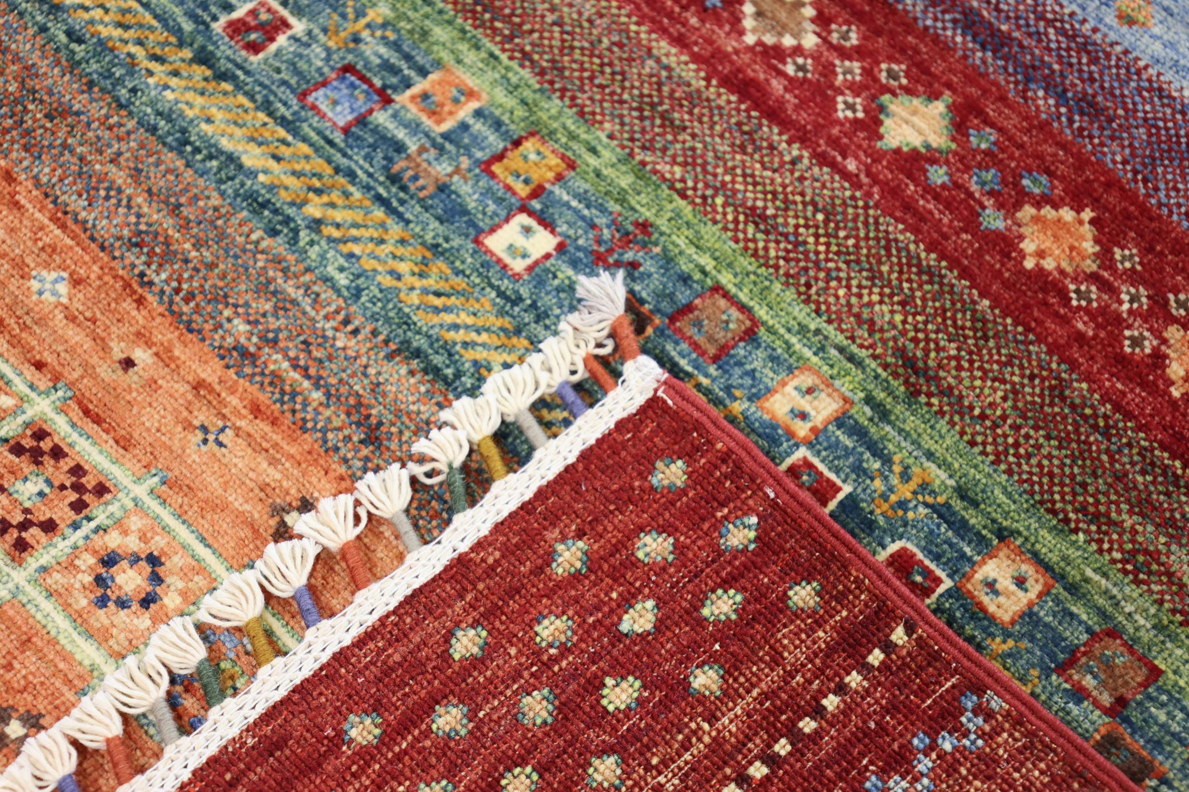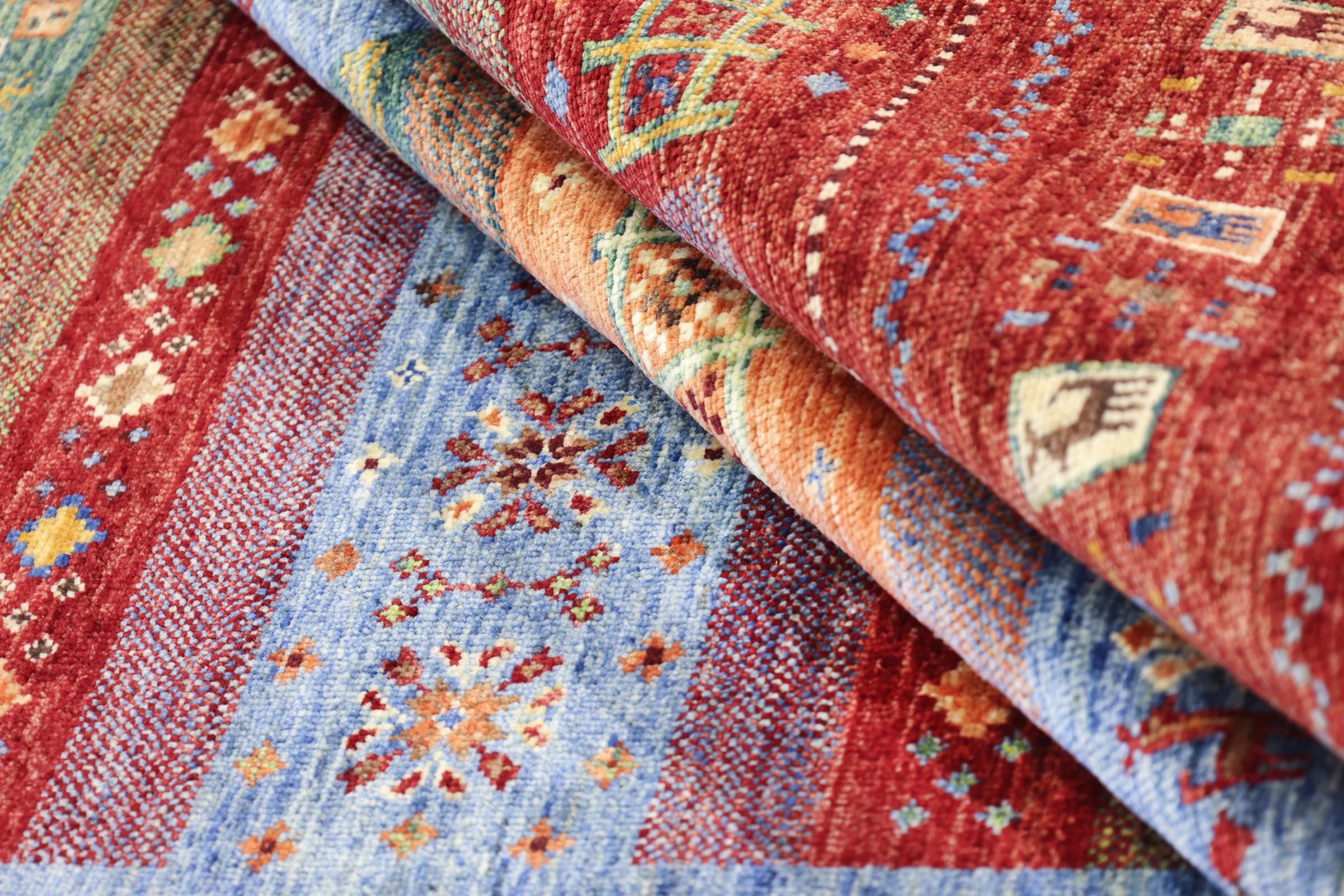 Este tapete oriental vibrante foi atado à mão no Paquistão - numa das culturas de atadura mais abrangentes do mundo. Aqui, o espetro de cores vivas do Oriente ganha vida própria. Um tapete como este faz-nos sentir a alegria de viver em qualquer altura do ano. O tapete de design tem o seu próprio carácter, porque só foi atado à mão uma vez durante um período de meses.
