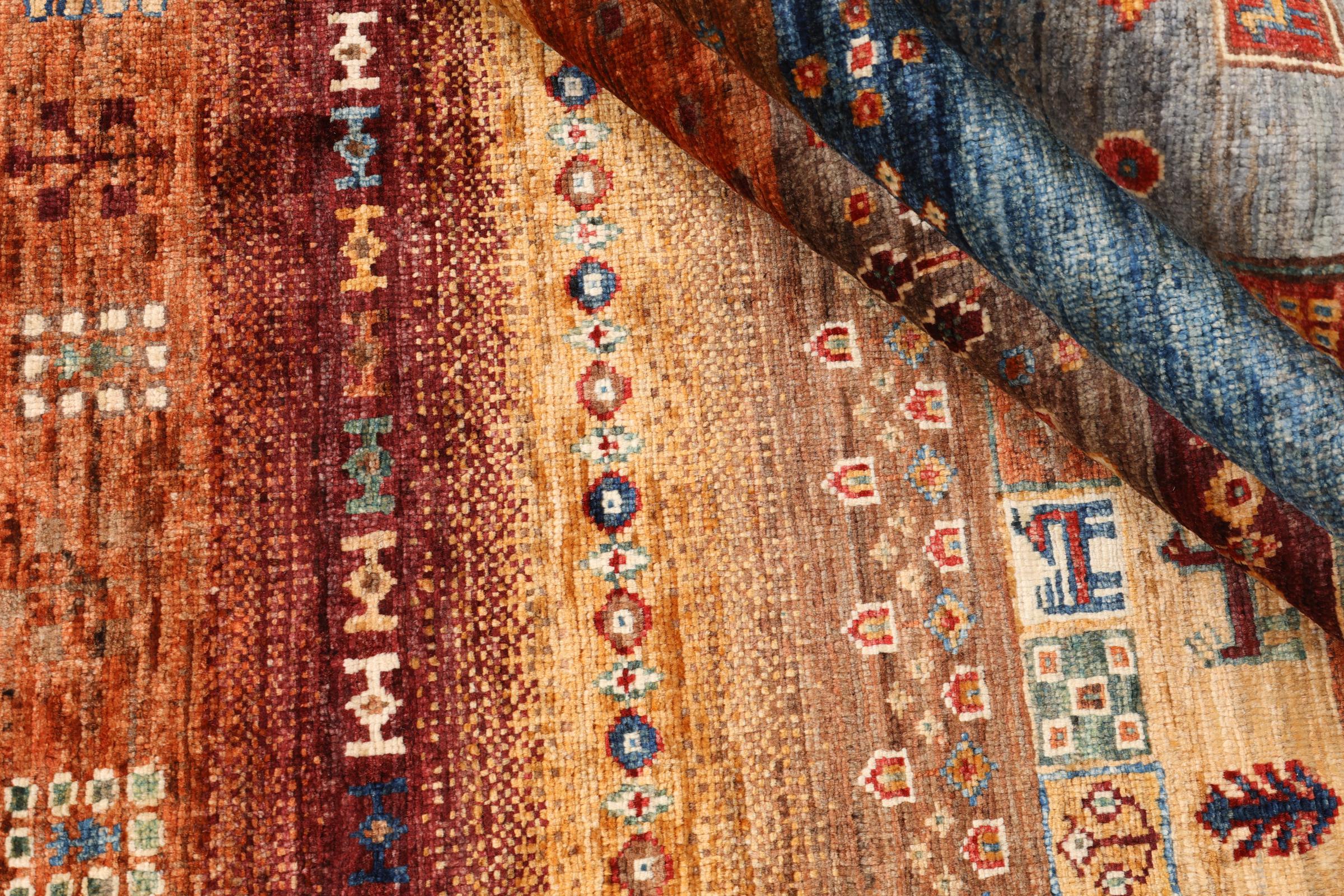 Este tapete é feito de lã de ovelha fiada à mão, da mais alta qualidade. Especialmente no Irão (antiga Pérsia), Afeganistão e Paquistão, a lã ainda é fiada à mão antes do início do nó do tapete. A lã tem provado ser um material natural e extremamente resistente ao longo dos séculos. Entre outras coisas, tem propriedades repelentes de impurezas e isolantes térmicos. Ao mesmo tempo, a lã é incomparavelmente macia e tem um brilho natural.