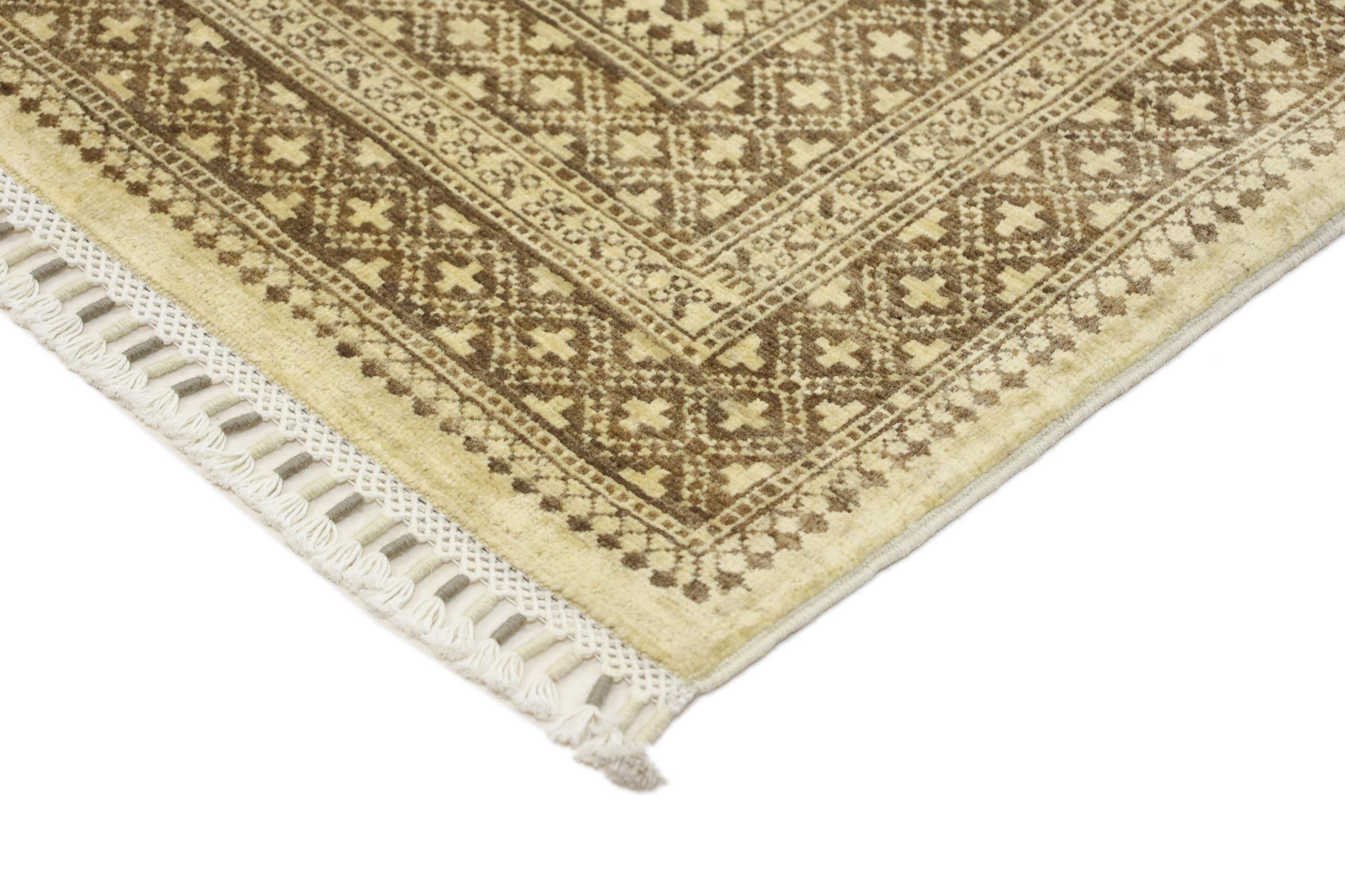 Os tapetes de design moderno combinam o tradicional nó à mão com um design moderno. O design continua orientado para os ornamentos típicos do Oriente, mas estes são apresentados de uma forma cada vez mais simples. Isto resulta em tapetes com nós manuais de excelente qualidade e num estilo intemporal e moderno.