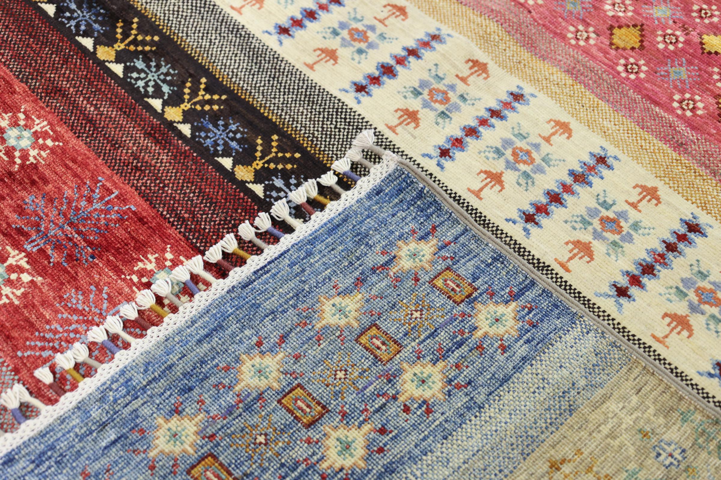 Este tapete oriental vibrante foi atado à mão no Paquistão - numa das culturas de atadura mais abrangentes do mundo. Aqui, o espetro de cores vivas do Oriente ganha vida própria. Um tapete como este faz-nos sentir a alegria de viver em qualquer altura do ano. O tapete de design tem o seu próprio carácter, porque só foi atado à mão uma vez durante um período de meses.