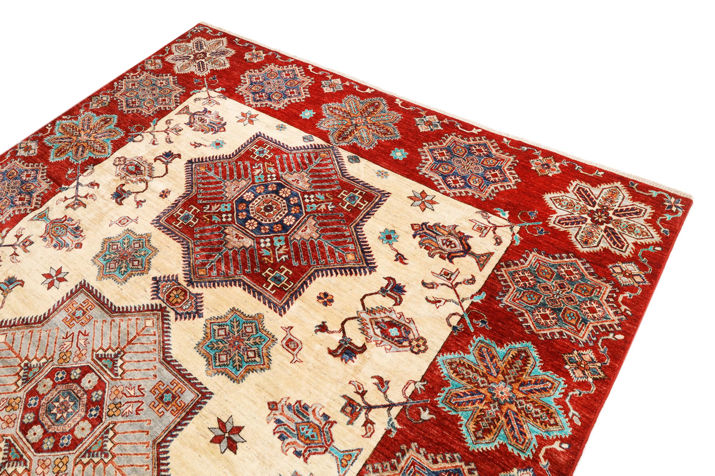 Este tapete oriental vibrante foi atado à mão no Paquistão - numa das culturas de atadura mais abrangentes do mundo. Aqui, o espetro de cores vivas do Oriente ganha vida própria. Um tapete como este faz-nos sentir a alegria de viver em qualquer altura do ano. O tapete de design tem o seu próprio carácter, porque só foi atado à mão uma vez durante um período de meses.