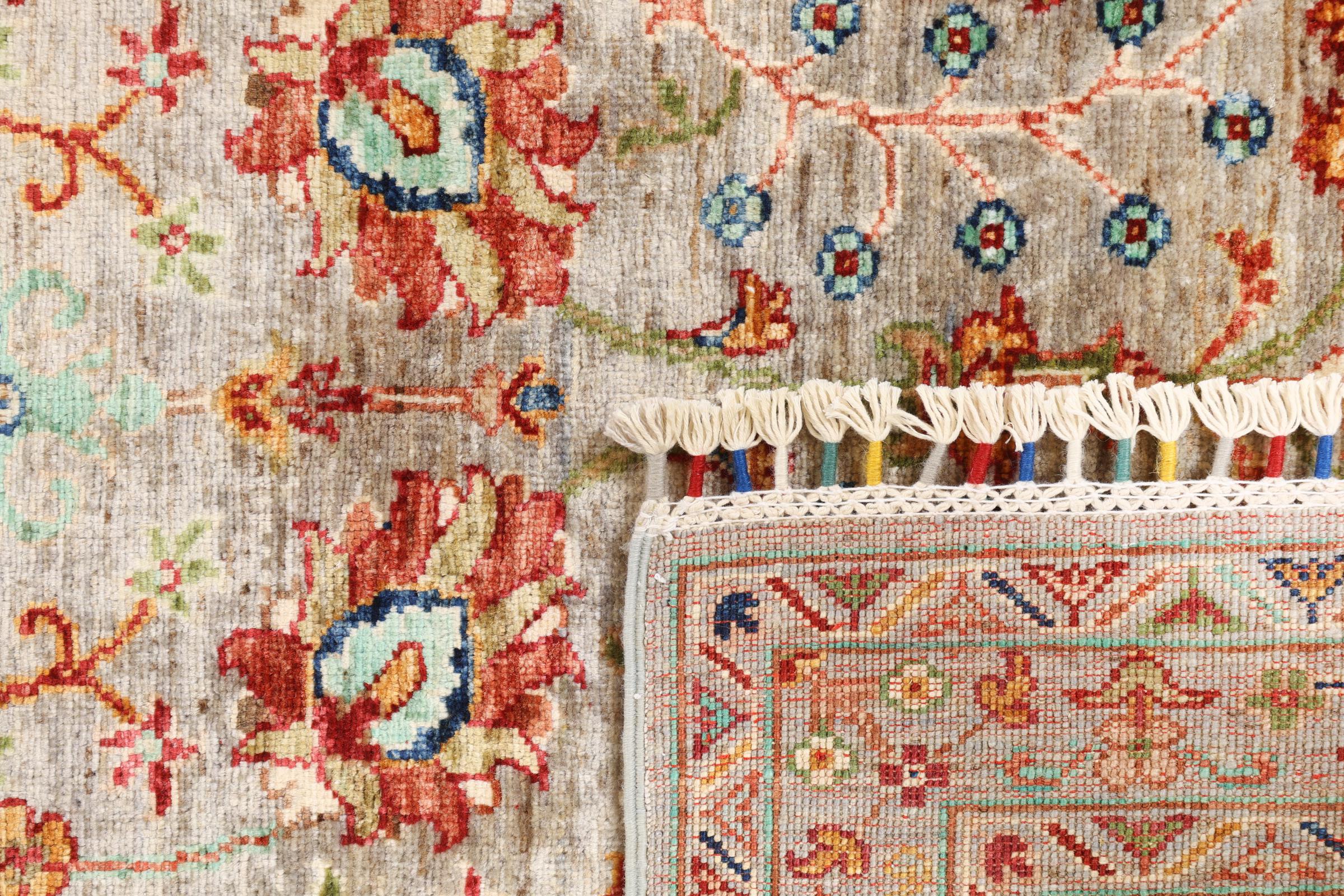 Este tapete é feito de lã de ovelha fiada à mão, da mais alta qualidade. Especialmente no Irão (antiga Pérsia), Afeganistão e Paquistão, a lã ainda é fiada à mão antes do início do nó do tapete. A lã tem provado ser um material natural e extremamente resistente ao longo dos séculos. Entre outras coisas, tem propriedades repelentes de impurezas e isolantes térmicos. Ao mesmo tempo, a lã é incomparavelmente macia e tem um brilho natural.