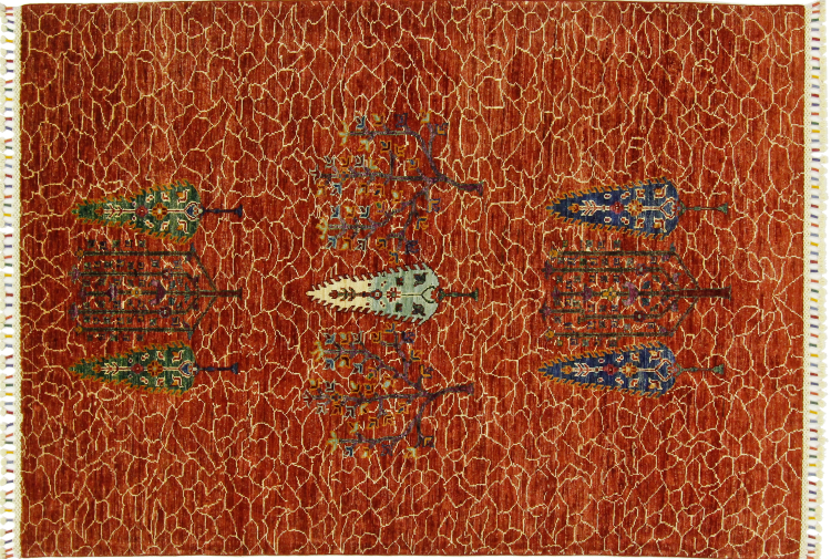 Nº do Tapete: 136339008942456 Tamanho: 180x126 cm Espessura: aproximadamente 5 mm Nós: 160 000 - 200 000 / m² Processamento: Atado à mão Veludo: Lã Natural Urdidura: Algodão Origem: Paquistão Idade: Novo Peso: aproximadamente 8 kg Em armazém: Único