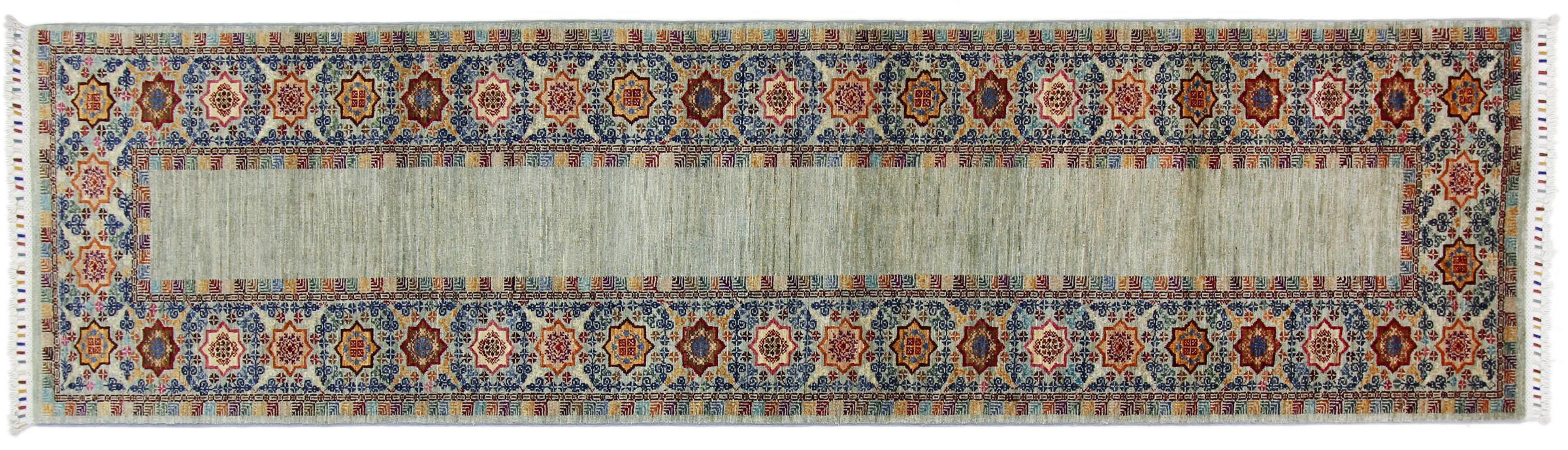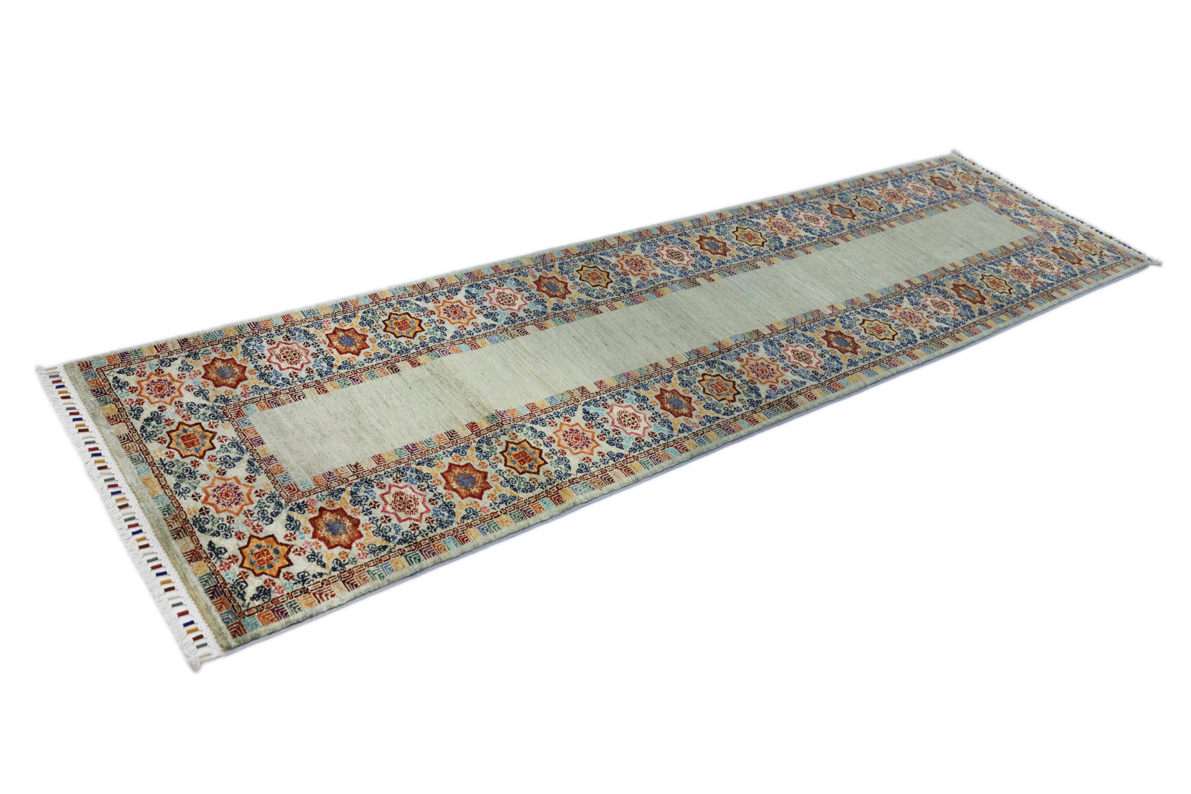 Nº do Tapete: 185372005032992 Tamanho: 285x76 cm Espessura: aproximadamente 5 mm Nós: 160 000 - 200 000 / m² Processamento: Atado à mão Veludo: Lã tecida à mão Urdidura: Algodão Origem: Afeganistão Idade: Novo Peso: aproximadamente 8 kg Em armazém: Único