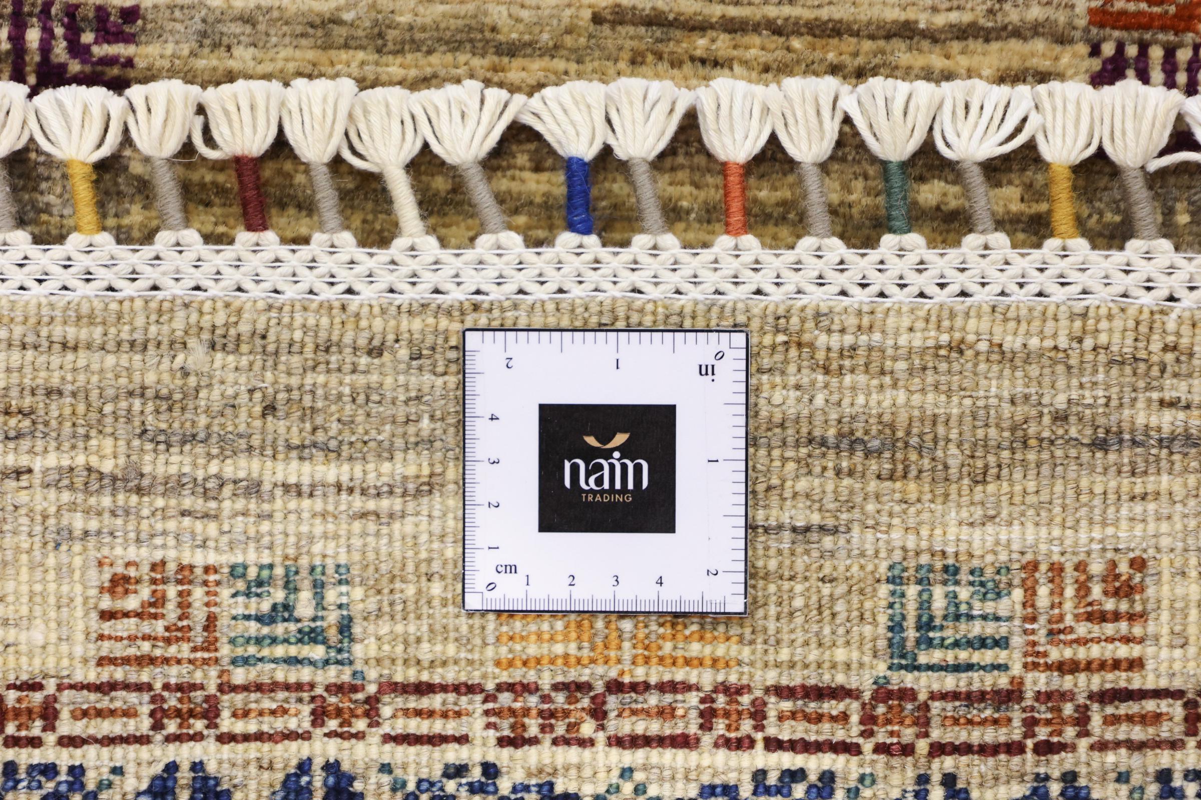 Este tapete é feito de lã de ovelha fiada à mão, da mais alta qualidade. Especialmente no Irão (antiga Pérsia), Afeganistão e Paquistão, a lã ainda é fiada à mão antes do início do nó do tapete. A lã tem provado ser um material natural e extremamente resistente ao longo dos séculos. Entre outras coisas, tem propriedades repelentes de impurezas e isolantes térmicos. Ao mesmo tempo, a lã é incomparavelmente macia e tem um brilho natural.