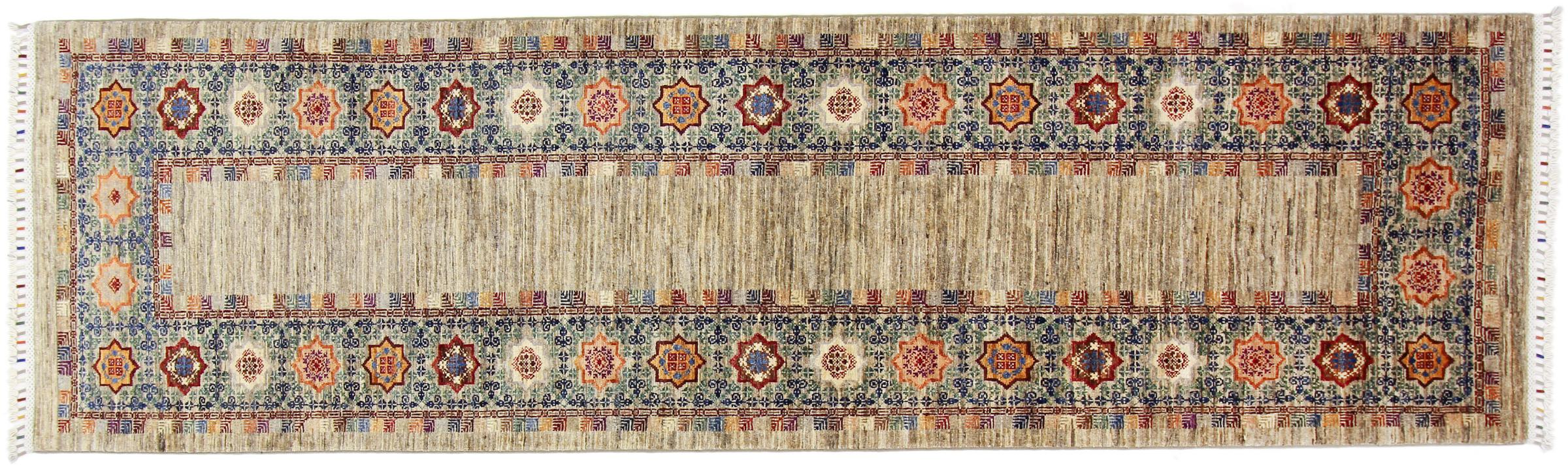 Nº do Tapete: 185368007192983 Tamanho: 291x83 cm Espessura: aproximadamente 5 mm Nós: 160 000 - 200 000 / m² Processamento: Atado à mão Veludo: Lã tecida à mão Urdidura: Algodão Origem: Afeganistão Idade: Novo Peso: aproximadamente 8 kg Em armazém: Único