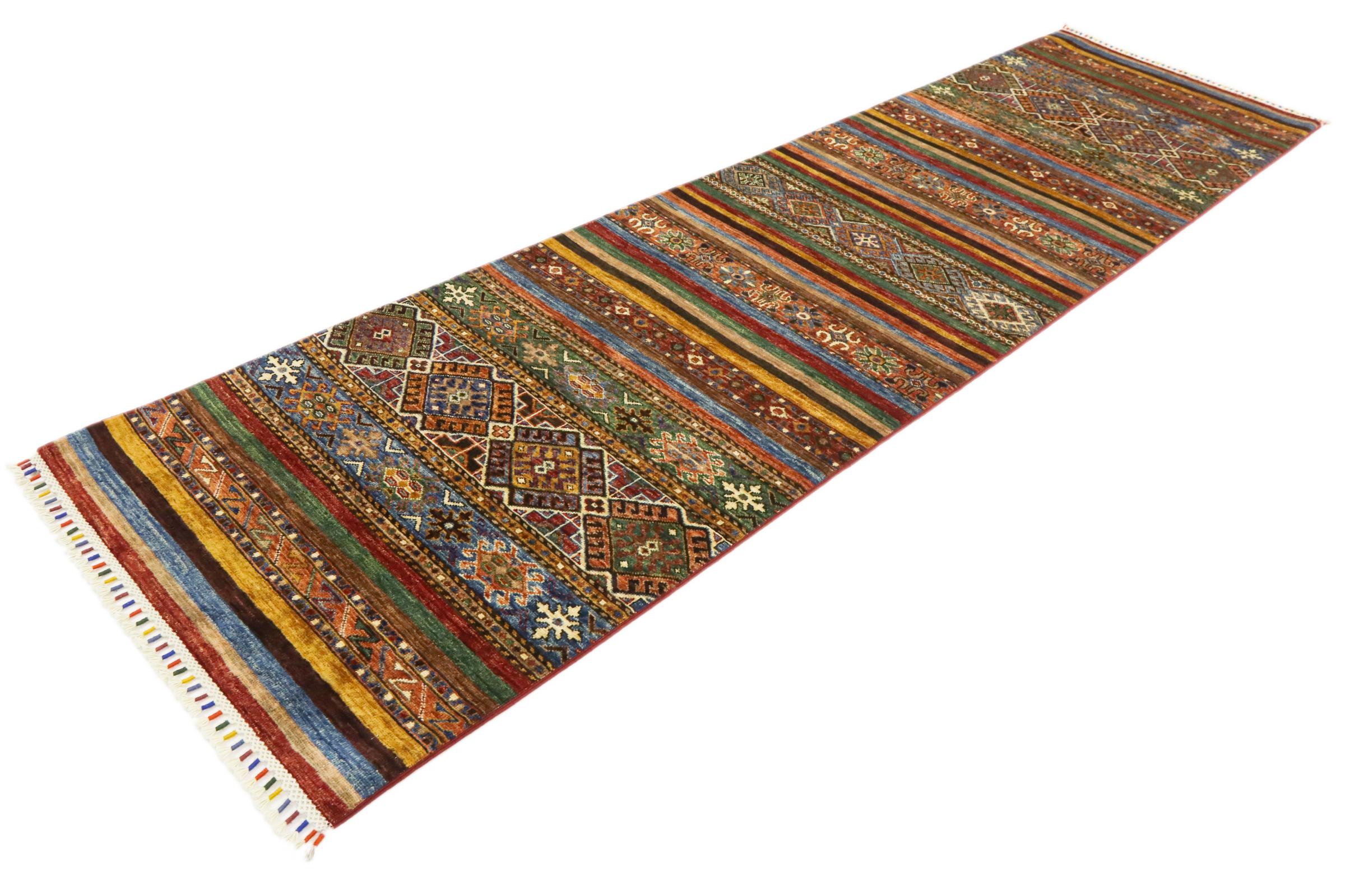 Nº do Tapete: 173223004828666 Tamanho: 305x83 cm Espessura: aproximadamente 5 mm Nós: 128 000 - 160 000 / m² Processamento: Atado à mão Veludo: Lã tecida à mão Urdidura: Algodão Origem: Afeganistão Idade: Novo Peso: aproximadamente 9 kg Em armazém: Único